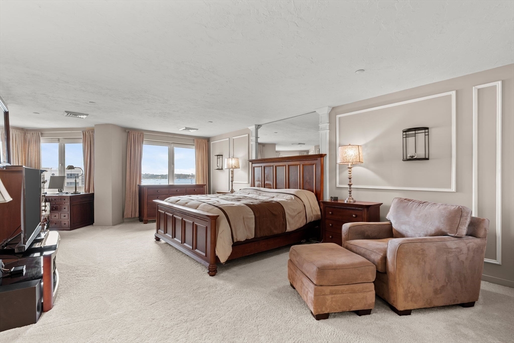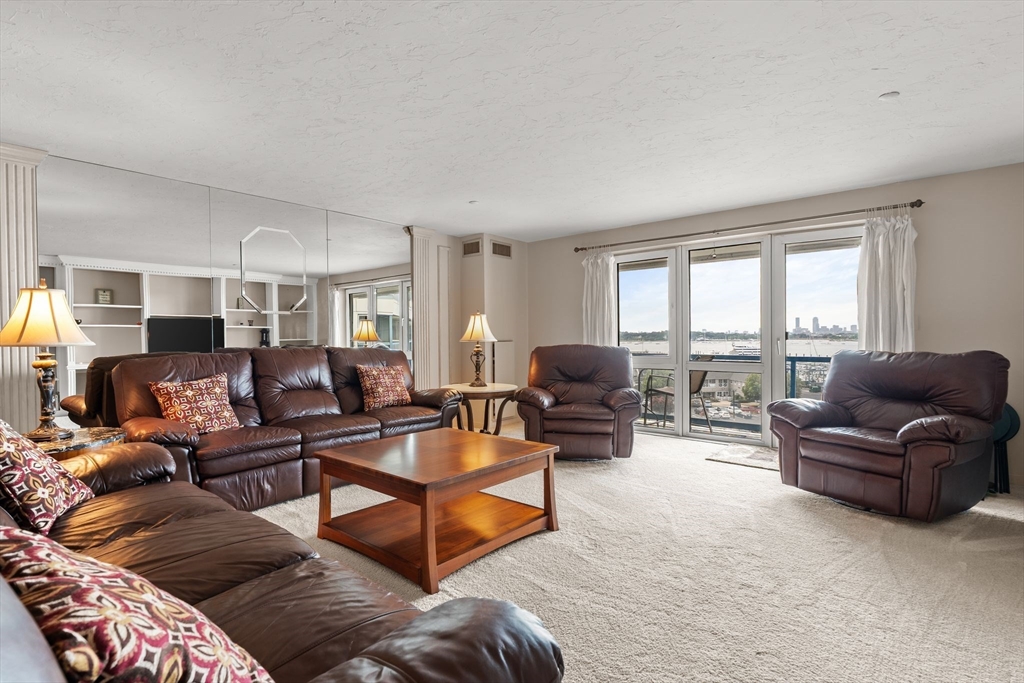 Luxury waterfront living at its finest in Marina Bay! This stunning 2-bed, 2-bath condo offers 1,770 sqft of beautifully designed space with sweeping views of the marina and Boston skyline. Enjoy a beautifully updated kitchen, spa-like primary bath with steam shower, and a private balcony perfect for sunsets over the water. Recently renovated baths, spacious layout, and floor-to-ceiling windows elevate the experience. Amenities include a 24-hour concierge, gym, garage parking, and hospitality suite. Just steps to dining, shops, and the marina boardwalk. Private shuttle to the Red Line and minutes to downtown Boston—experience the perfect blend of coastal charm and city convenience. Schedule a showing today and don't miss out!