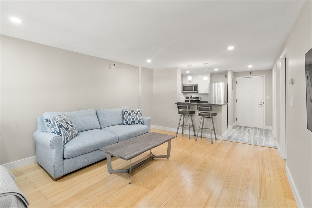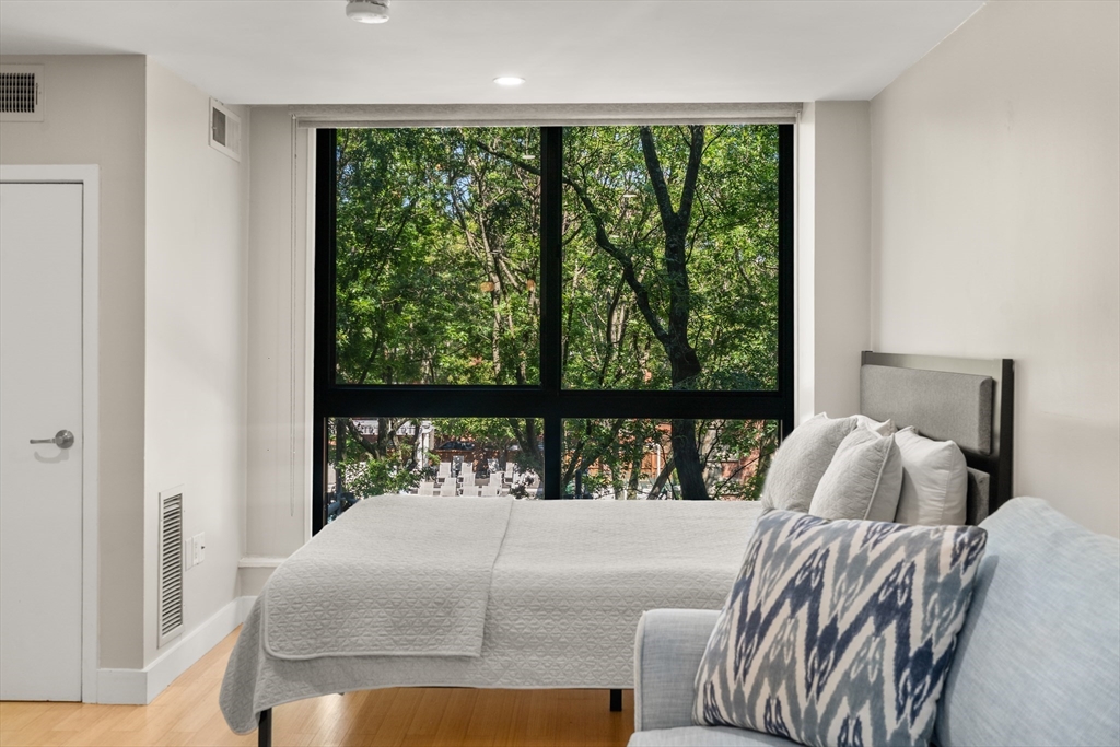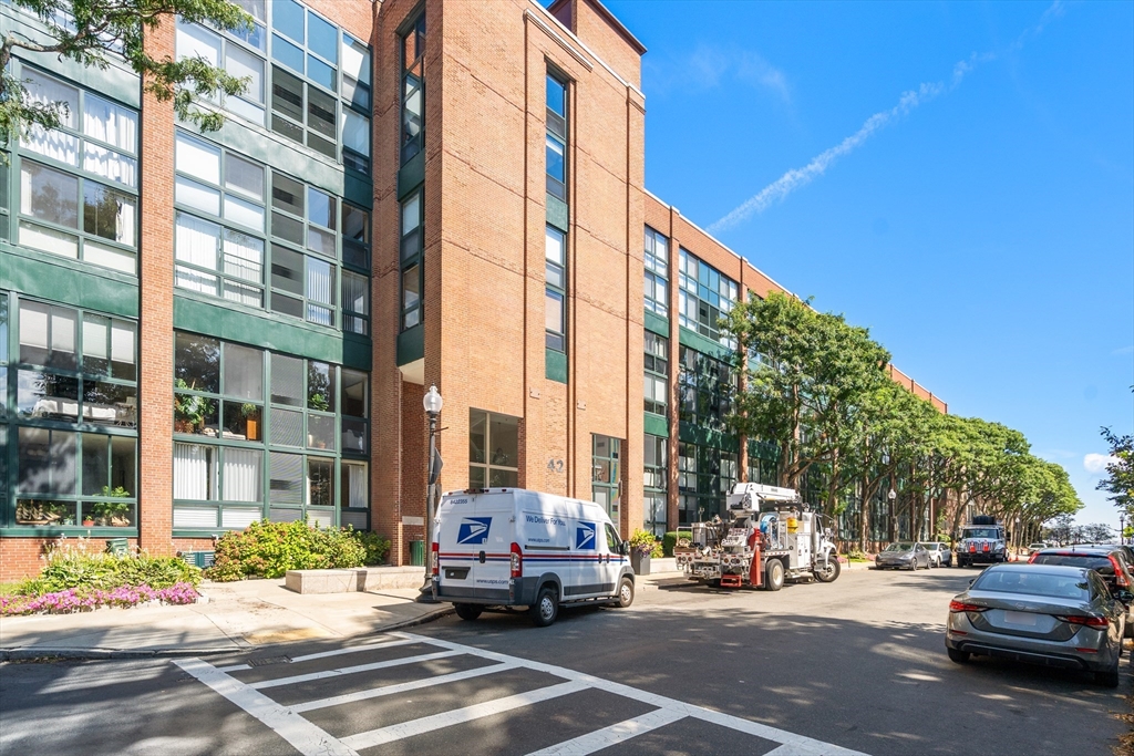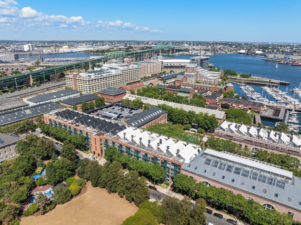 Waterfront living at the Charlestown Navy Yard - This sophisticated studio in historic Parris Landing offers an opportunity for turn-key living with sleek finishes throughout. Newly renovated top to bottom, the kitchen and bath impress with all new cabinetry and finishes, while the main room offers gleaming hardwood floors, a custom-built walk in closet, high ceilings and recessed lighting. Upper level unit placement overlooks tree tops, green space and the private in-ground heated pool, while offering a bright and sun splashed interior. The professionally managed building boasts 24 hour concierge, valet service, high-end fitness center, club room available for gatherings, work or relaxing, exclusive grilling/dining area, and on-site dog park. Quick access to the water shuttle, restaurants, coffee shops, art galleries, hospitals and universities and the iconic Old Ironsides is just steps away. This unit includes an additional on-site storage unit. Freshly painted/move in ready!