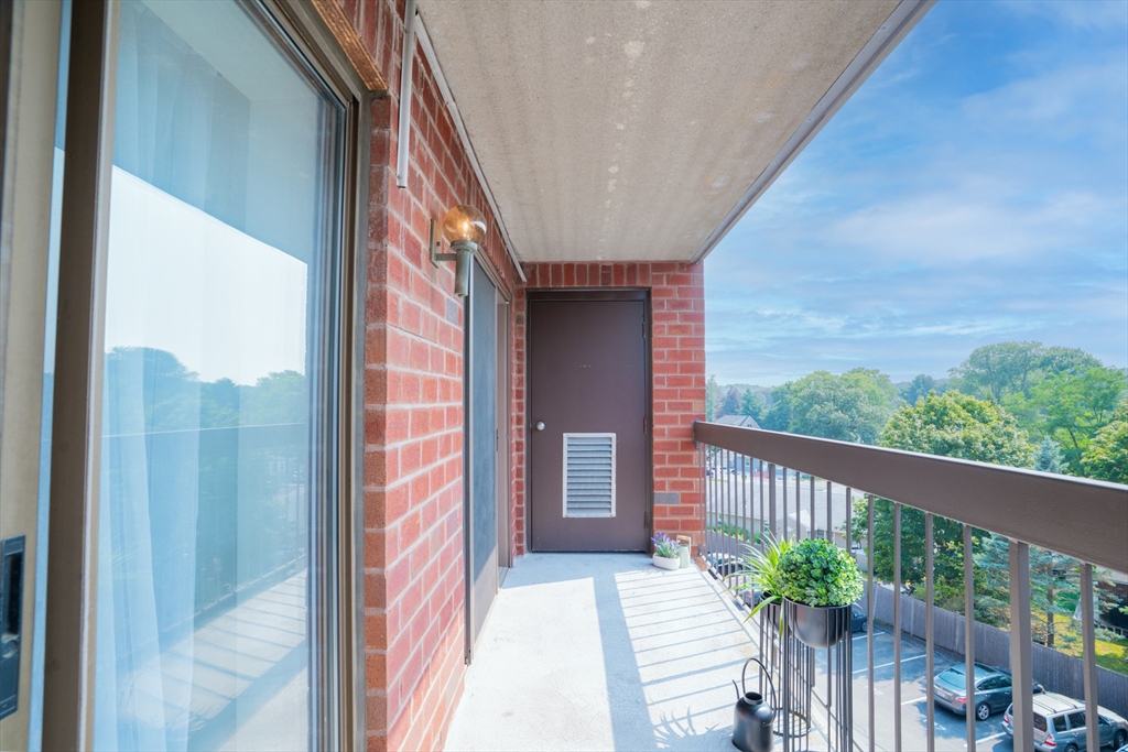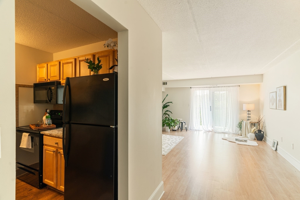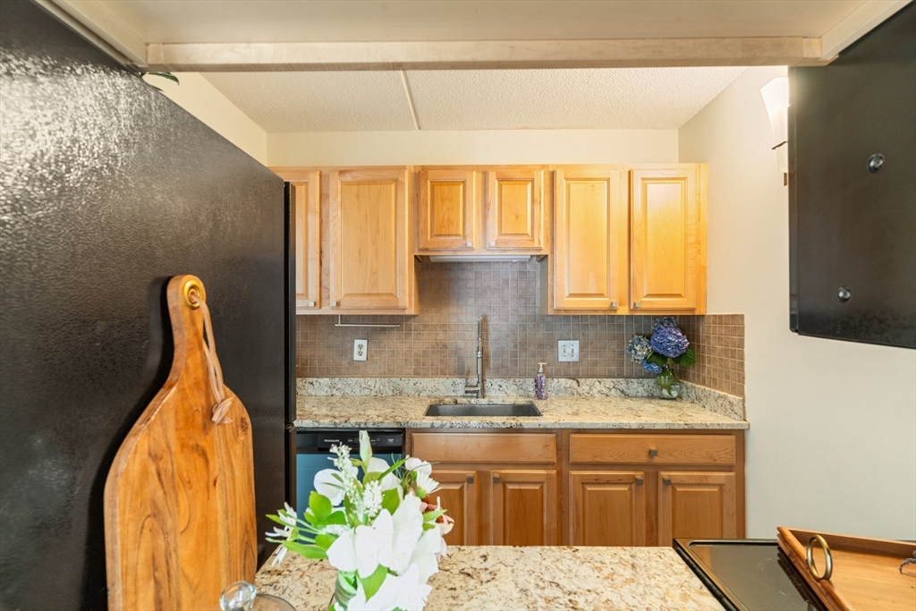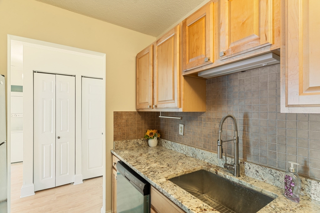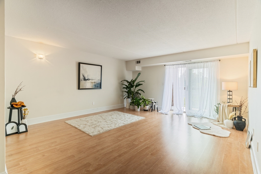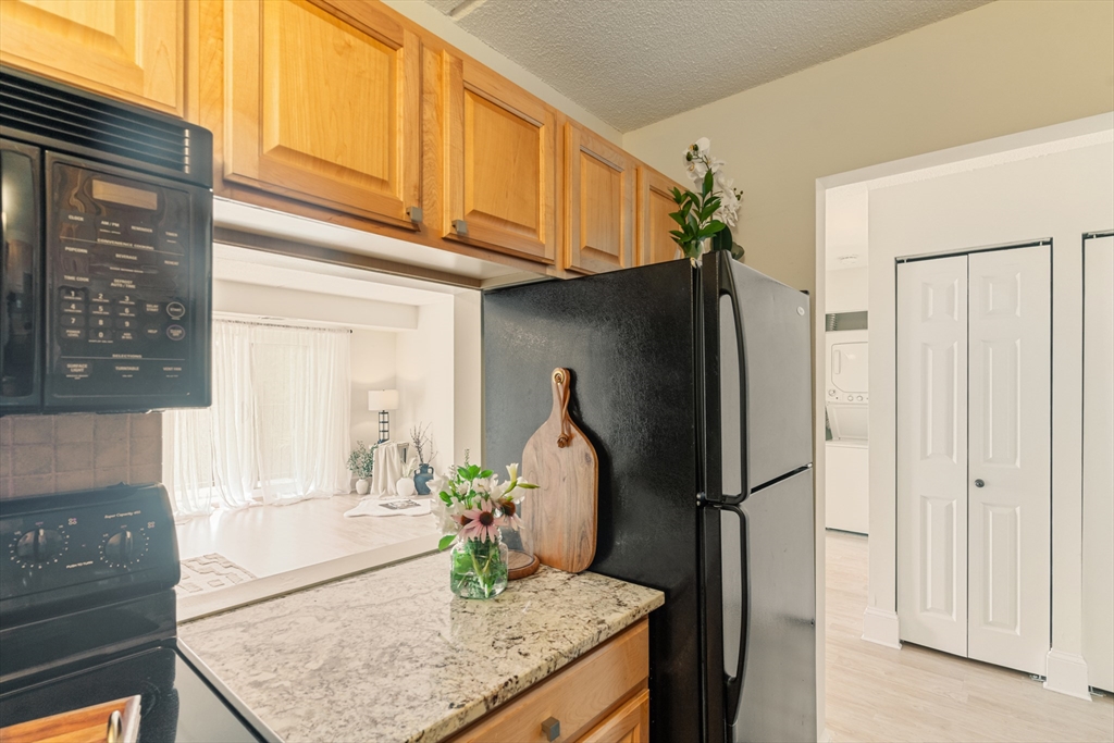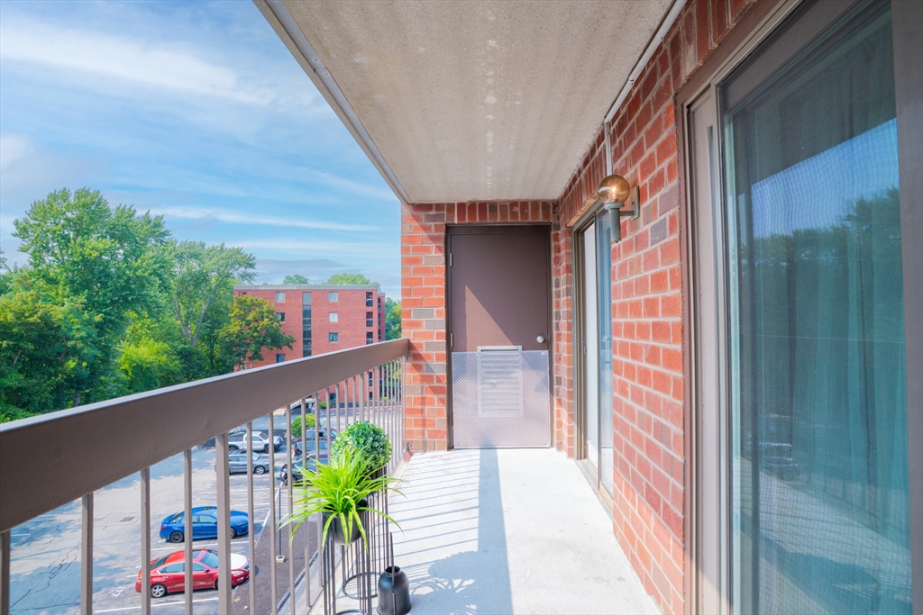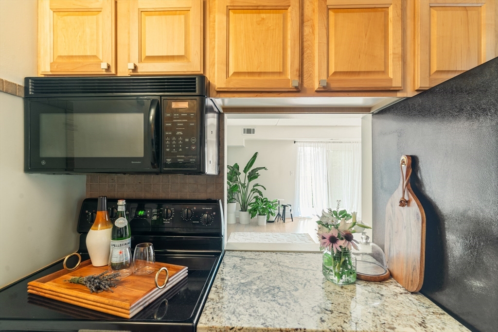 Welcome home to this bright, sun-filled beautifully maintained condo! This unit offers a flexible 4-room layout with one spacious bedroom, 1 full bath, and the ease of in-unit laundry. The kitchen is both charming and functional, featuring beautiful countertops, a thoughtfully designed backsplash, and a cozy breakfast bar. The bedroom offers a very generous walk-in closet and additional sliding doors that open to the large, peaceful balcony. You'll love the natural light, ample storage, and the warm sense of home that fills every corner. All this in a secure, welcoming building, surrounded by a wonderful community you'll be proud to be part of. In building elevator, deeded parking (#190), plenty of visitor parking spaces for your guests, access to an in ground pool, proximity to shops, restaurants and highways- at Monterosa in Stoneham you will find the perfect blend of comfort, style and location! This is more than just a place to live- it's a place to truly belong!