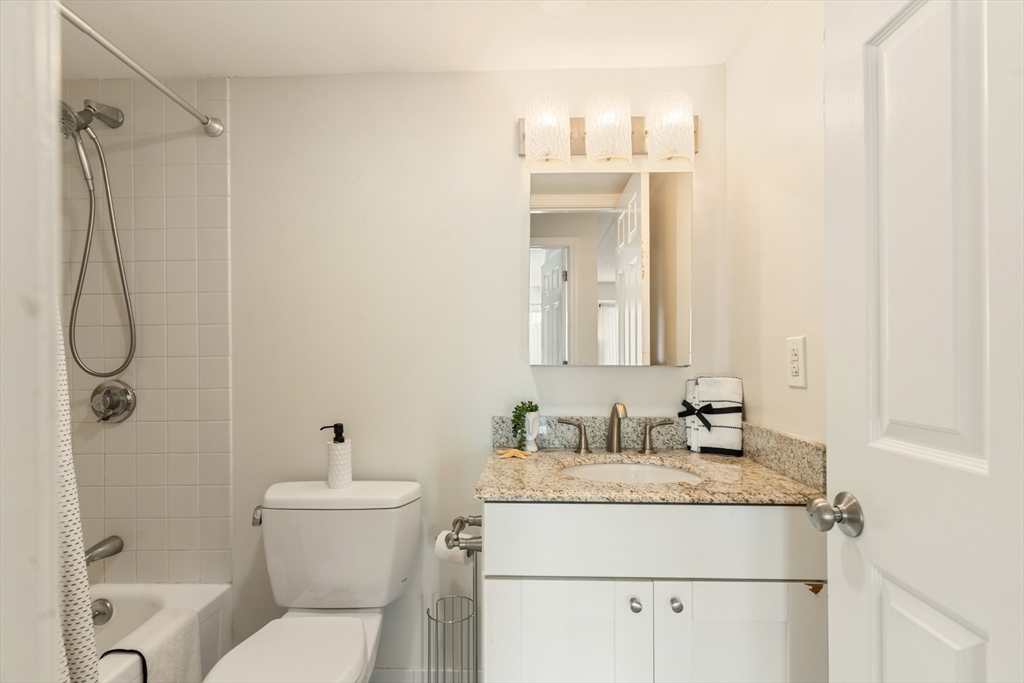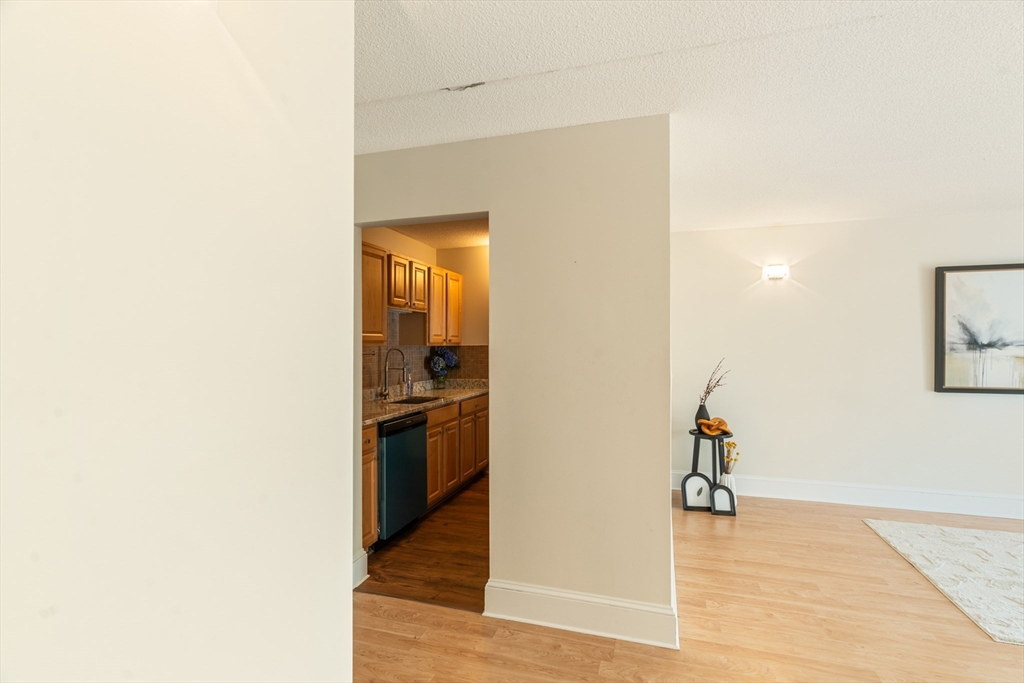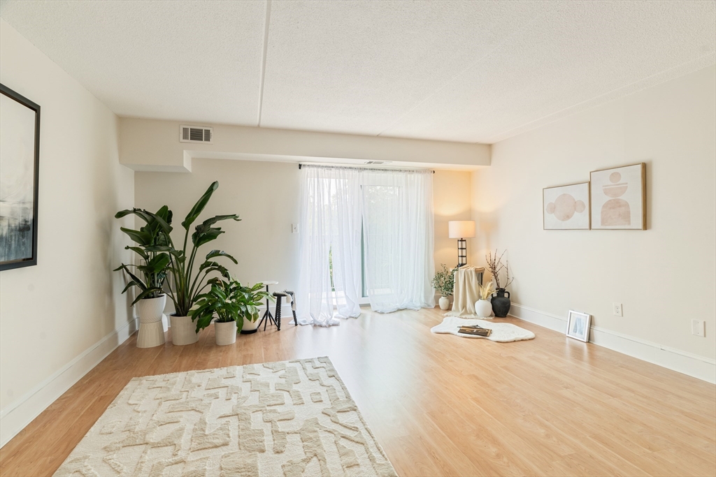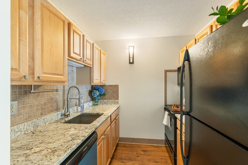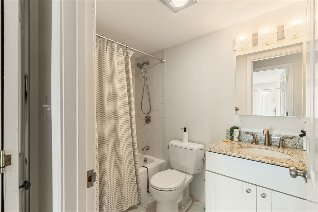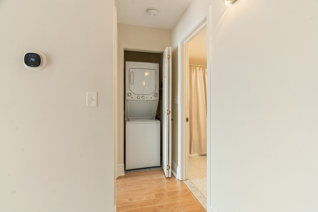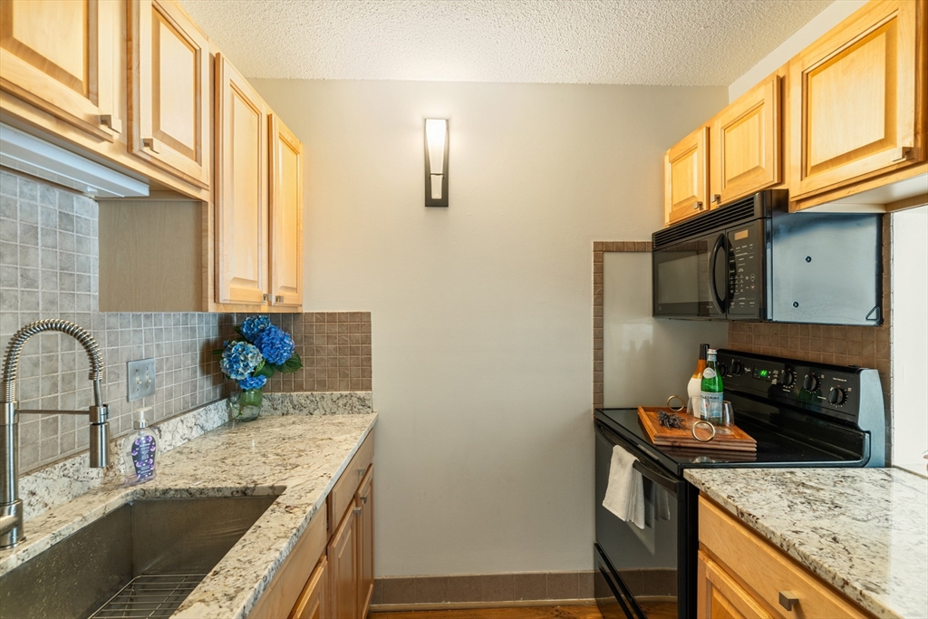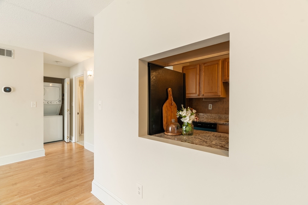 Welcome home to this bright, sun-filled beautifully maintained condo! This unit offers a flexible 4-room layout with one spacious bedroom, 1 full bath, and the ease of in-unit laundry. The kitchen is both charming and functional, featuring beautiful countertops, a thoughtfully designed backsplash, and a cozy breakfast bar. The bedroom offers a very generous walk-in closet and additional sliding doors that open to the large, peaceful balcony. You'll love the natural light, ample storage, and the warm sense of home that fills every corner. All this in a secure, welcoming building, surrounded by a wonderful community you'll be proud to be part of. In building elevator, deeded parking (#190), plenty of visitor parking spaces for your guests, access to an in ground pool, proximity to shops, restaurants and highways- at Monterosa in Stoneham you will find the perfect blend of comfort, style and location! This is more than just a place to live- it's a place to truly belong!