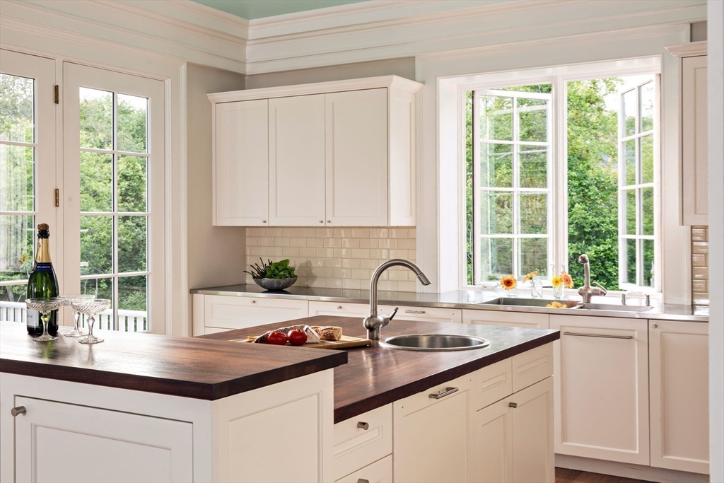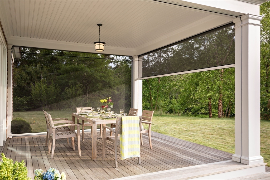 Designed by renowned architect Ivan Bereznicki for personal use, this elegant gambrel residence is just steps from vibrant Osterville Village. Positioned to capture natural light and meadow views, the home plays on architectural scale and heritage with high ceilings, oversized classical columns, and floor-to-ceiling windows. The main level features a sleek chef’s kitchen with Miele and Viking appliances, a generous adjoining dining area and living room, and a cozy inset inglenook with a handcrafted stone fireplace. All main rooms open to outdoor living areas, including a grilling terrace and generous porch with retractable screens for al fresco entertaining and relaxing. Complete with a detached studio and barn/garage, this rare opportunity in the heart of the village is ready to be enjoyed.