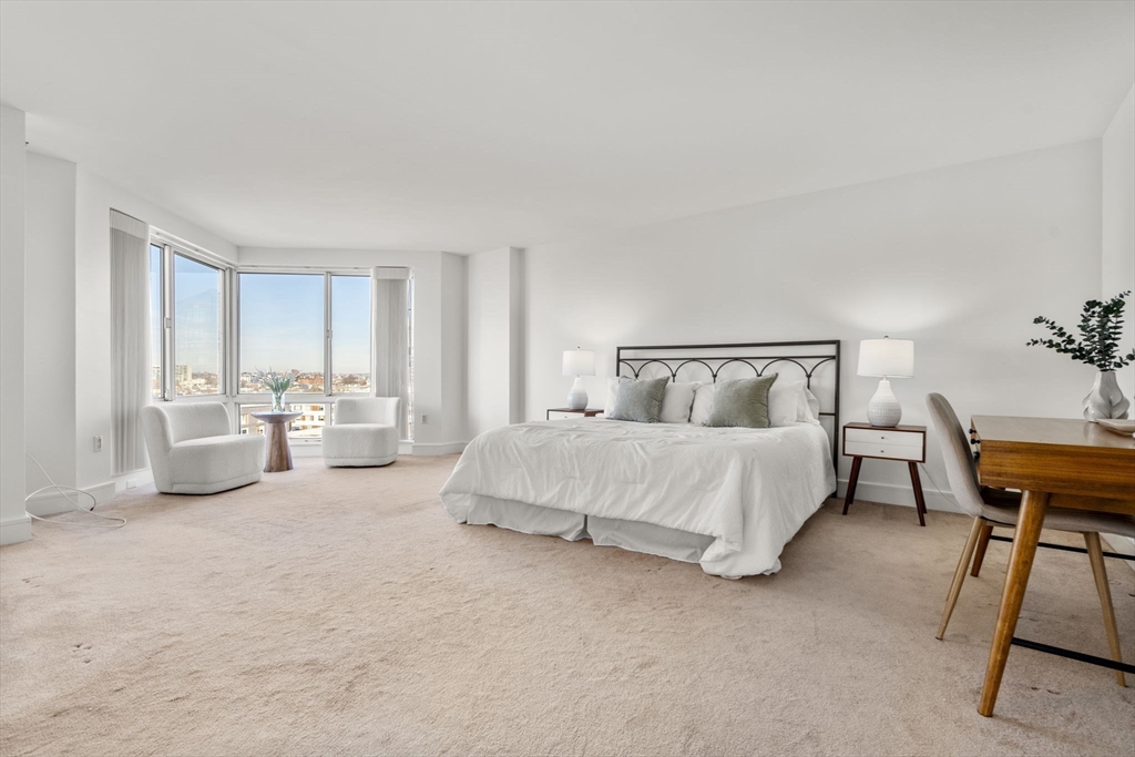 THE ESPLANADE! LARGE SUNFILLED, 2 BED 2 1/2 BATHS WITH VIEWS OF THE CHARLES RIVER AND BOSTON SKYLINE. LARGE BEDROOMS EACH WITH ENSUITE FULL BATHROOMS. THE SUNFILLED RENOVATED EAT IN KITCHEN IS ANY COOKS DREAM WTIH AN ABUNDANCE OF SPACE FOR STORAGE AND PLENTY OF ROOM FOR A KITCHEN TABLE. LAUNDRY IS IN THE UNIT. THE ESPLANADE IS A FULL SERVICE BUILDING WITH 24 HOUR CONCIERGE, ALSO OFFERING A FITNESS ROOM, AN INDOOR POOL AND SAUNA. A FUNCTION/CONFERENCE ROOM IS AVAILABLE TO RESIDENTS FOR MEETINGS AND GATHERINGS. EV CHARGERS ARE AVAILABLE TO RESDENTS. CLOSE TO UNIVERSITIES, SHOPPING, RESTARUANTS AND HOSPITALS. THIS UNIT IS TRULY A GEM AND AVAILABLE FOR IMMEDIATE MOVE IN.