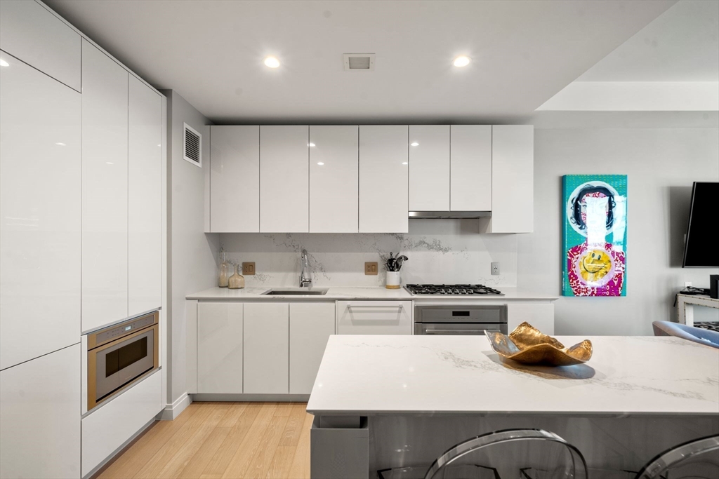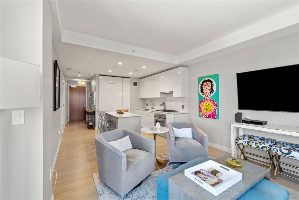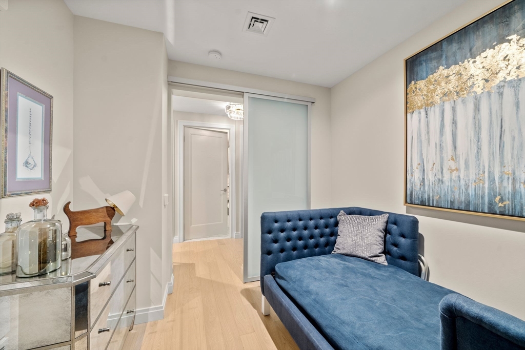 Rarely available and uniquely appointed 1BD + STUDY at EchelonSeaport — the only 1+ floor plan that offers private outdoor space with direct harbor views overlooking Seaport Boulevard. This turnkey residence stands out with seller-upgraded features, including motorized window treatments, a custom-built entry coat closet, and a luxuriously outfitted walk-in primary closet for elevated everyday living. The spacious study offers the flexibility of a dedicated home office or guest suite, making it a smart and stylish two-bedroom alternative at this price point. Refined interiors include custom Italian cabinetry, quartz countertops, white oak hardwood floors, and integrated Thermador appliances. Residents enjoy 50,000+ sq. ft. of lifestyle amenities: two outdoor pools, hot tub, fitness center, indoor sports court, yoga studio, golf simulator, Sky Lounge with panoramic views, and outdoor fire pits. Valet garage parking included.