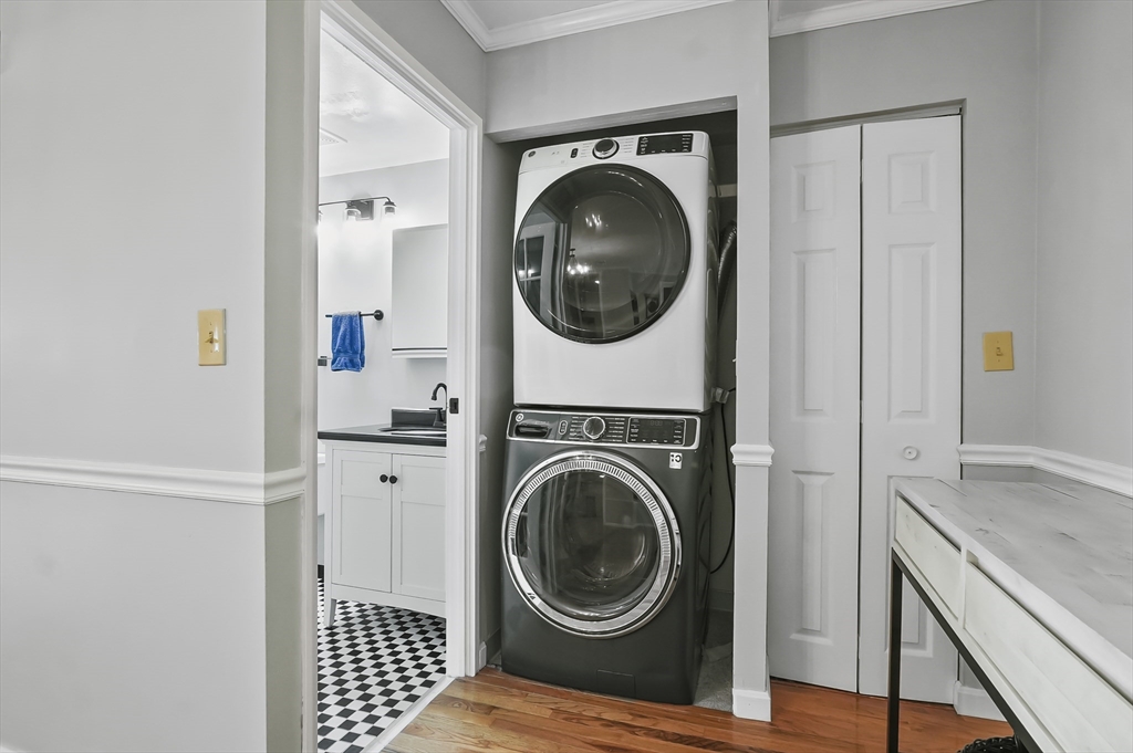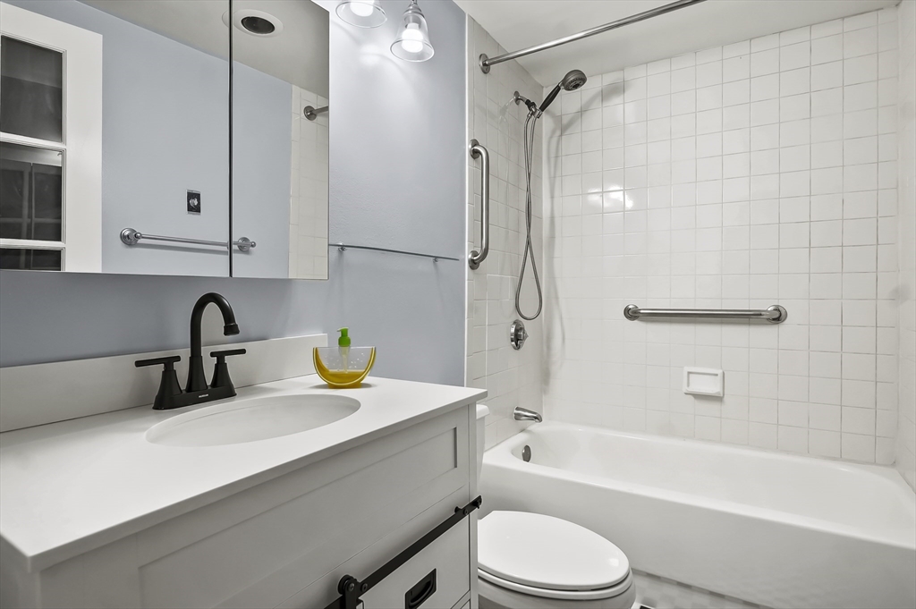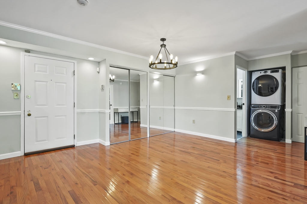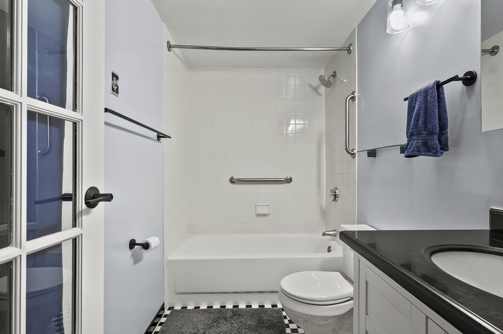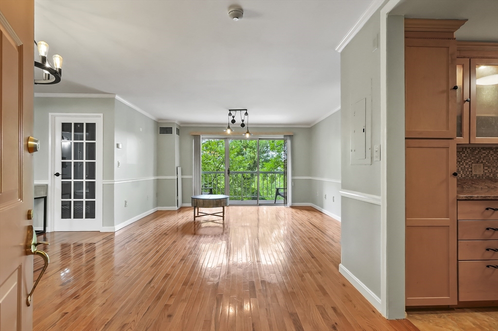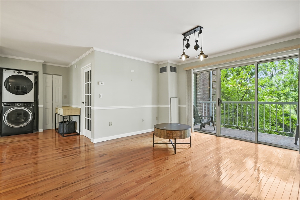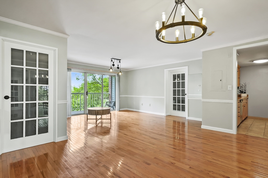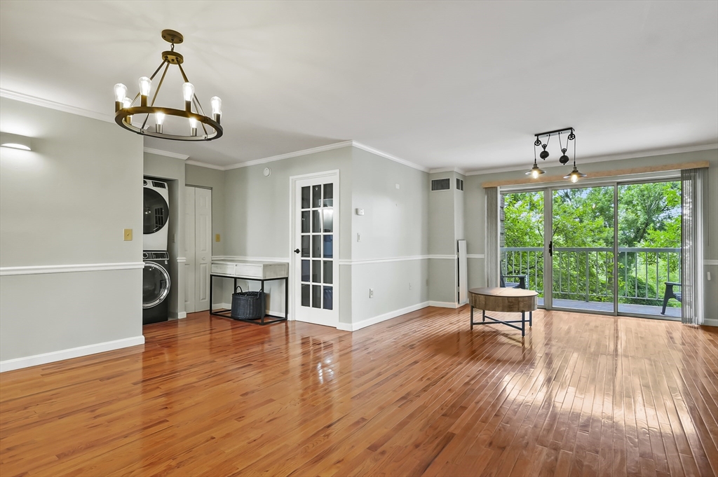 Tucked inside the sought-after Captain’s Landing, this beautifully maintained condo offers bright, open-concept living with hardwood floors and a seamless flow from the living and dining areas to a private balcony—perfect for relaxing or entertaining. The kitchen features sleek granite countertops, tile flooring, and stainless steel appliances. Both bedrooms are generously sized with plush carpeting and ample closet space, while the main bedroom includes a private full bath and direct exterior access. Two full tiled bathrooms, in-unit laundry, central air, and two deeded parking spaces complete the package. Spacious storage room in the lower level. Conveniently located near parks, major highways, and public transportation. Welcome home!