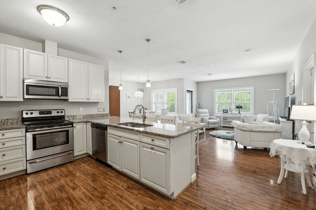Beautiful 2 Bed 2 Bath unit at Rose Court in Danvers! Beautiful floors, soaring ceilings, and an expansive open layout. The spacious granite kitchen with stainless steel appliances and pristine cabinetry flows seamlessly into the sun-filled living and dining areas. Two spacious bedrooms each feature walk-in closets, including a luxurious primary suite with private full bath. A second full bath, in-unit laundry, and a covered balcony overlooking conservation land complete the interior. This home also includes the first covered parking spot closest to the elevator plus a second deeded space. Rose Court amenities include an intercom with live camera feed, fitness room, clubhouse, garden area, gazebo, playground, and pet-friendly living (with restrictions). All this, just minutes to shopping, dining, and major highways for an effortless commute! Showings begin at first Open House Friday 9/5. See offer instructions. Showings during open houses only. Don't- miss this will NOT last.