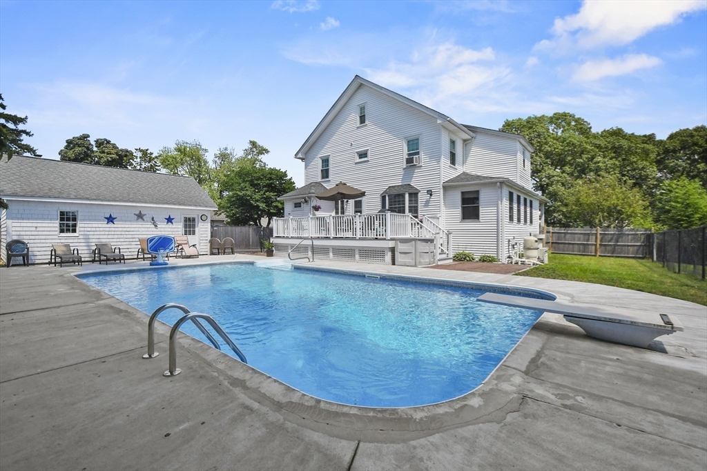 Discover your dream home with this exquisite colonial located in the heart of Weymouth. Boasting 4 spacious bedrooms and 3 full bathrooms, this property combines elegance with modern comforts. Enjoy the beautifully maintained inground pool, perfect for summer relaxation and entertaining. The home includes a convenient 1 car garage, oversized four season heated sunroom and a charming wood-beamed dining room that adds a touch of rustic warmth. Cozy up by the fireplace in the living room during the colder months. The finished basement and attic space provide versatile extra living space, ideal for a home office, gym, or playroom. This stunning home is nestled in a desirable Weymouth neighborhood, offering the perfect blend of style and comfort. Don't miss out on the opportunity to make this incredible property your own! Laundry in basement. Updates- Windows ,Roof over sunroom & new tankless water heater. First Showings to be held Friday at Open House.