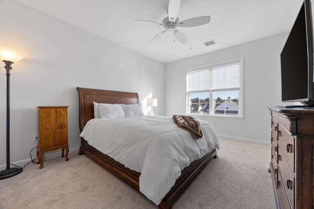 Experience the ease and elegance of single-level living in this bright, desirable Chatham II Model unit at Sawyers Reach, a vibrant 55+ community.The open-concept living area offers a seamless flow, featuring a dedicated dining space that transitions effortlessly into the main living room with sliders leading out to your private balcony. The kitchen is a chef's delight with plenty of cabinets and ample space for entertaining.This unit combines luxury and convenience, highlighted by a separate laundry room and a deeded one-car garage for secure parking and additional storage.Luxurious upgrades include Quartz Cashmere Carrara, 5" hardwood Natural Hickory and upgraded bathrooms.Residents benefit from exceptional amenities, including a heated saltwater pool, a clubhouse, Rooftop Terrace, and a dedicated workout room. Only minutes from convenient local shopping, dining, medical facilities, and Historic Downtown Plymouth.
