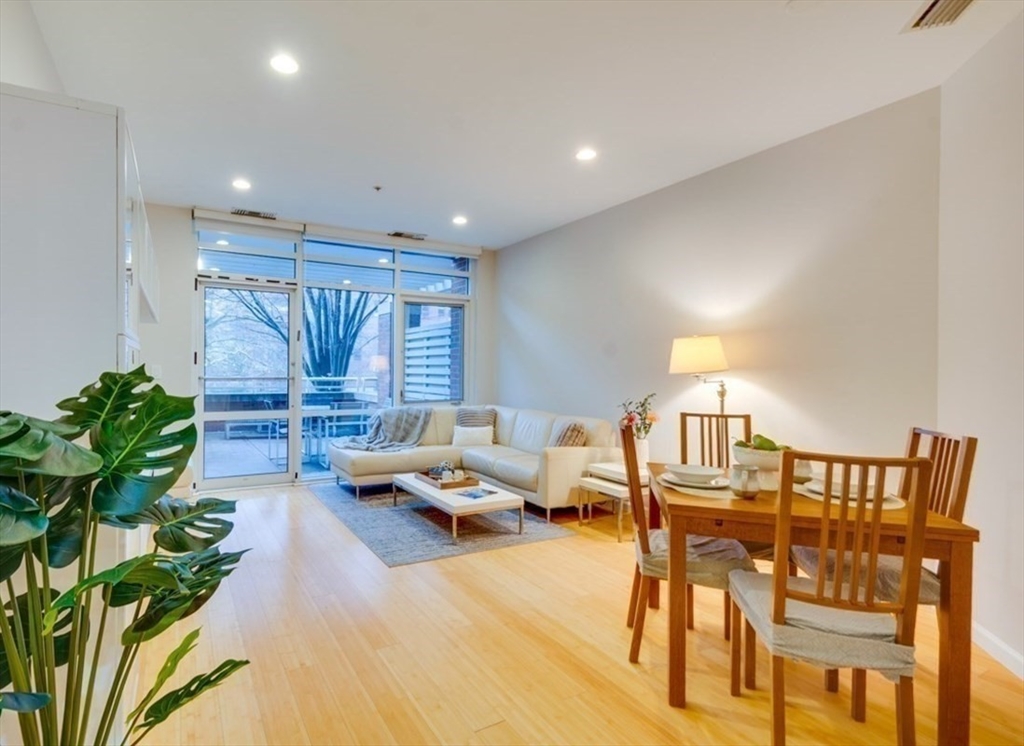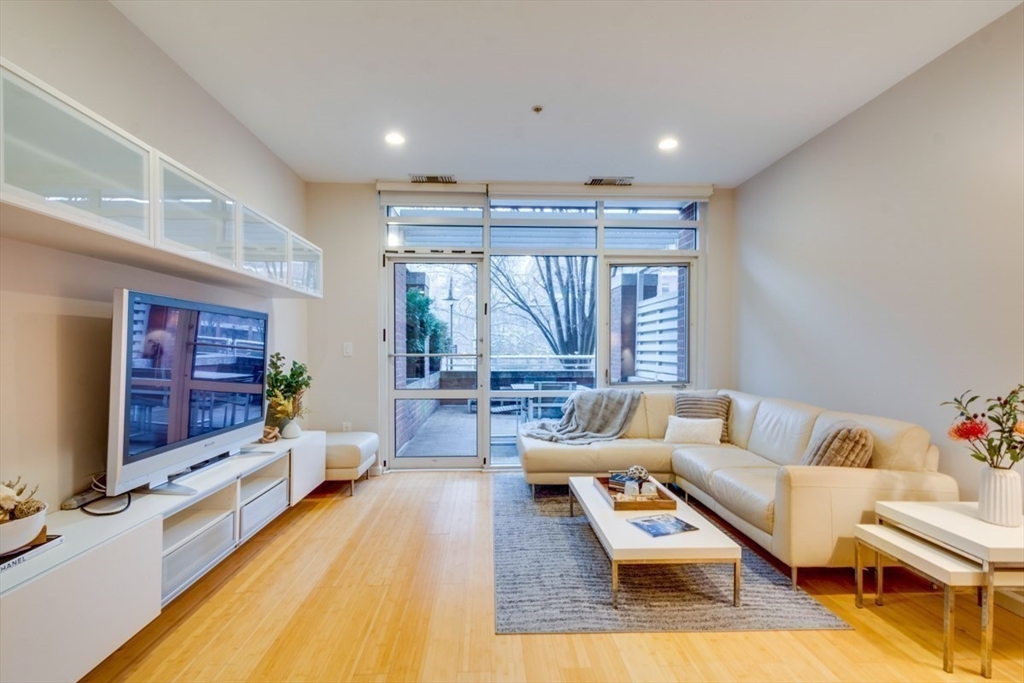 Welcome to a rare offering at Thomas Graves Landing—a beautifully renovated, southwest-facing condominium that effortlessly blends sophistication, comfort, and urban convenience. This exceptional canal-facing patio unit is a true sanctuary in the city, nestled beside the Charles River Canal and steps from the CambridgeSide Galleria. Sun-drenched interior with warm bamboo flooring throughout. Stainless steel applianced kitchen, in-unit laundry room, and a 200+ sq ft private patio overlooking the canal. The unit also comes with deeded garage parking and additional storage. This a luxury full-service building with 24/7 concierge service, on-site professional management and amenities including a fitness center, pool, sauna/steam, and function room. Easy access to Green Line MBTA Lechmere stop, MGH, shopping Mall, Cambridge Crossing, and restaurants. Condo fees include one garage parking space, hot water and gas for cooking. Non-smoking building.