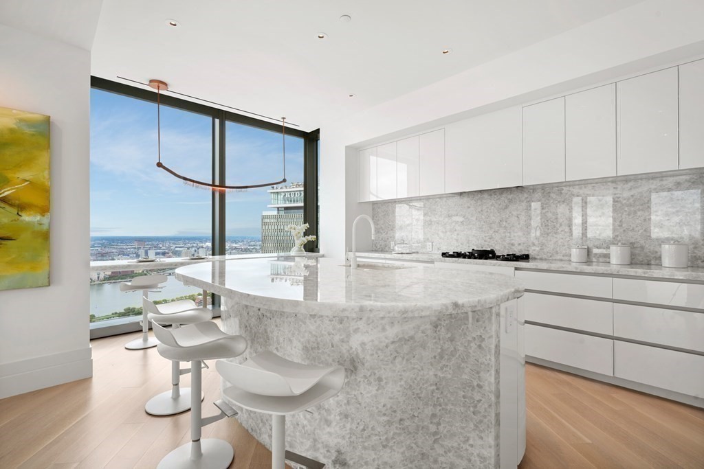 Boston's most luxurious penthouse offering is a seamless combination of 2 of 1 Dalton's premiere units wrapping 2 corners of the building on the 58th floor with expansive views from every room. An exquisite full renovation was completed by the Lagasse Group in 2022 and is ready for immediate occupancy. A total renovation of the space includes a spectacular white Onyx primary kitchen with top-of-the-line appliances, breakfast bar with captivating views and easy access to the homes informal dining & family room. A jaw dropping formal living room offers an Art Deco inspired wall of glass that opens to a formal dining room, temperature controlled wine room, and access to a fully equipped catering kitchen. Solid white oak flooring throughout, stately moldings, custom millwork throughout, 6 full marble clad baths with radiant heat, fully integrated A/V system with surround sound, comprehensive Lutron lighting system, automatic shades and blackouts and 24 Hour Four Seasons Hotel Services!