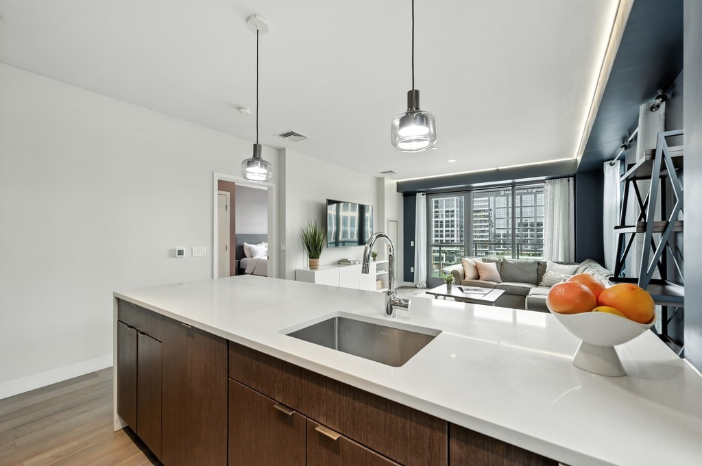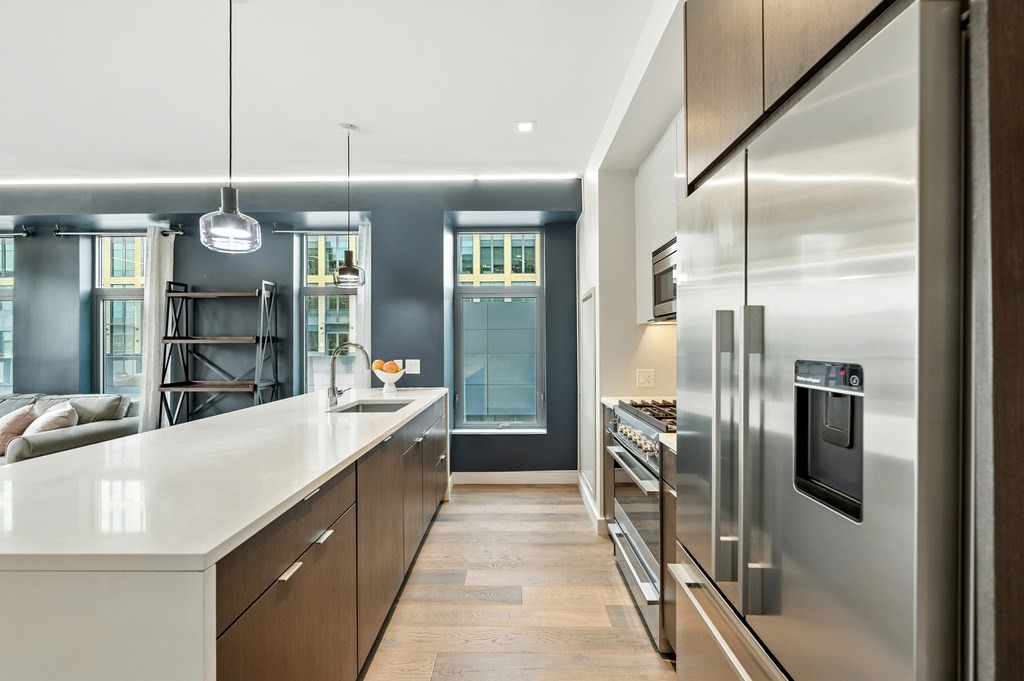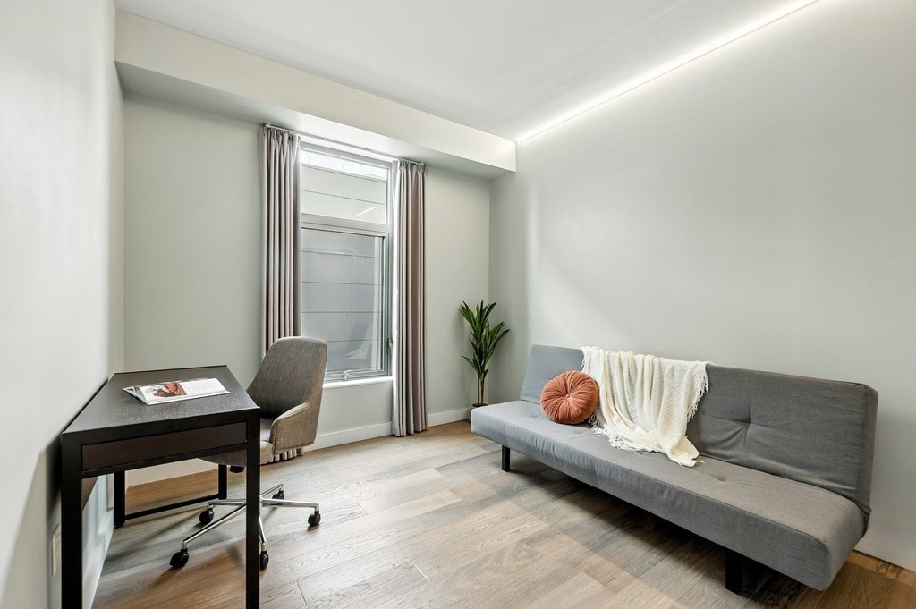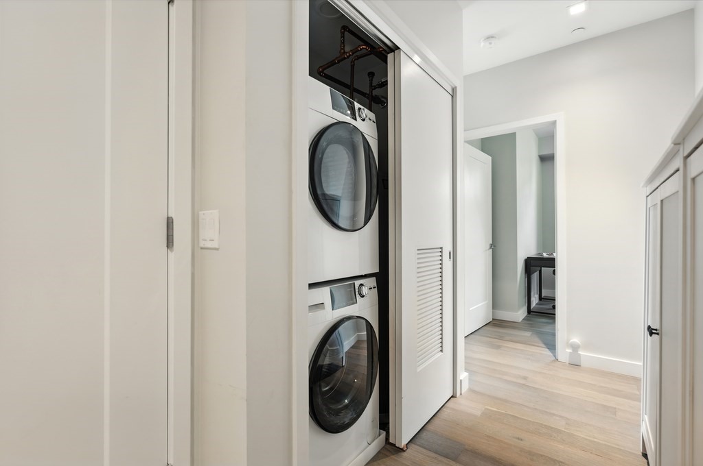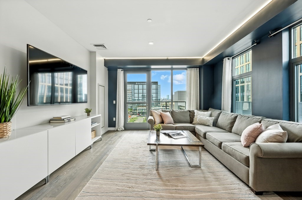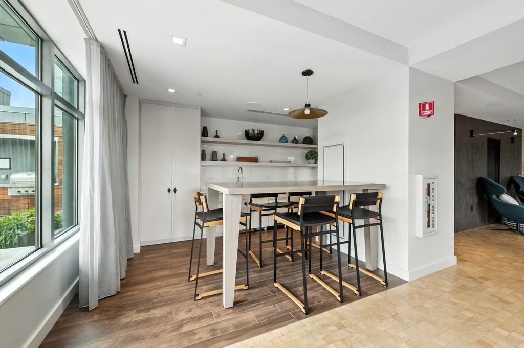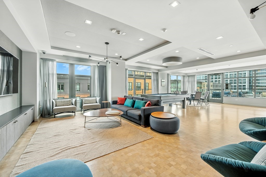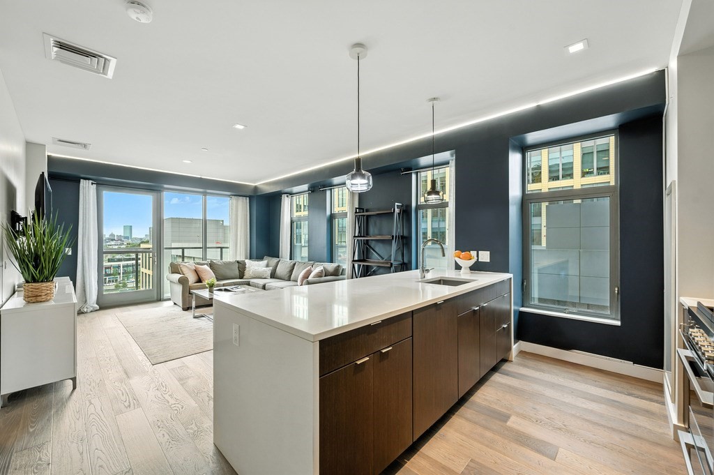 Welcome to Alloy Condominiums, a 2018 concierge elevator building in vibrant Assembly Row. This stunning 2-bed, 2-bath corner unit offers a southwest exposure with floor-to-ceiling windows and a private balcony showcasing sweeping city views, including the Hancock Tower. The modern kitchen features stainless steel appliances and a peninsula perfect for dining or entertaining. The spacious primary suite includes a walk-in closet and sleek en-suite bath with a walk-in shower. A second full bath and versatile guest bedroom/home office complete the layout. Hardwood floors and in-unit laundry provide everyday convenience. Enjoy luxury living with amenities like a concierge, clubroom with direct access to roof deck with lounge chairs. Also enjoy a state-of-the-art gym and indoor pool — shared with the Row Hotel. One deeded garage parking near the elevator. Close to shopping, cafes & restaurants, Trader Joe’s, and the Orange Line T—only 3 stops to Boston. Move right in!