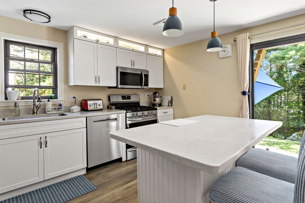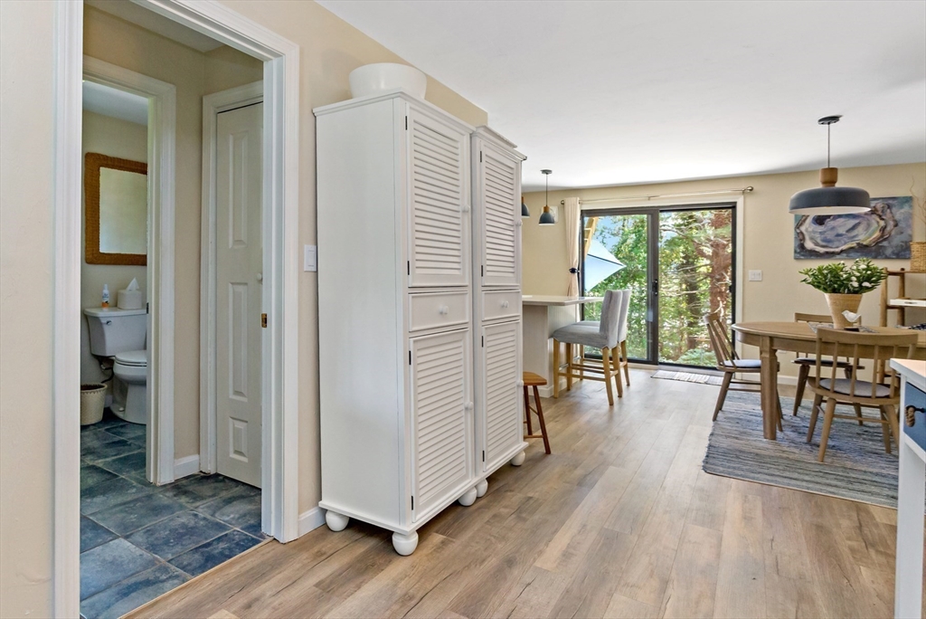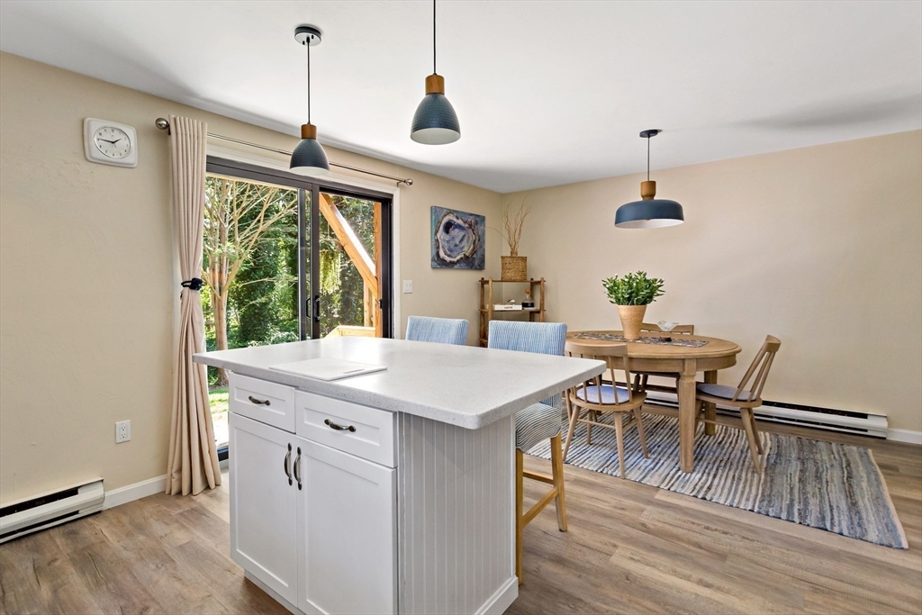 Move right in to this truly stunning end unit nestled on a peaceful cul-de-sac located in the desirable community of Sea Oaks. With meticulous renovations and designer finishes throughout, this pristine condo combines luxury, comfort & elegance. Natural light flows throughout the warm and inviting living area complete with a jotul stove perfect for providing ambiance and cozy evenings. The designer kitchen offers an island with seating and added storage, custom lighted cabinetry, and new SS appliances. The adjacent dining area overlooks the quiet, peaceful outdoor oasis surrounded by the beauty of nature. Enjoy the roomy patio w/ newly installed steps and a beautiful landscape. An updated half bath and pantry closet round off the main level. On the upper level, a generous primary suite includes a brand new bathroom offering a custom walk-in shower.. A comfortable & spacious guest suite is located down the hall w/ a newly renovated bathroom. The lower level is finished w/ new flooring.