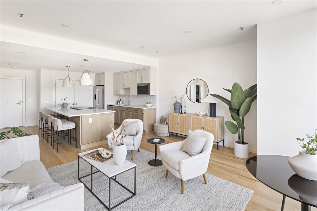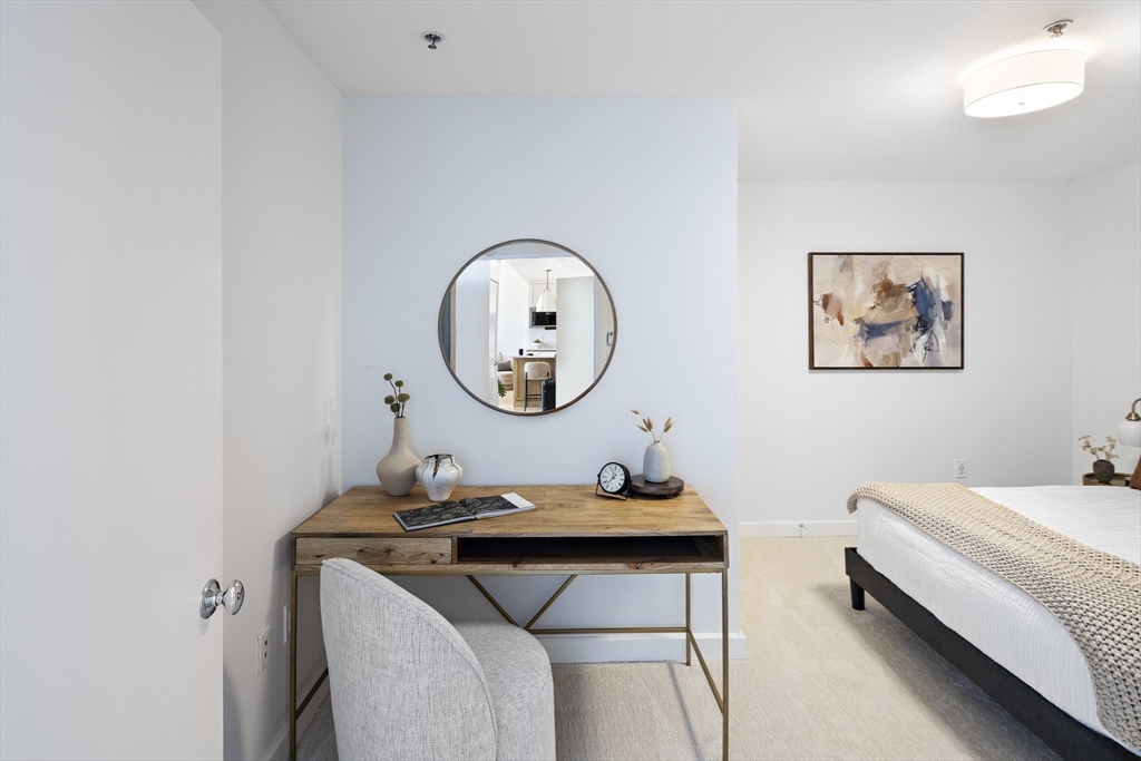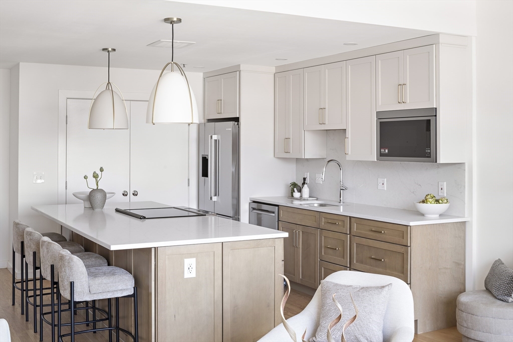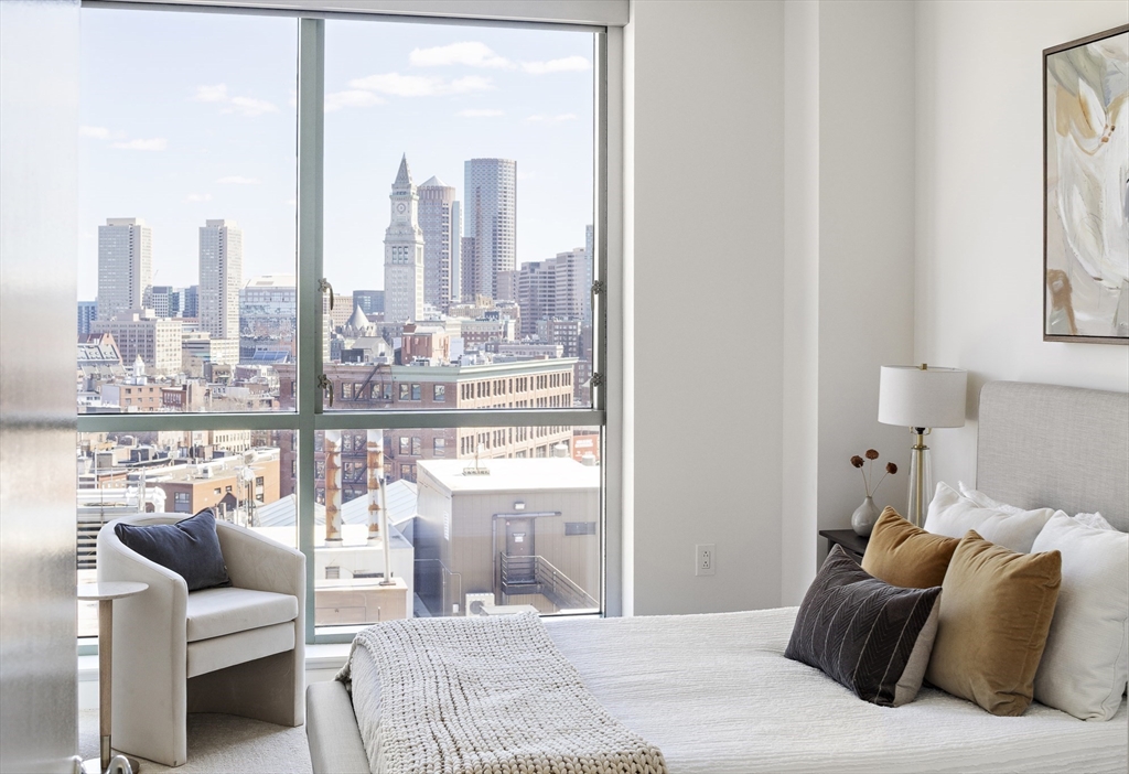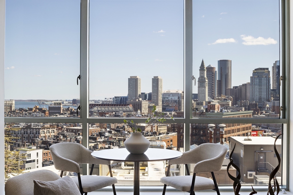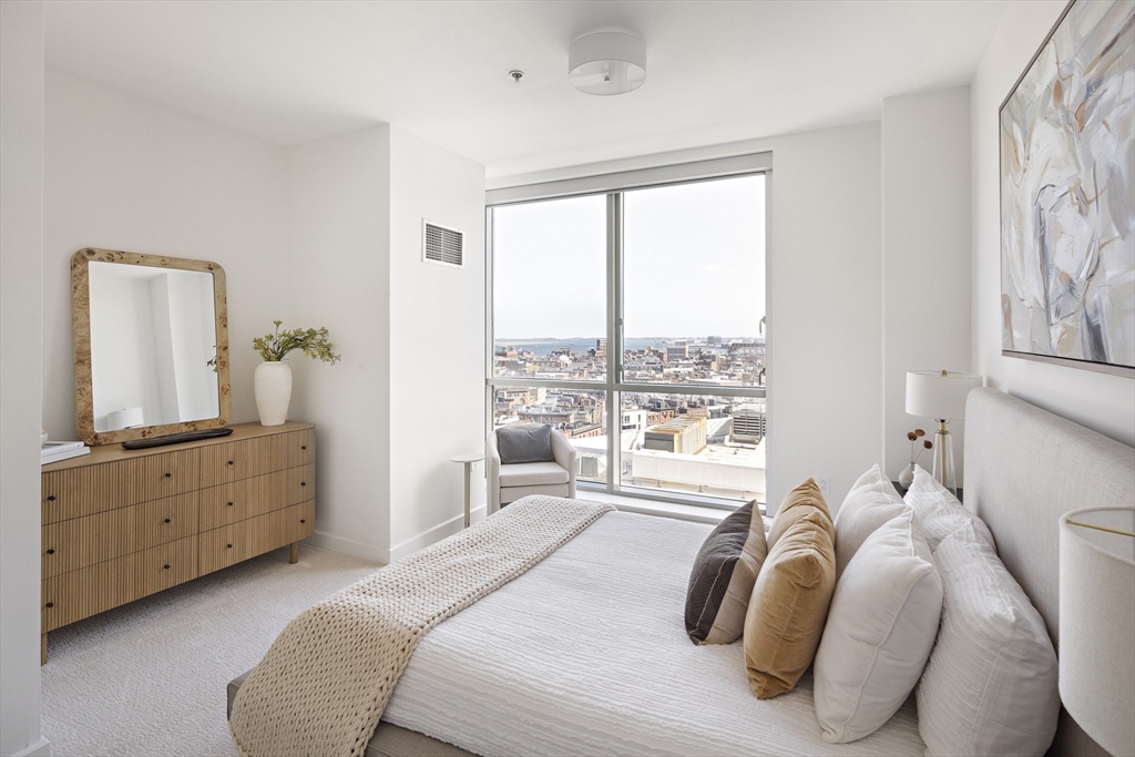 Perched on the 11th floor, this beautifully renovated front-facing 2-bedroom residence offers panoramic views of Boston Harbor, Downtown, and the Financial District, and includes one deeded valet parking space. South-east facing floor-to-ceiling windows flood the space with natural light, while the open-concept layout creates an effortless flow. Brand new kitchen features quartz countertops, custom cabinetry, stainless steel appliances, and a convenient breakfast bar. Rest and recharge in the primary bedroom that replicates the impressive city views. The second bedroom is spacious enough to accommodate a guest bed and a home office. Fully renovated bathroom features double sinks and ample storage space, while in-unit laundry adds everyday convenience. Strada234 residents enjoy boutique living with 24/7 concierge, fitness center and on-site café. Minutes from from TD Garden, Harborwalk, and North Station, and easy access to dining, shopping, highways, and iconic Boston neighborhoods