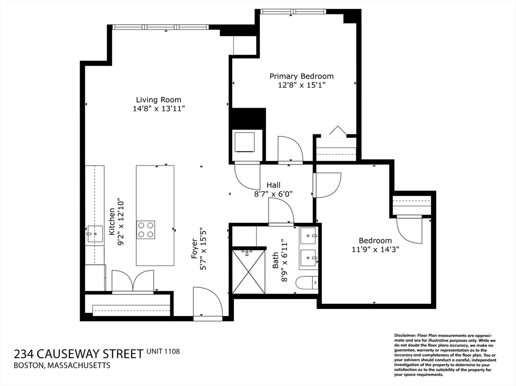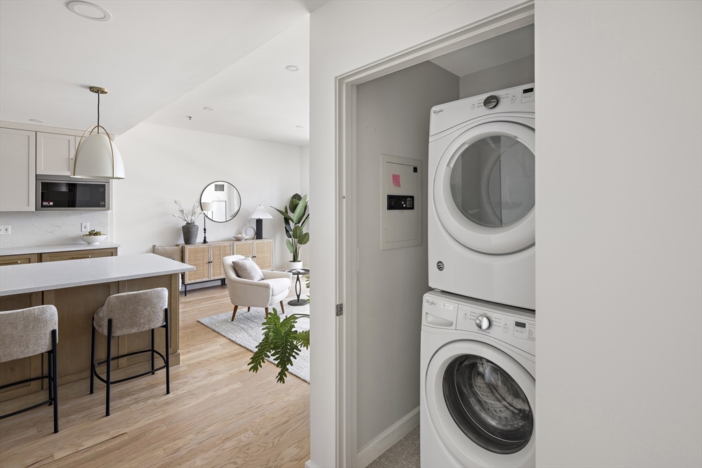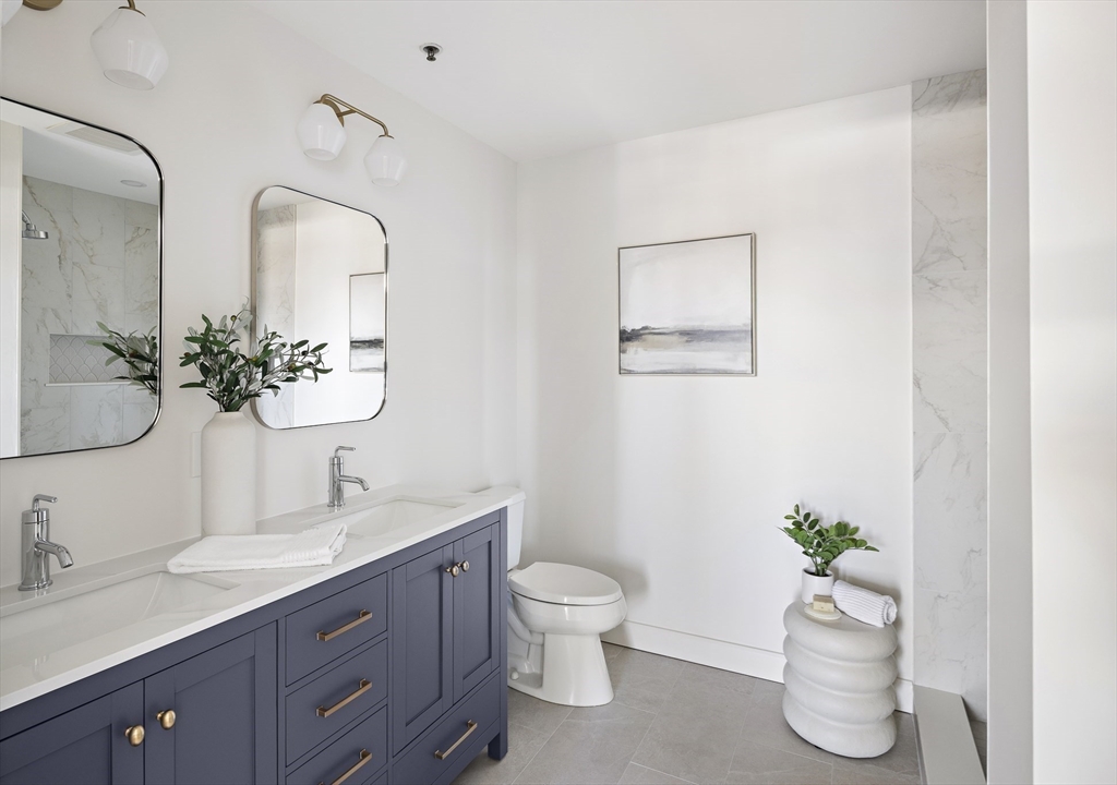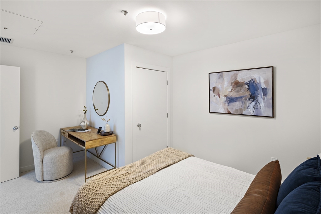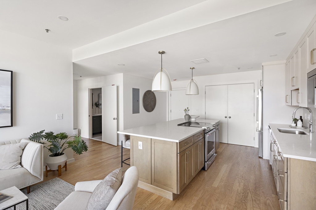 Perched on the 11th floor, this beautifully renovated front-facing 2-bedroom residence offers panoramic views of Boston Harbor, Downtown, and the Financial District, and includes one deeded valet parking space. South-east facing floor-to-ceiling windows flood the space with natural light, while the open-concept layout creates an effortless flow. Brand new kitchen features quartz countertops, custom cabinetry, stainless steel appliances, and a convenient breakfast bar. Rest and recharge in the primary bedroom that replicates the impressive city views. The second bedroom is spacious enough to accommodate a guest bed and a home office. Fully renovated bathroom features double sinks and ample storage space, while in-unit laundry adds everyday convenience. Strada234 residents enjoy boutique living with 24/7 concierge, fitness center and on-site café. Minutes from from TD Garden, Harborwalk, and North Station, and easy access to dining, shopping, highways, and iconic Boston neighborhoods