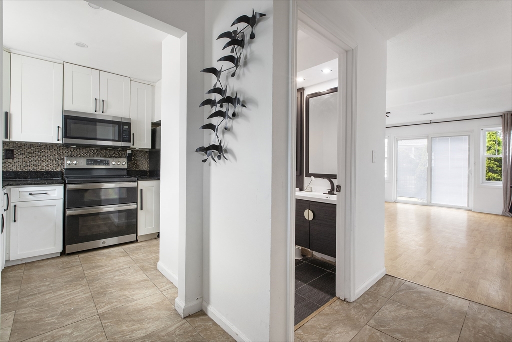 Beautifully updated townhouse-style end-unit condo at Tanners Hill! Offering three levels of living space. This 2-bedroom, 2.5-bath home features an updated kitchen with white cabinetry, granite countertops, stainless steel appliances, and tile flooring. Enjoy the warmth of an electric fireplace in the living room, new modern light fixtures, a half bathroom off the kitchen, and a private deck perfect for relaxing or entertaining. The upstairs features two spacious bedrooms with hardwood floors as well as a full bathroom on the top level. The finished basement is ideal for a home office, gym, or media room, fully heated with electric heat and its own bathroom with a walk-in shower. Located in a gated community with 2 assigned parking spaces and easy highway access, and an HOA fee of $381/month. Don't miss your chance to make this your home today!