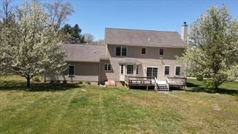 Welcome to this pristine, impeccably maintained home. This is the first time this property has been available for sale; offering 4 spacious bedrooms, a sprawling, private back yard great for entertaining and play area for family members and pets. A kitchen with hickory cabinets reaching to the ceiling, stone countertops and young SS appliances opens to dining area and step-down living room making for the perfect family gathering space. Sunlight pours in from all the rear facing windows and sliders to the oversized deck. First floor office is perfect for working at home or could serve as a formal dining room. Flexible, spacious front room, currently a dining room, could also be a relaxing formal living room. The oversized main bedroom is complete with walk in closet & full bath. Three additional bedrooms & a double sink bath complete the 2nd floor. Need more space, the lower level has great ceiling height for finishing. Easy access to town amenities, RTE 20 and MA Pike access.