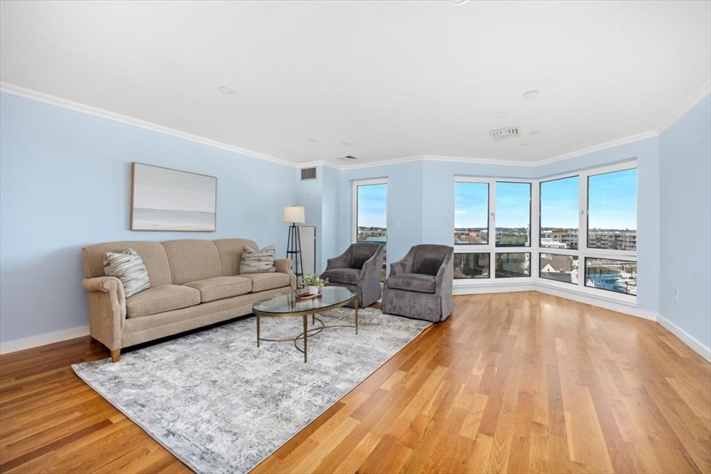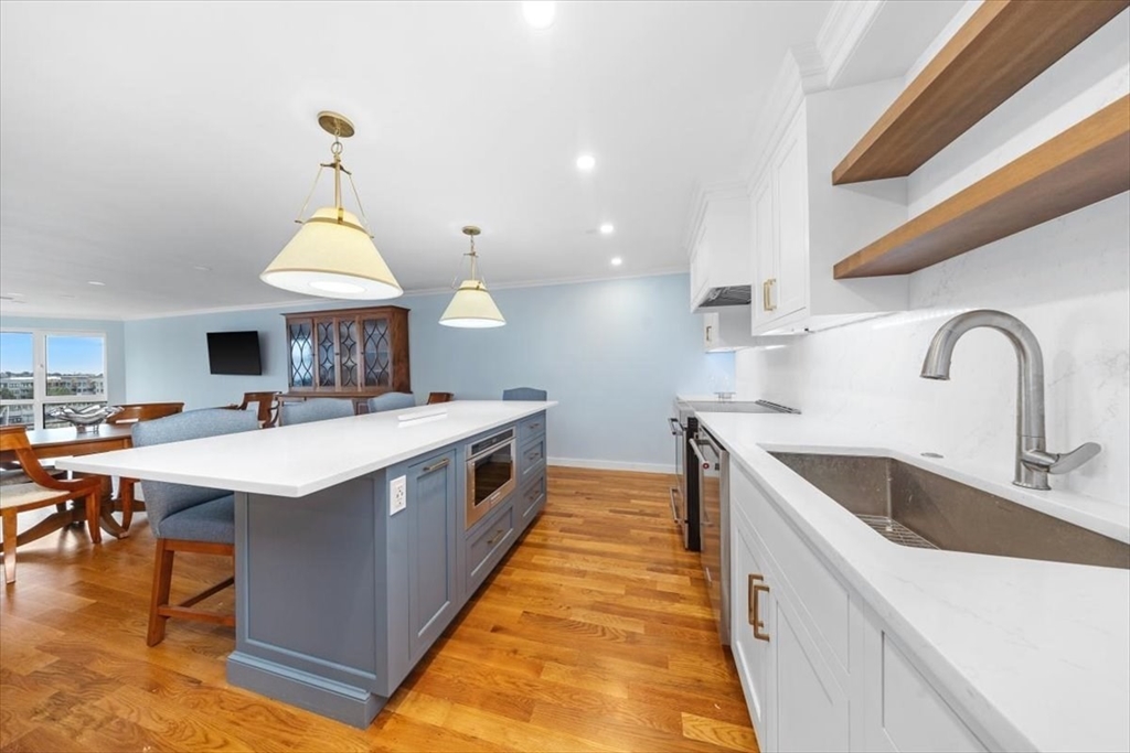Waterfront living at Marina Point! This beautiful 2BR/2BA condo features an open-concept layout with a modern kitchen, island, stainless appliances, and a walk-in pantry. Enjoy water views from the living room and both bedrooms, plus balcony access overlooking the marina. The primary suite offers two large walk-in closets and a private bath. Additional highlights include a second full bath, two deeded parking spaces (#359 and #360), several closets for all of your storage needs and in unit laundry! Steps to Marina Bay’s restaurants, shops, boardwalk and ferry for easy access to Boston. A lovely hospitality room available for private parties. Fitness facility available in next bldg.