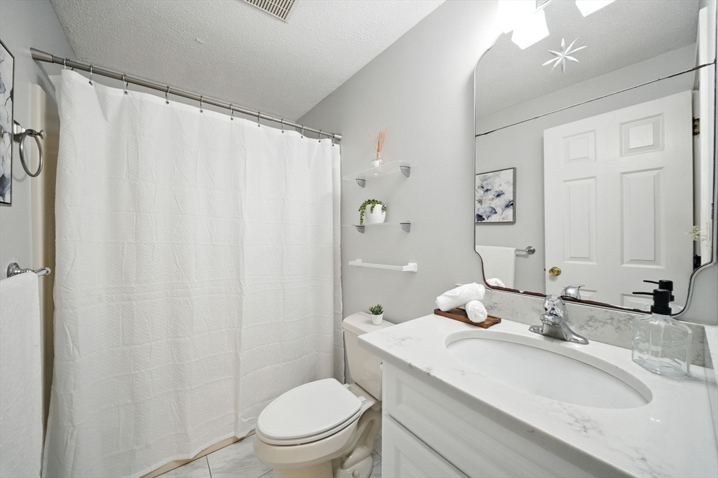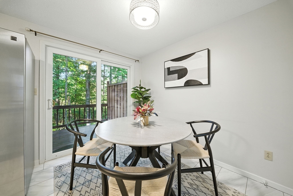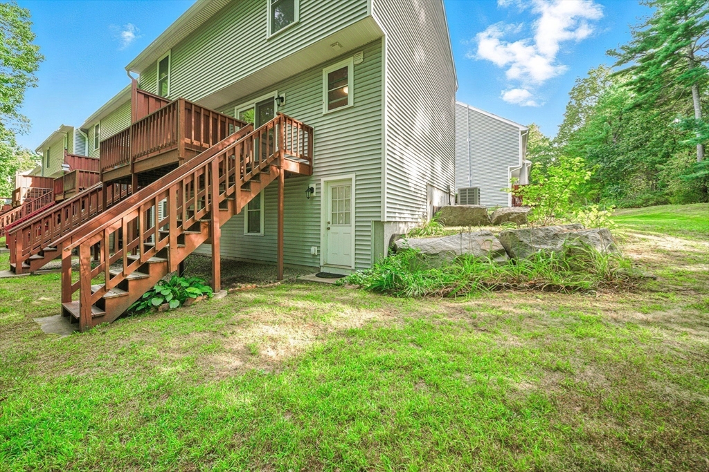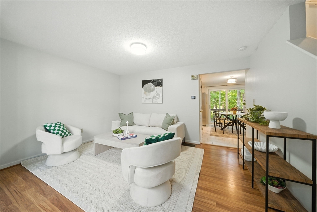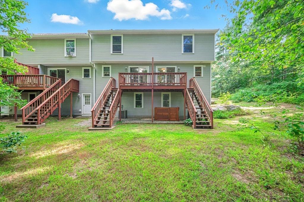 Welcome to 10 Groton Rd, Unit C1—an inviting end-unit townhouse tucked at the back of a quiet cul-de-sac in desirable Westford with top-rated schools. This sun-filled 2-bedroom, 1.5-bath home has been extensively updated. Recent improvements include new siding, roof,septic and parking lot by the condo association, plus owner upgrades to the kitchen, bathrooms, and flooring. The main level offers a bright living room, modern kitchen with Fotile vented-out range hood, dining area, and a convenient half bath. Upstairs, two spacious bedrooms share a full bath. The partially finished walkout basement adds flexible living space—perfect for an office, playroom, or guest room—with in-unit laundry. Enjoy central heating and cooling with a newer HVAC system. With a private deck, green space, 2 off-street parking spot plus abundant guest parking, and easy access to shopping, dining, commuter routes, and top-rated schools, this move-in ready townhouse is a must-see!