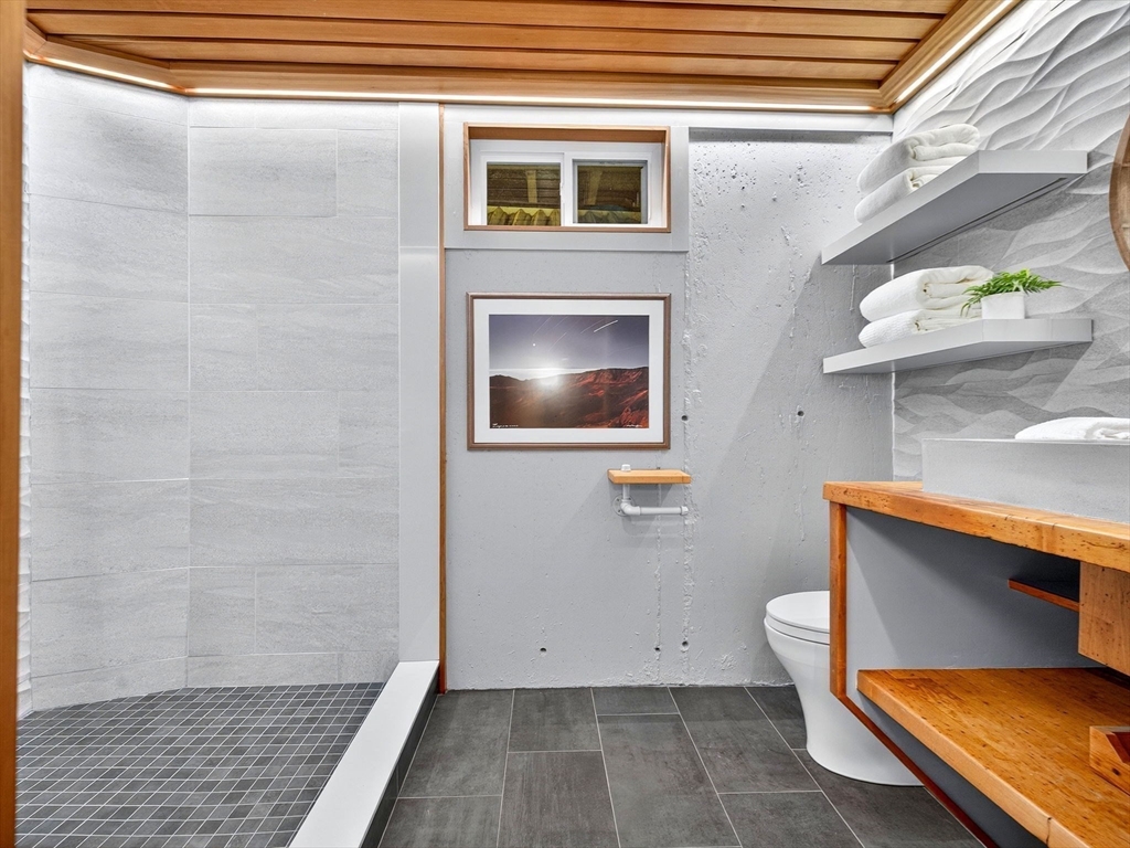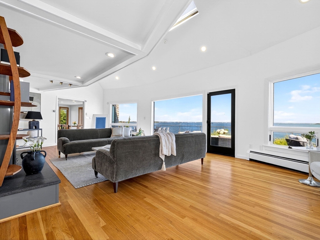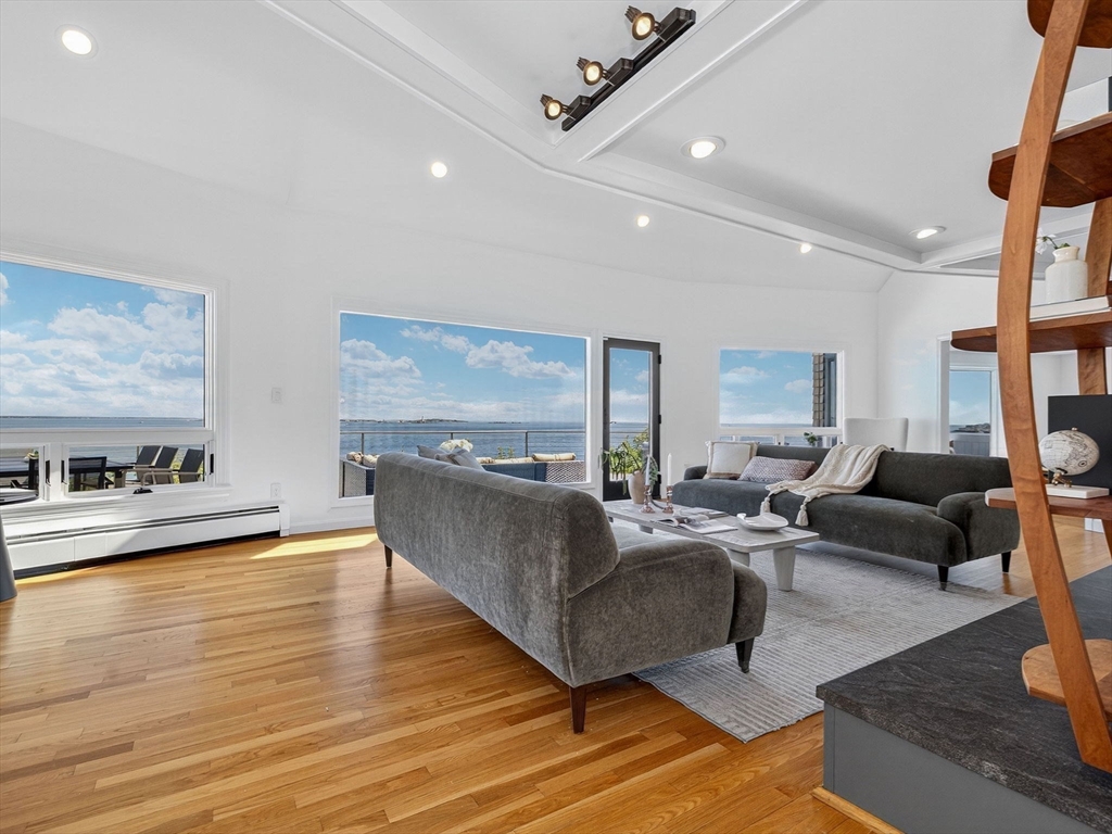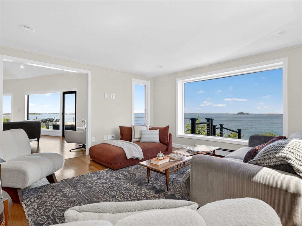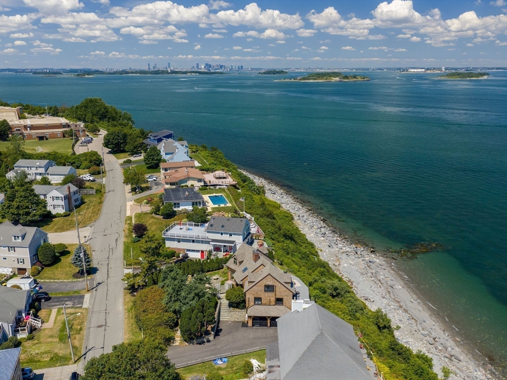Coastal living just minutes from the city. This stunning home showcases thoughtful design, extraordinary detail, and walls of glass with sweeping views of the city skyline, Boston Light, and the Harbor Islands- best enjoyed from the expansive deck perched high above the ocean. The chef’s kitchen is a perfect blend of form and function, with premium appliances, custom cabinetry, and a granite island that anchors the open dining space. Four bedrooms, most with ocean views, provide private retreats, while the main level offers an inviting living room, den, bedroom, and bath with seamless access to a deck, hot tub, and tranquil Zen garden. The lower level is dedicated to wellness and relaxation with a family room, gym with sauna, and a spa-like bath featuring a luminous walk-in shower. An oversized two-car garage, brand new cedar shake siding, fresh paint, recessed lighting, and composite decking complete this exceptional residence. This is more than a home - it's a waterfront lifestyle.