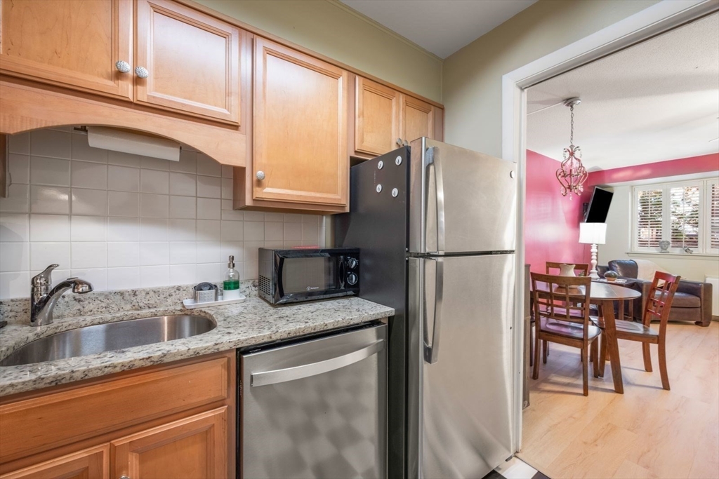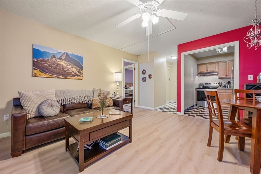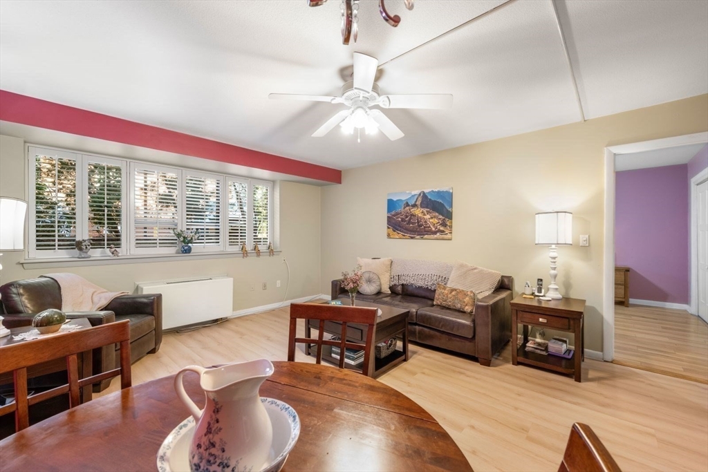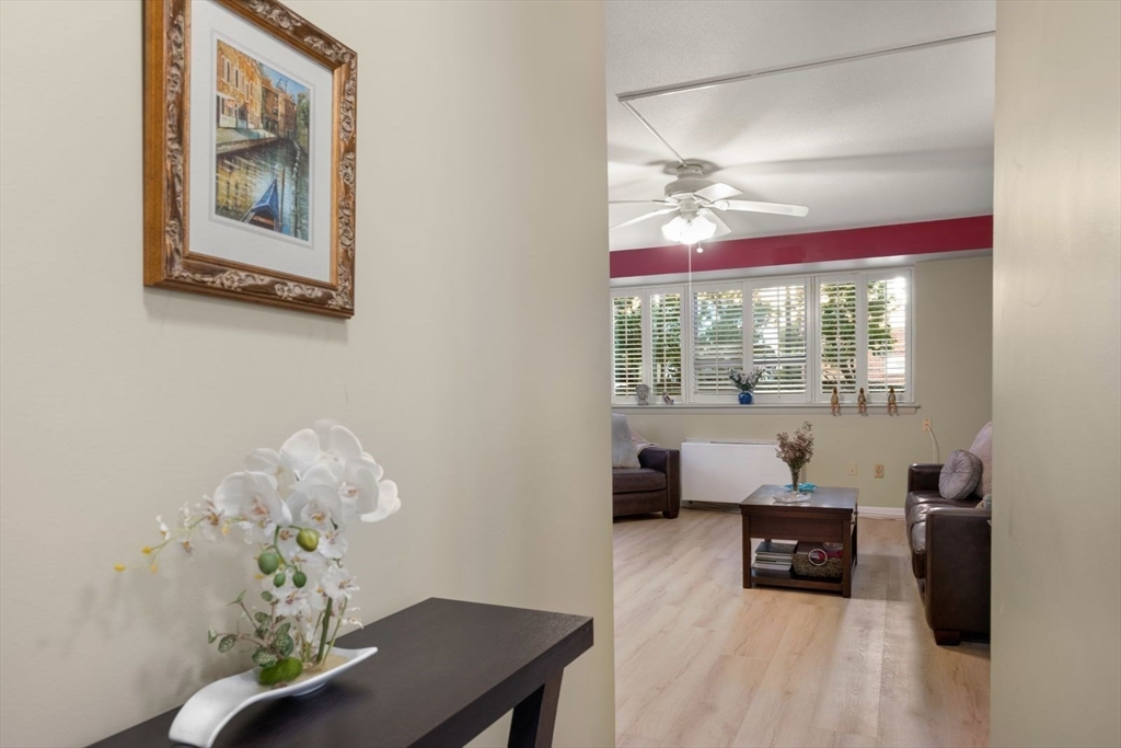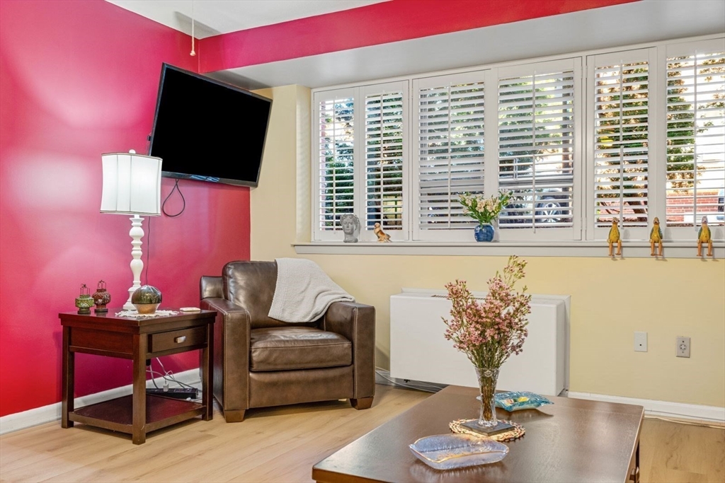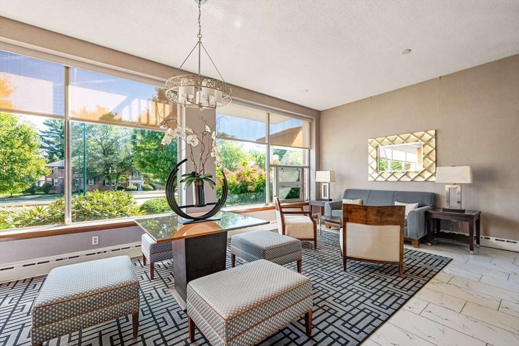 This beautifully updated one-bedroom condominium in Chestnut Hill offers comfort and convenience. The open-concept layout connects the living, dining, and modern kitchen areas, showcasing newer flooring, ceiling fans and California Closets. The kitchen features granite countertops and newer appliances. There are 2 cooling and heating units in the condo for temperature control. Full sized windows w/ louvered shutters offer natural light and privacy. Unit comes with assigned carport parking space #62 The association offers guest parking, a bike room, outdoor heated pool and a grilling area. This professionally managed building has a recently updated lobby, hallways and lovely landscaped grounds. Conveniently located near The Street and The Shops at Chestnut Hill as well as the Green Line T Station.