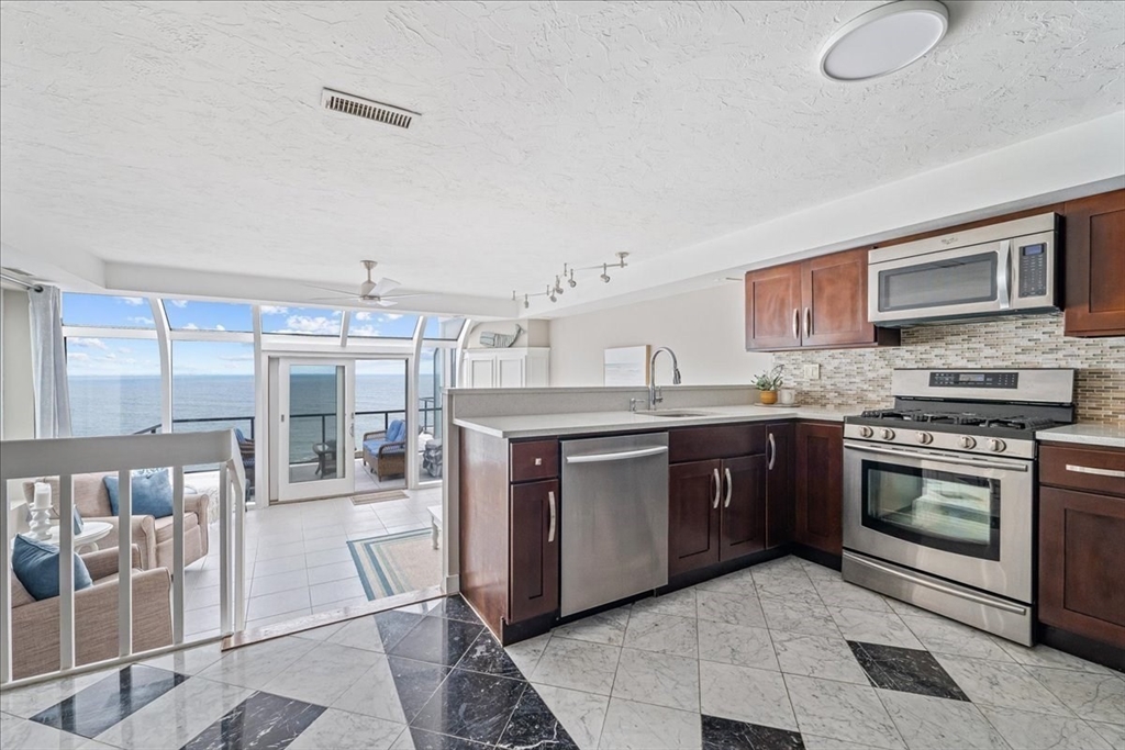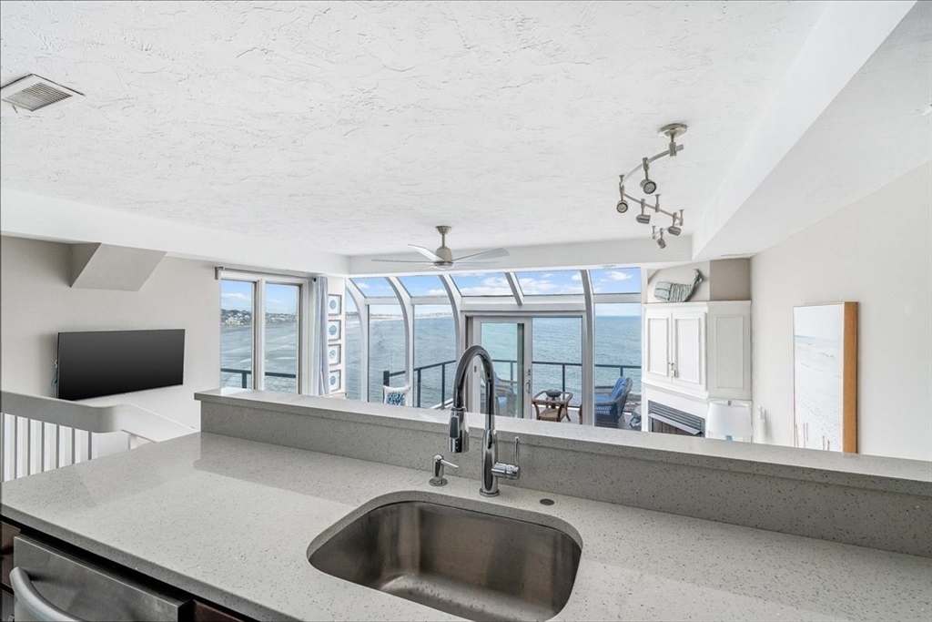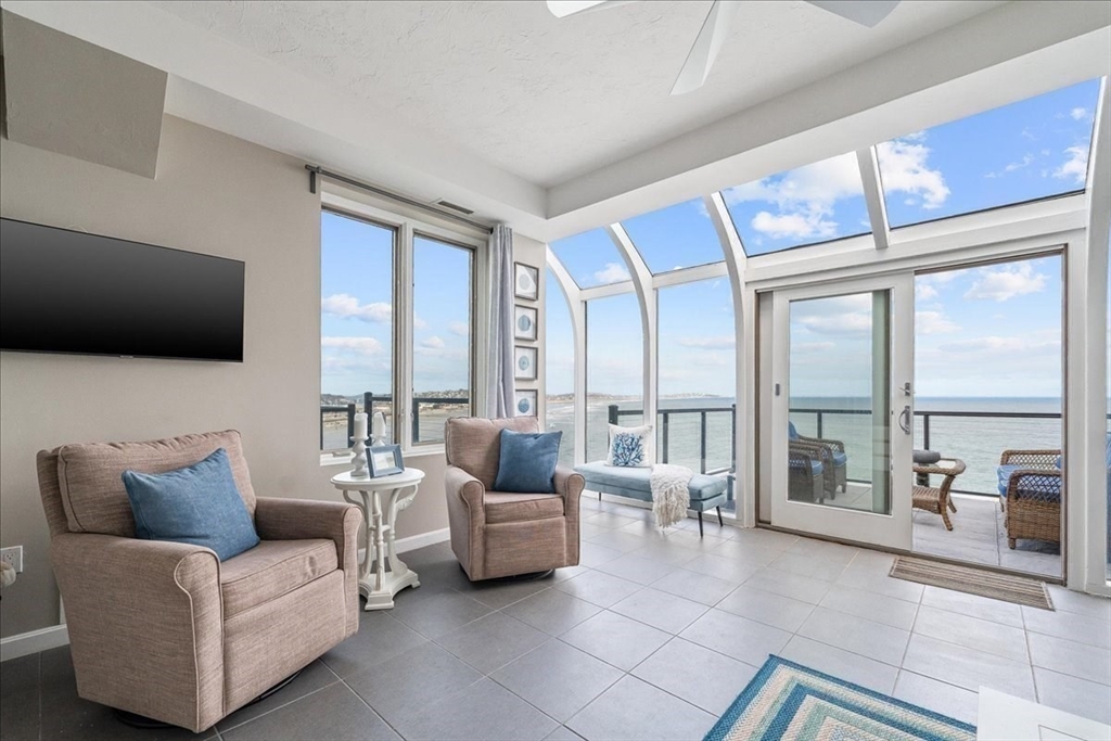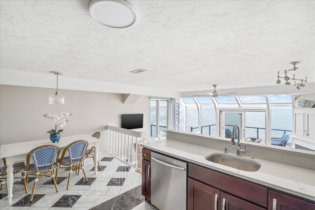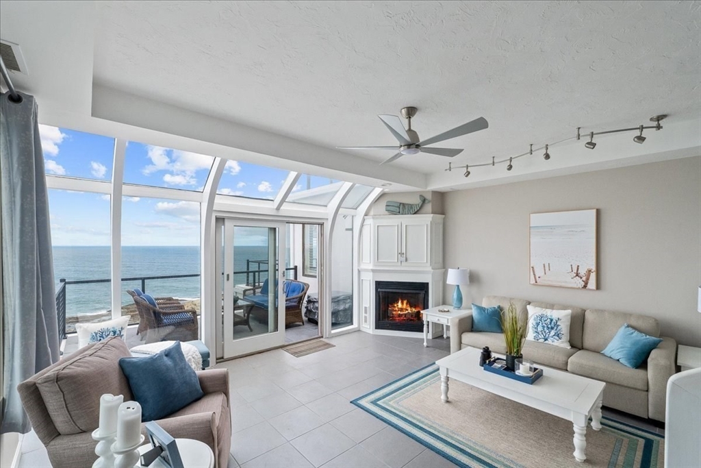 Wrapping up the most anticipated renovation project on the South Shore, the Atlantic Hill condos are revealing the Stunning, new look of its two year design plan just in time for Summer. Enviably situated, for views unparalleled; AHII sits high atop Atlantic Hill, offering panoramic, sweeping views that hold timeless the beauty of the MA coastline. The striking architecture blends the natural surroundings with organic, naturalistic shapes that mirror the lapping waves below. The Result. A Seamless blending of indoor/outdoor living. Inside, the renovated, open kitchen overlooks the sunken living room w/cozy, gas fireplace, corner exposure & separate dining. Offering both a generously sized bedroom & bathroom boasting double sinks & separate jacuzzi. Composed of only 39, luxury homes, this Waterfront retreat is a great weekend getaway or a full-time oasis. A shared, private beach, deeded garage parking, guest parking & oversized walk-in storage room complete this inviting offer.