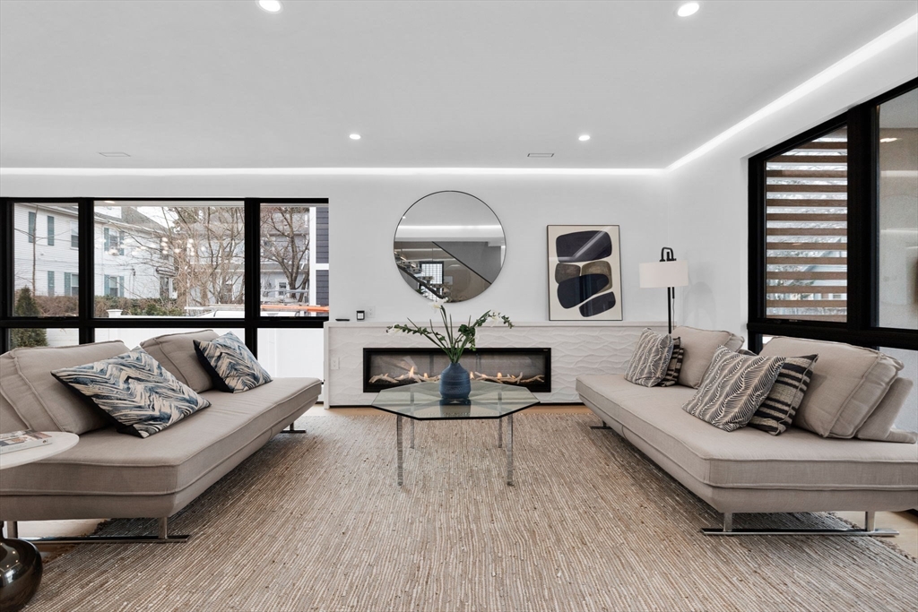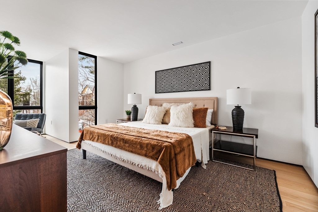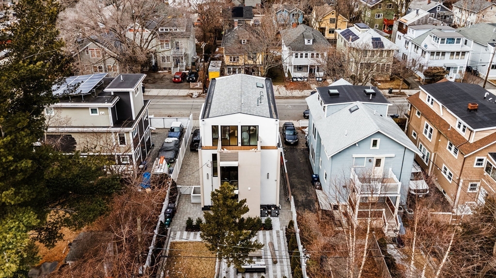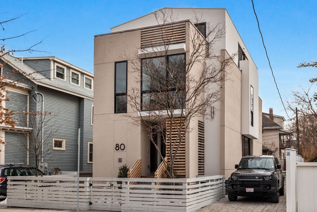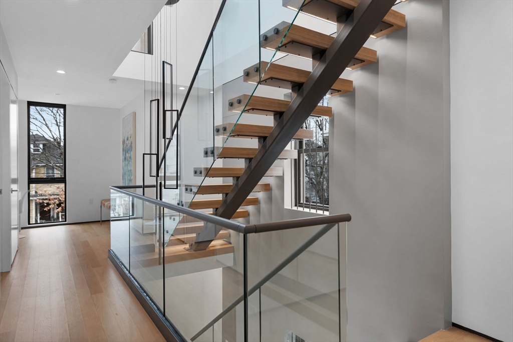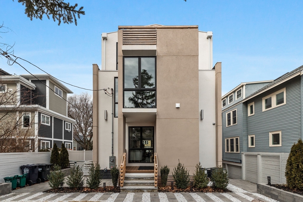 Experience modern luxury in this newly constructed, architecturally stunning home with clean lines, a minimalist aesthetic, and sustainable design. Nestled on a quiet tree-lined one-way street, yet just moments from La Saison Bakery Café, Fresh Pond Reservation & Golf Course, Whole Foods, Trader Joe’s, yoga studios, climbing walls, and Danahy Park. Flooded with natural light, the home features soaring ceilings, floor-to-ceiling windows, and an elegant open floor plan. Rich natural wood and stone finishes add warmth, while custom Divine Design cabinetry and radiant heated floors in the primary bath, closets, and lower level provide ultimate comfort. The entire third level is dedicated to one of two luxurious primary suites—your private retreat with a spa-like en-suite bath and three decks facing East, West, and South. Acoustic batting in walls and floors ensures tranquility. A rare blend of elegance, innovation, and sustainability—this home is truly one of a kind!