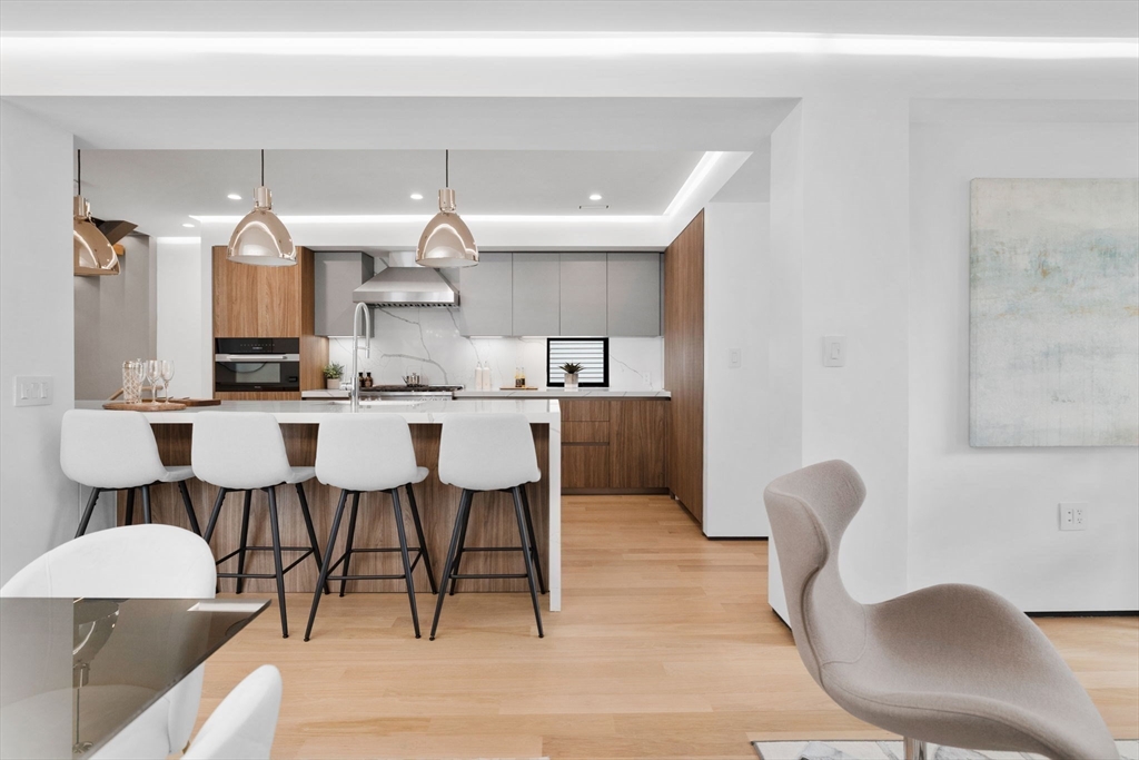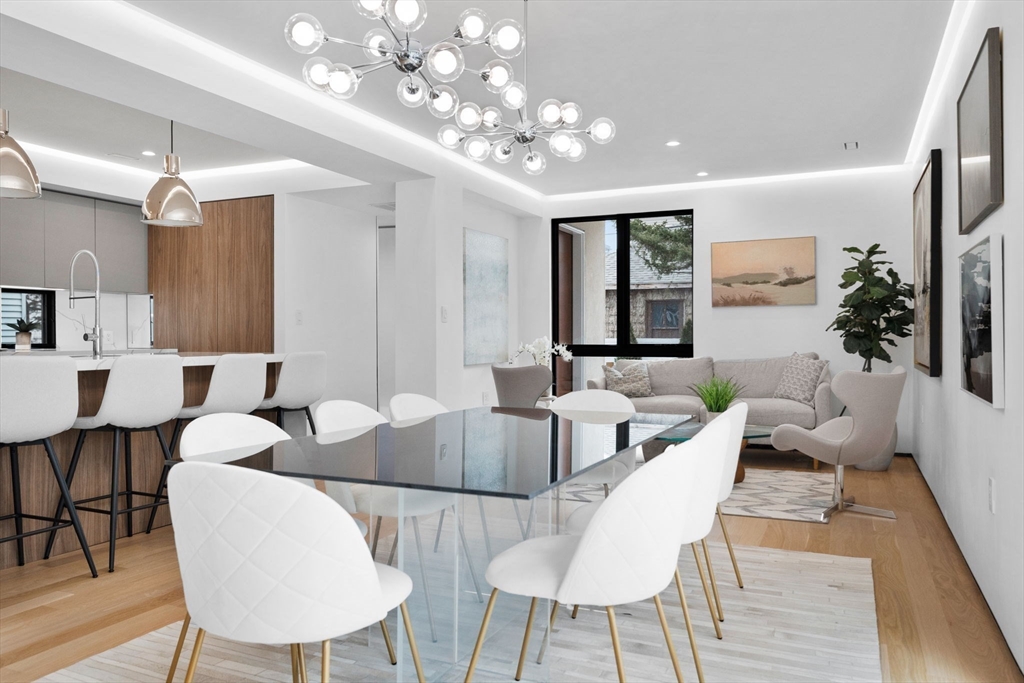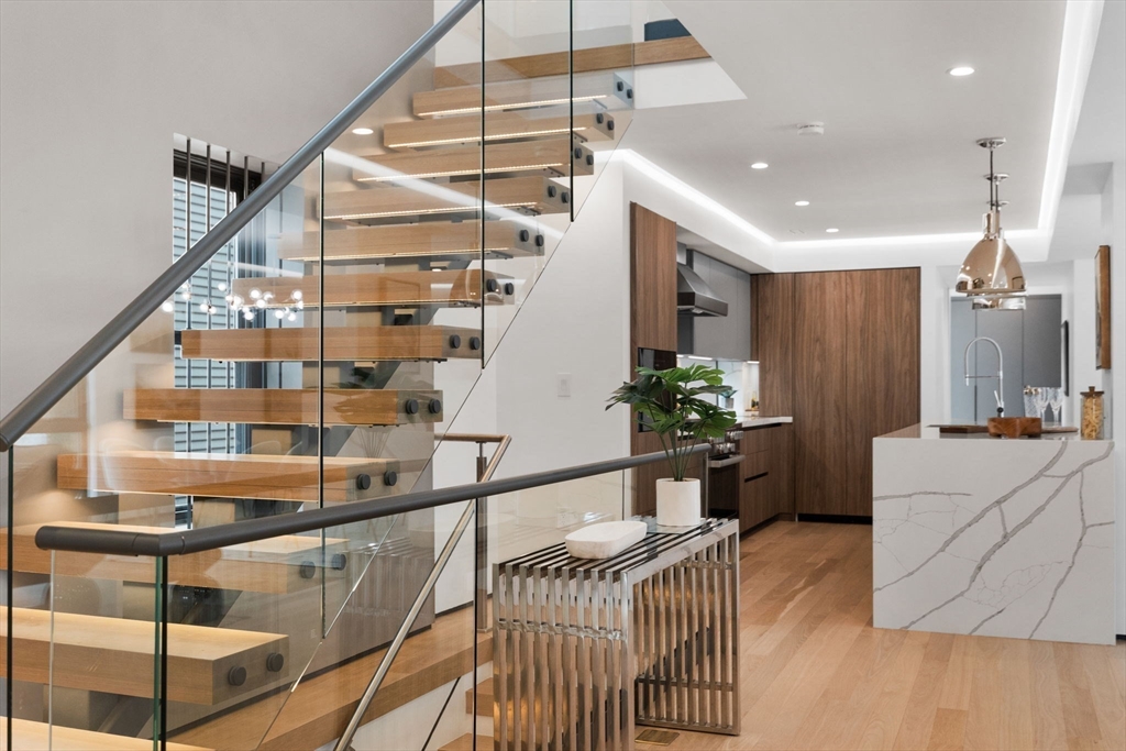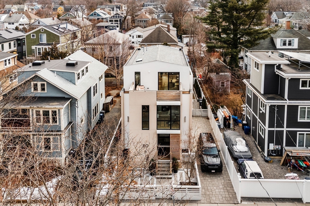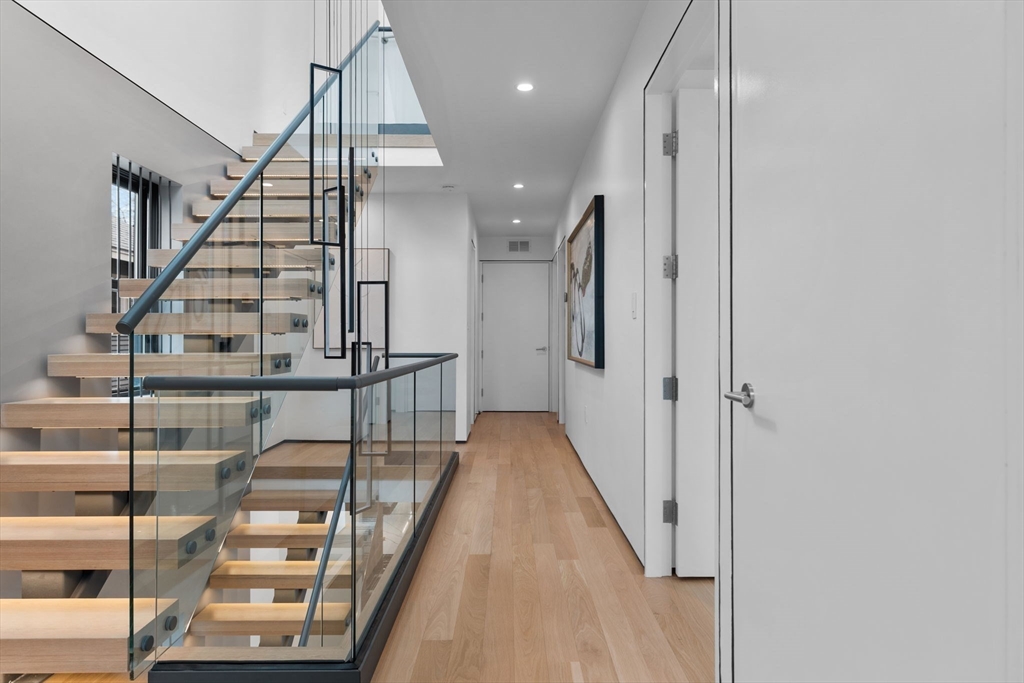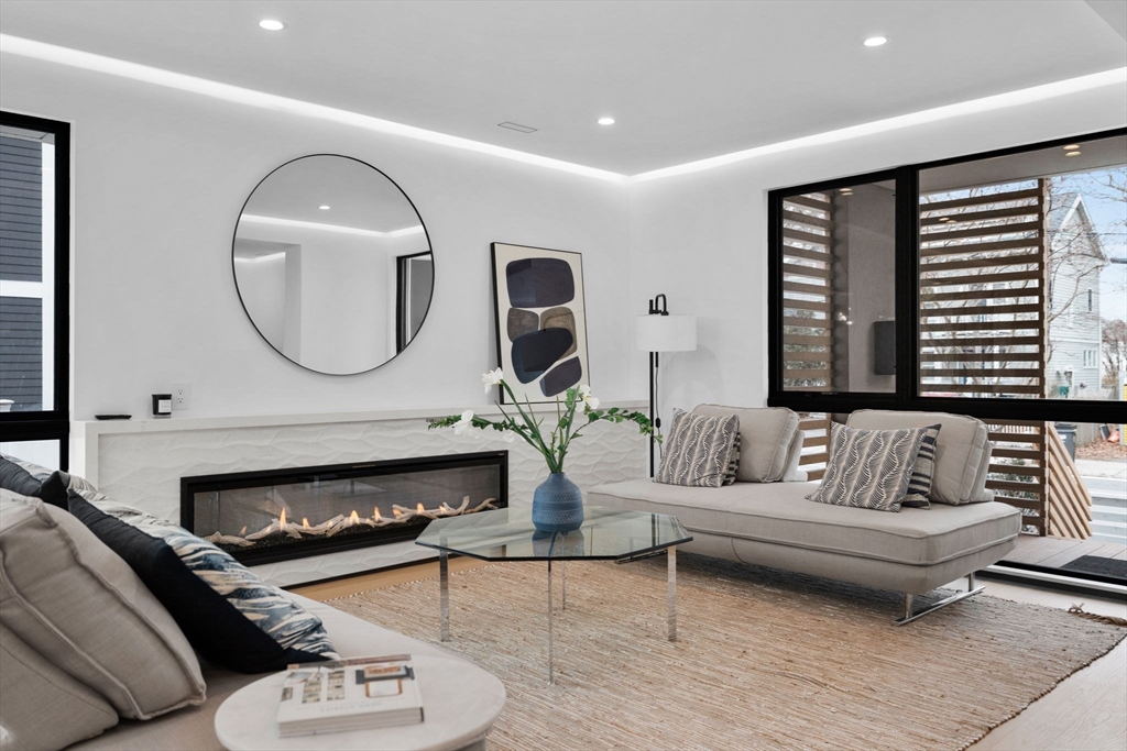 Experience modern luxury in this newly constructed, architecturally stunning home with clean lines, a minimalist aesthetic, and sustainable design. Nestled on a quiet tree-lined one-way street, yet just moments from La Saison Bakery Café, Fresh Pond Reservation & Golf Course, Whole Foods, Trader Joe’s, yoga studios, climbing walls, and Danahy Park. Flooded with natural light, the home features soaring ceilings, floor-to-ceiling windows, and an elegant open floor plan. Rich natural wood and stone finishes add warmth, while custom Divine Design cabinetry and radiant heated floors in the primary bath, closets, and lower level provide ultimate comfort. The entire third level is dedicated to one of two luxurious primary suites—your private retreat with a spa-like en-suite bath and three decks facing East, West, and South. Acoustic batting in walls and floors ensures tranquility. A rare blend of elegance, innovation, and sustainability—this home is truly one of a kind!