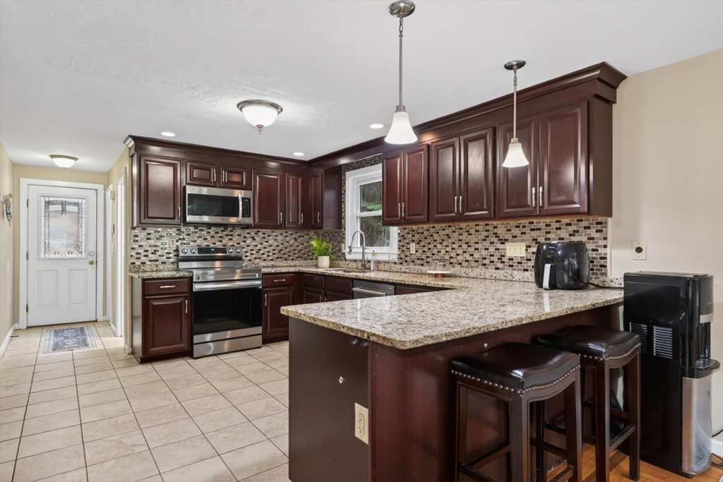 Experience the full charm of Westford living in this thoughtfully updated home, offering comfort, character, and scenic surroundings. The inviting porch sets the tone for relaxing summer evenings, while the interior features a refreshed first floor designed with an open, versatile layout ideal for today’s lifestyle. Beautiful hardwood floors with walnut inlay add warmth and craftsmanship throughout the main level. A picture window off the kitchen and a spacious screened porch frame distant views of Keyes Pond, bringing natural light and a sense of tranquility into the home. The updated kitchen is equipped with modern cabinetry, granite countertops, and stainless steel appliances, creating a functional and stylish space for cooking and gathering. Located on a quiet, private street, the property provides easy access to Rt. 40 and Rt. 3 for convenient commuting while maintaining a peaceful residential feel. The walk-out basement offers excellent potential for future expansion.