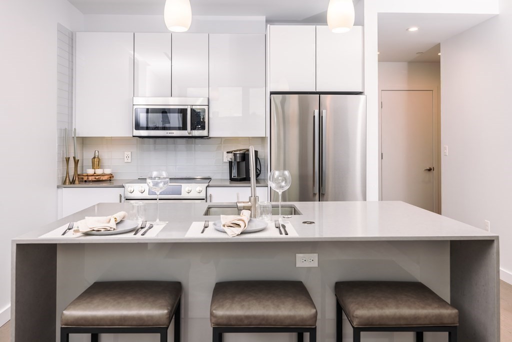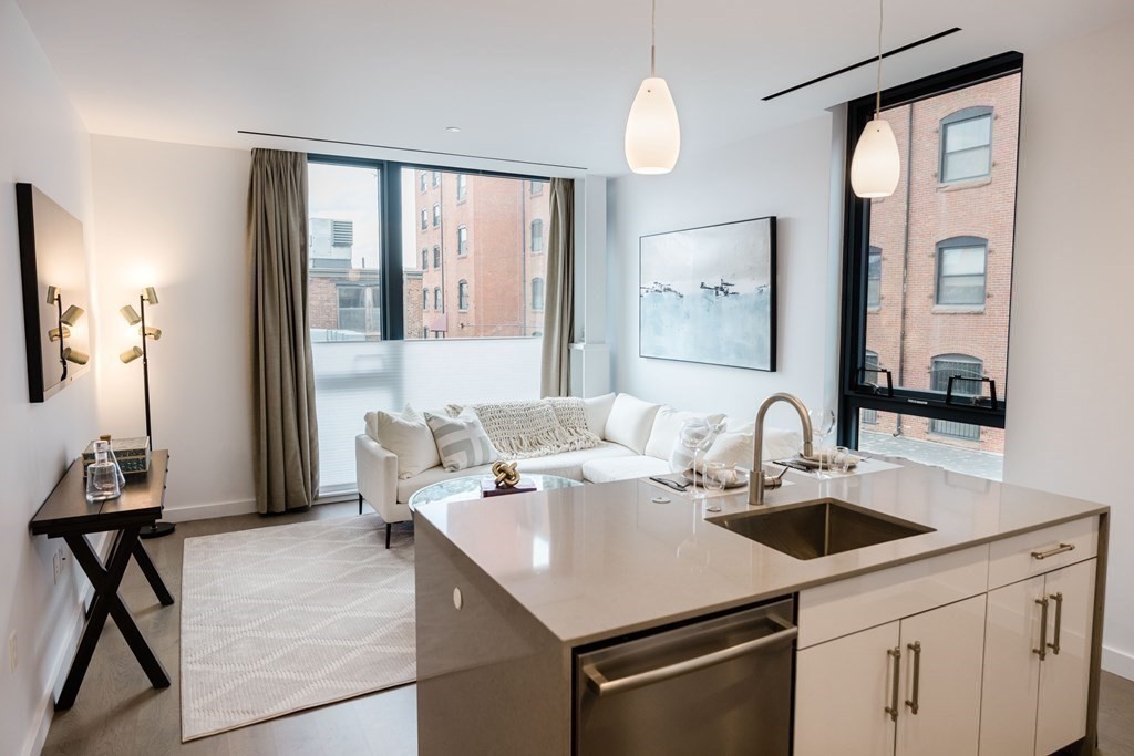 Elevate your lifestyle at 88 Wareham St, a luxury haven in the vibrant SoWa district of Boston’s South End. This meticulously designed corner unit offers a one-bedroom layout with a home office and an open-concept design, flooded with natural light through expansive windows. It features Baltic Elite oak floors, Caesarstone countertops with a waterfall edge, sleek white gloss kitchen cabinetry, a glass tile backsplash, and Grohe plumbing fixtures. The unit is equipped with top-of-the-line stainless steel appliances, an in-unit washer/dryer, and central A/C. Enjoy stunning views of the Boston skyline from the 1,500-square-foot landscaped common roof terrace. Convenience meets luxury with this prime location, just steps from Boston's best restaurants, Whole Foods, the SoWa Market, and I-93 and I-90 highways. Welcome home!!