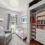 This beautiful, 3+BR/2BA, 1416sf, sunny upper duplex is filled with charm and detail and lives large with its open layout and long flow. Enter into the beautiful living/dining space with handsome custom built-in, gas fireplace with white mantel, and spacious custom entry closet. A cozy office/play space is off to the side. A recently renovated full BA with tub and custom shelving/cabinetry is tucked off the dining space. The eat-in kitchen, featuring white shaker cabinetry, white quartz countertops, stainless appliances, built-in workstation, and large pantry with W/D, flows out to an expansive, updated private deck with tree canopy - perfect for entertaining. The upper level offers three bedrooms, including a king size primary with two custom closets and an updated private deck. Two additional bedrooms with custom closets, a well-appointed full BA with marble topped double vanity, and a spacious landing complete this level. C/Air. Close to town center, 93 bus, restaurants and shops.