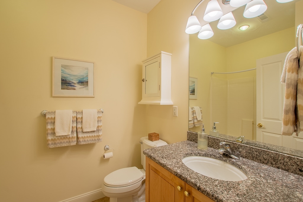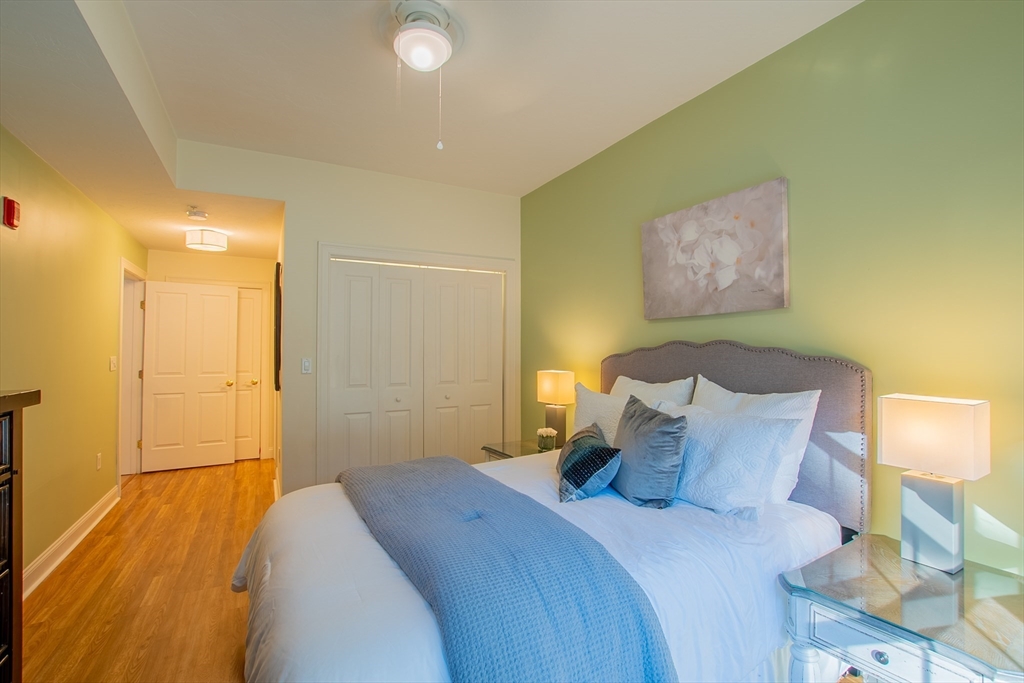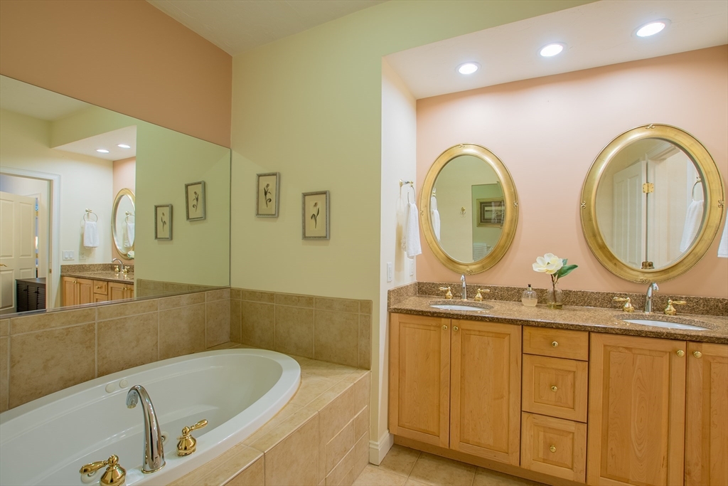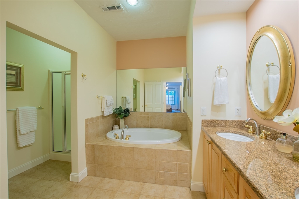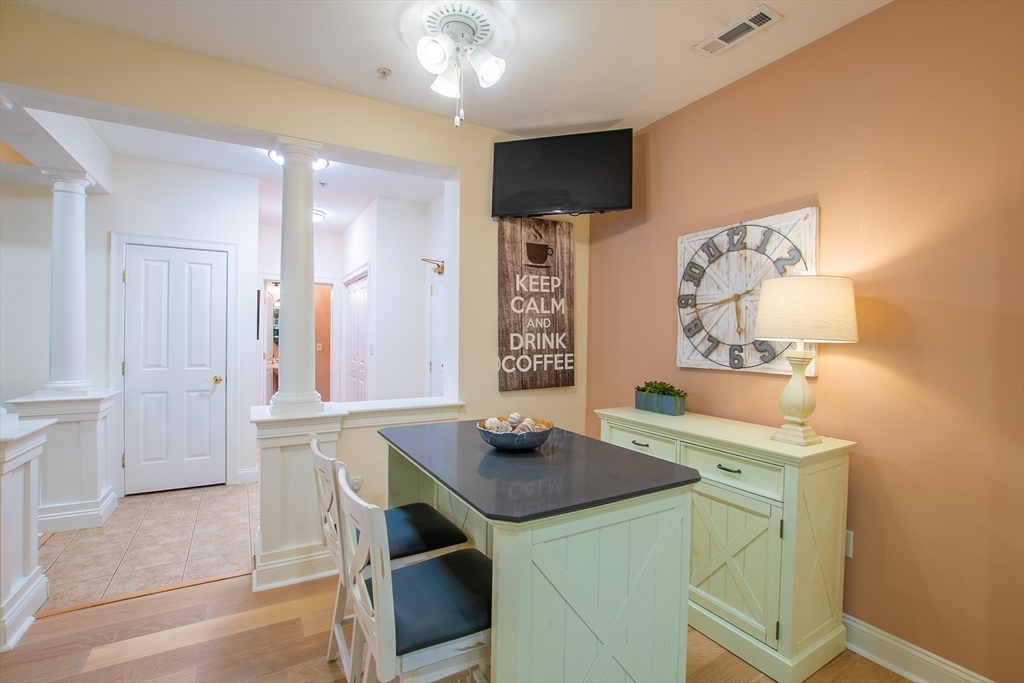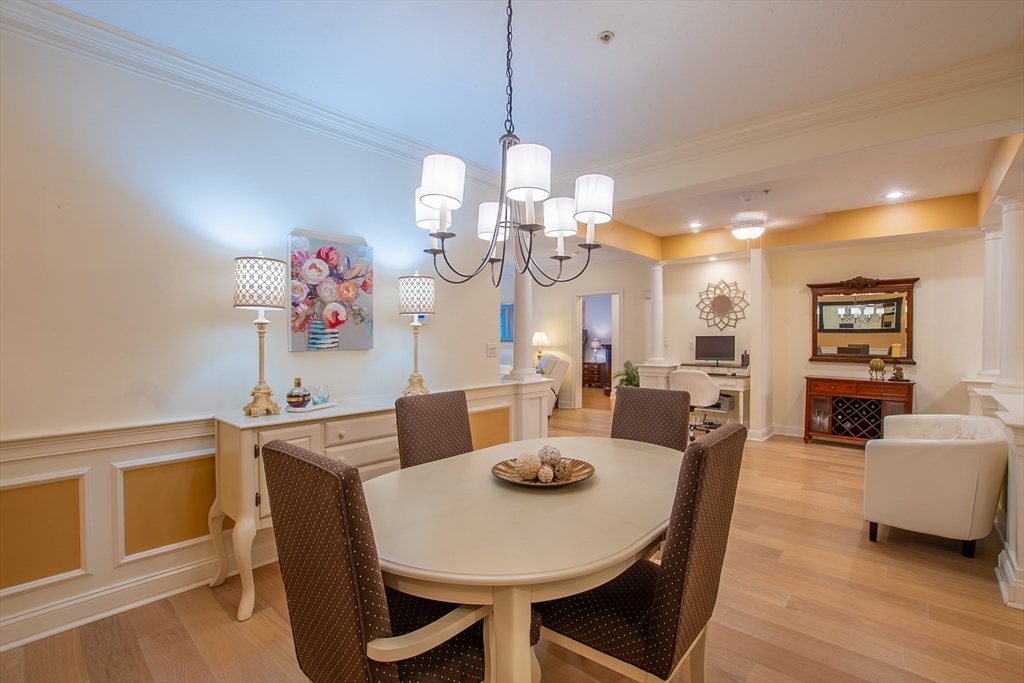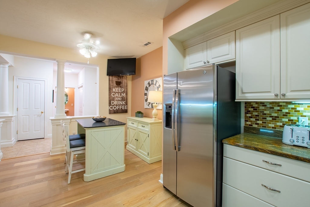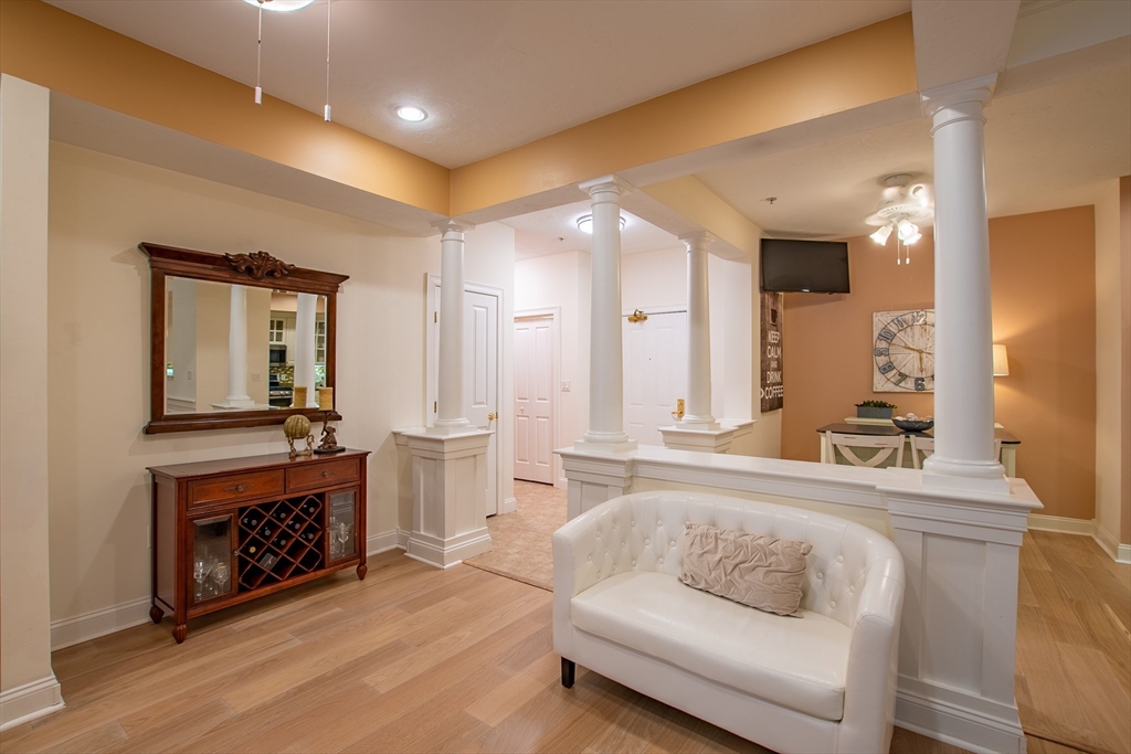 Beautifully maintained two-bedroom, 2.5-bath condo in desirable Bedford. This spacious unit features an updated kitchen with tiled backsplash, granite countertops and stainless steel appliances. The open-concept living and dining area showcases enhanced woodwork, including crown molding and wainscoting, plus updated flooring throughout. The generous primary suite offers two walk-in closets and an en suite bath with whirlpool tub and double vanity. The second bedroom has a private full bath. Additional highlights include in-unit laundry, gas fireplace, central A/C, covered patio, and two assigned garage parking spaces. Conveniently located near Route 128/95, shops, restaurants, and Bedford’s top-rated schools—ideal for professionals, downsizers, or anyone seeking a move-in-ready home with low-maintenance and single-level living full of sophistication.