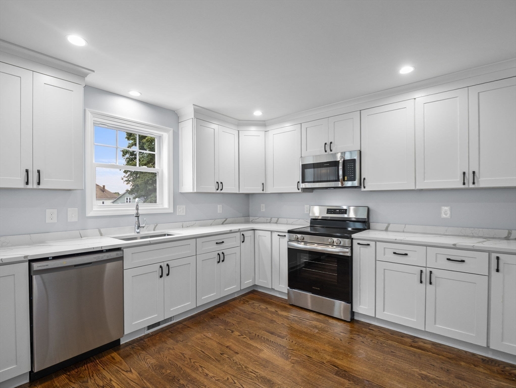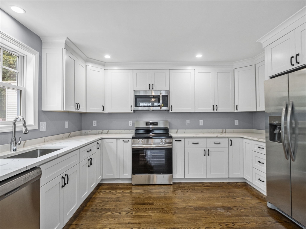 Inviting traditional style home ideally established on a useful leveled lot on the Lowell/Dracut line, featuring carefree vinyl siding, gutters, off-street parking, spacious fenced in yard-ideal for summer gatherings and convenient first floor laundry. This 7 room, 3 bedrooms, 2.5 baths with gracious finished attic; boasts a combination of hardwood floors and wall to wall carpeting, upgraded stainless steel appliances, counter-tops and cabinets in all bathrooms and kitchen. Master bdrm with walk-in closet & master-bath. Slider to the deck and fenced in yard welcomes the natural light. Tastefully painted and adequate floor plan provides a swift and functional flow throughout the home. Home also has freshly loomed front lawn & backyard. With easy access to NH and routes 110 & 113 makes it ideal for the commuters. Nearby shopping, dining, schools, downtown entertainment, parks, pools and a playground right across the street makes this an ideal location for your next home sweet home!