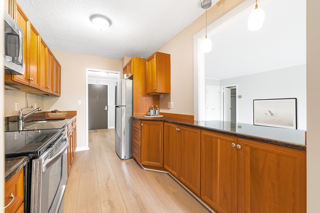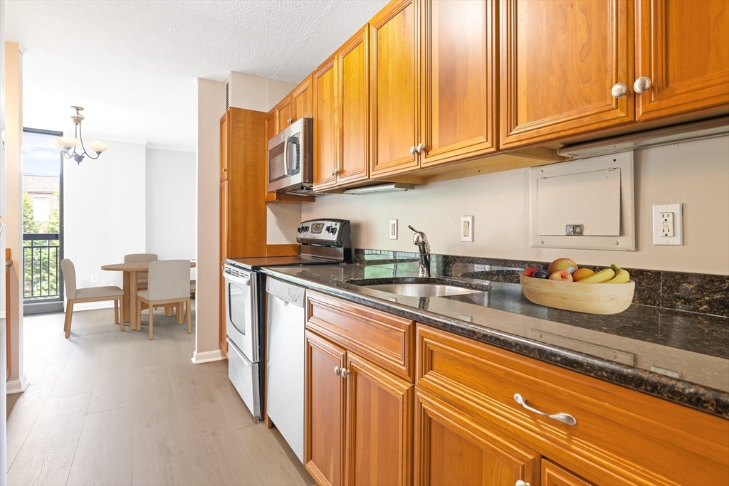 Live in the heart of Coolidge Corner, one of Brookline’s most sought-after neighborhoods! This spacious 1-bedroom, 1.5-bath condo features an open, airy layout with brand-new flooring, central air, and abundant closet space. Step onto your oversized private balcony overlooking the pool—perfect for relaxing or entertaining. The updated kitchen boasts stainless steel appliances and granite countertops and flows seamlessly into the dining area, ideal for hosting. Enjoy the convenience of a full-service building with premium amenities, including a 24-hour concierge, seasonal pool, and fitness center. Just steps from shops, dining, public transit, and the Longwood Medical Area, this location offers unmatched accessibility. Don’t miss this rare opportunity to own in a beautifully maintained, amenity-rich building. One garage parking space and a storage unit are included.