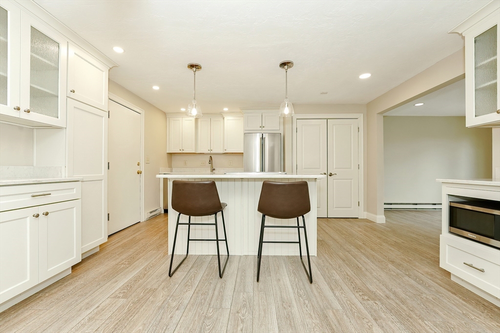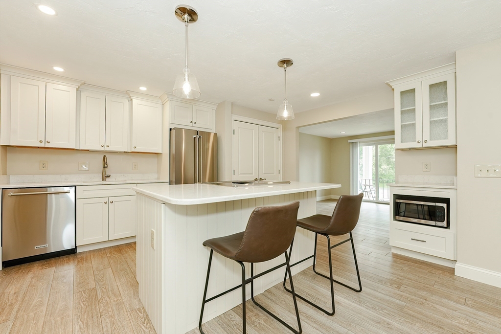 Welcome to Countryside Condominiums! Step into this upgraded, open-concept one-bedroom condo that has everything you need. Inside, you'll find a spacious layout with neutral tones, stainless steel appliances and in-unit laundry. The open kitchen and dining area flow seamlessly into a comfortable living room that leads to your private balcony, perfect for morning coffee or evening relaxation. Located on the second floor of a charming brick building, the unit includes two marked parking spaces right outside the main entrance (Unit O) for added convenience. Perfectly situated near the train station, Grafton Center, and major highways. A commuter’s dream with comfort, charm, and practicality.