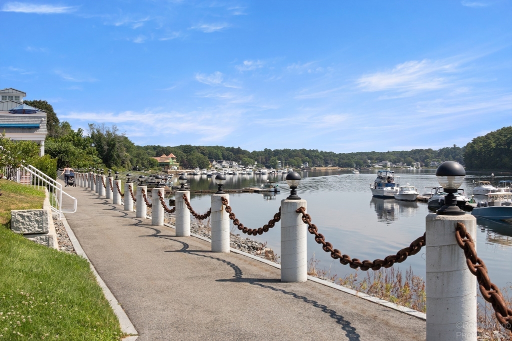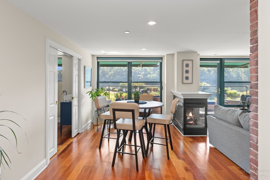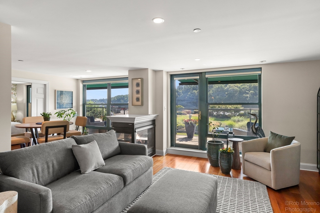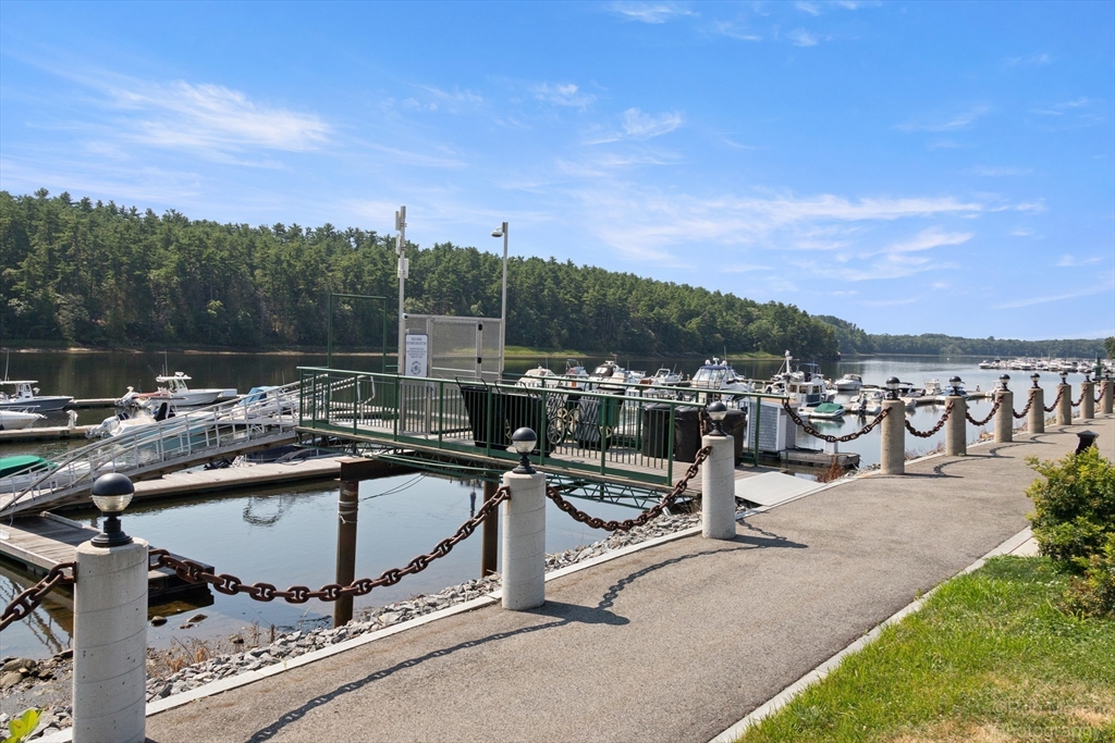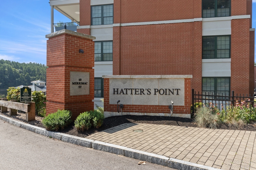Experience sweeping views of the Merrimack River from this beautifully updated, single-level waterfront condo at Hatter’s Point, an exclusive 55+ community. The thoughtfully redesigned kitchen features a Viking range, stainless steel appliances, an expansive island, custom cabinetry, and designer lighting—perfect for both everyday living and entertaining. Additional upgrades include custom closets, custom electric blinds, an updated heating system, and a stunning new bathroom with a tiled shower and glass door. The spacious primary suite offers a peaceful retreat, while an additional versatile room—complete with a built-in Murphy bed—easily functions as a guest room or home office. Start your mornings with sunrise views from the private balcony overlooking the river and Maudslay State Park. With a cozy gas fireplace, two full baths, in-unit laundry, and garage parking, this turnkey condo offers refined, low-maintenance living in one of the area's most desirable 55+ communities.