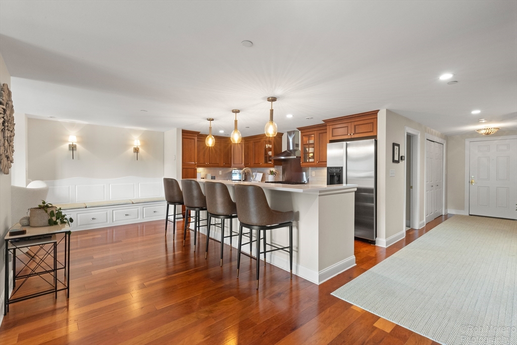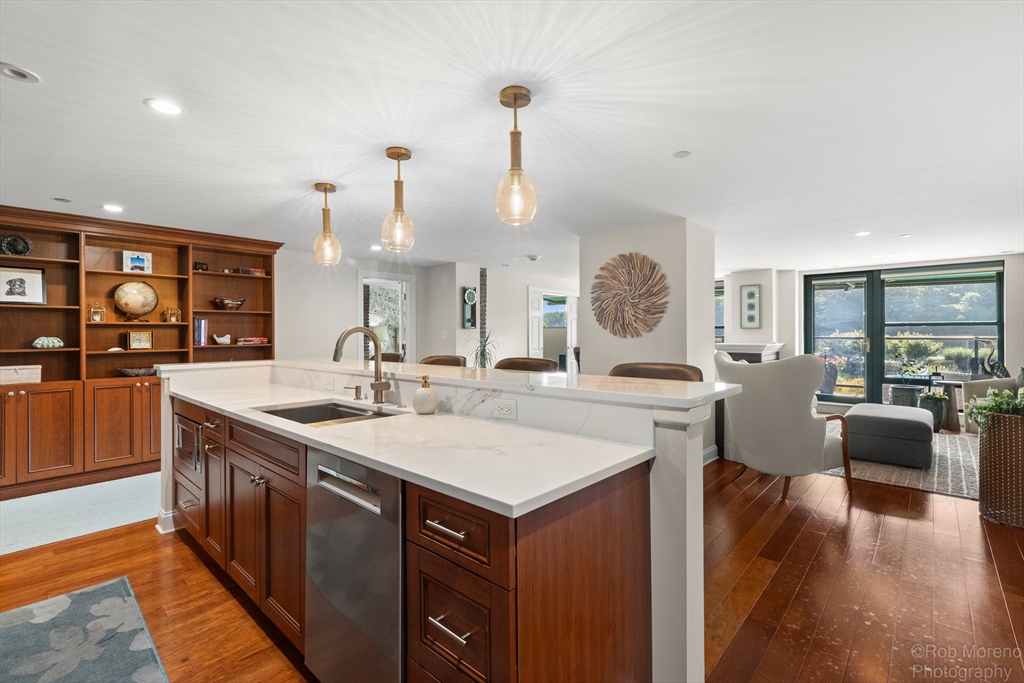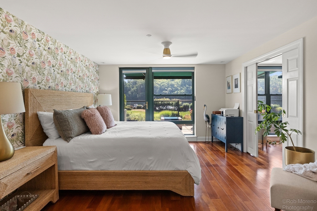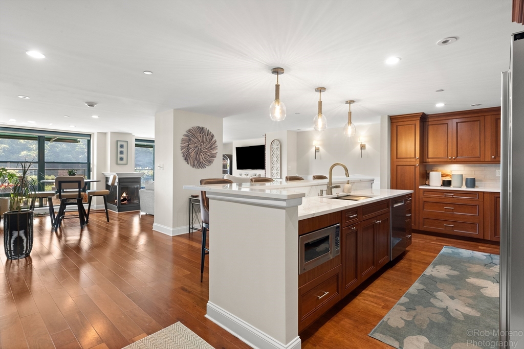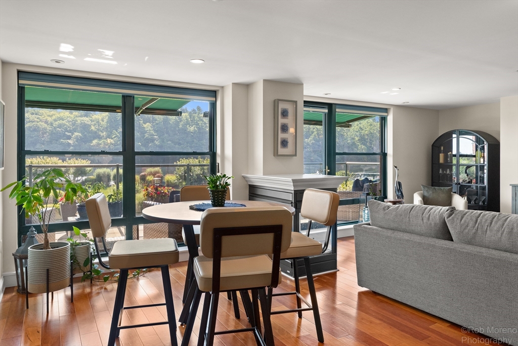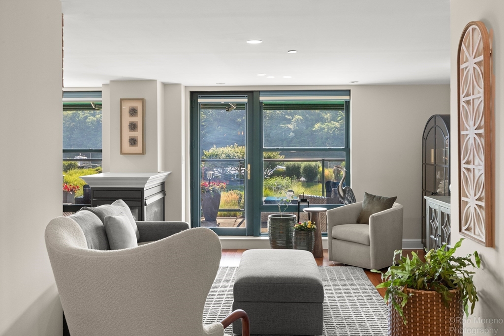 Experience sweeping views of the Merrimack River from this beautifully updated, single-level waterfront condo at Hatter’s Point, an exclusive 55+ community. The thoughtfully redesigned kitchen features a Viking range, stainless steel appliances, an expansive island, custom cabinetry, and designer lighting—perfect for both everyday living and entertaining. Additional upgrades include custom closets, custom electric blinds, an updated heating system, and a stunning new bathroom with a tiled shower and glass door. The spacious primary suite offers a peaceful retreat, while an additional versatile room—complete with a built-in Murphy bed—easily functions as a guest room or home office. Start your mornings with sunrise views from the private balcony overlooking the river and Maudslay State Park. With a cozy gas fireplace, two full baths, in-unit laundry, and garage parking, this turnkey condo offers refined, low-maintenance living in one of the area's most desirable 55+ communities.