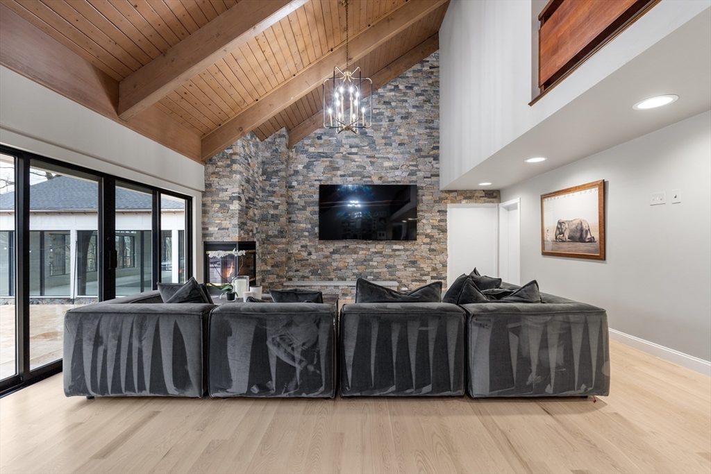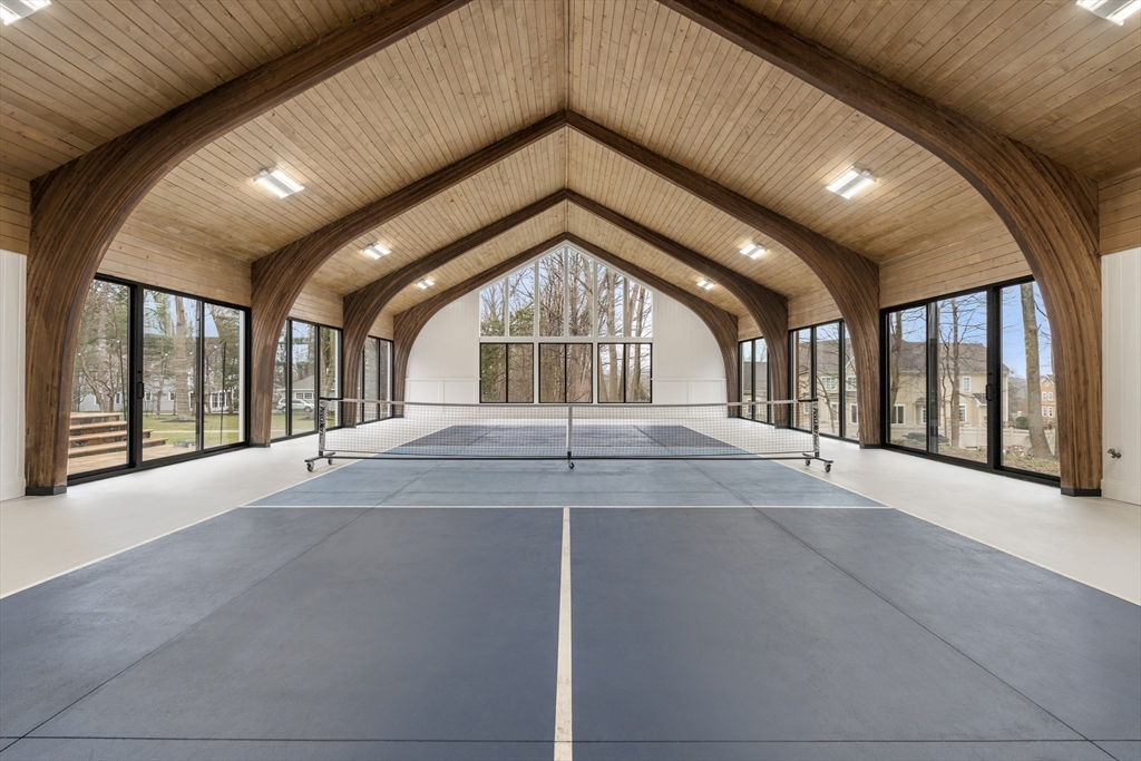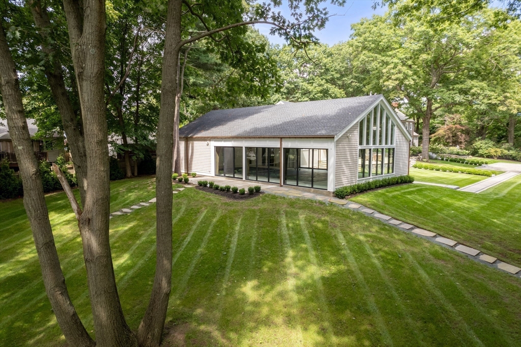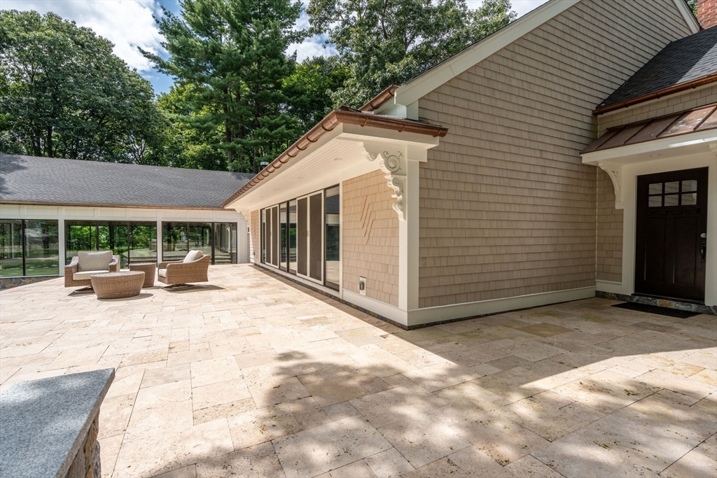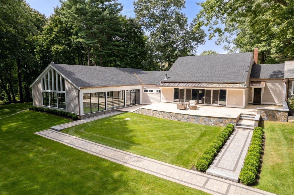 Don’t miss the opportunity to own unparalleled space and privacy at an incredible value at 50 Brush Hill Lane. Set on a private 1.82-acre lot, this estate blends timeless elegance with modern design, featuring cedar shingles, stone accents, and a sweeping driveway. Reimagined by renowned architectural firm Goody & Clancy, the mid-century modern addition complements the original 1940s colonial. With over 8,000 sq feet of living space, the layout offers flexibility for privacy, guests, and even multi-generational needs. Highlights include a newly renovated chef’s kitchen, full catering kitchen, laundry zones on two levels, a historic library, dual offices, home gym and a spacious great room that opens to a travertine patio with sprawling views. The show stopping indoor Sport Court adds unmatched recreational and entertaining space. With its expansive footprint and exceptional amenities, this home offers extraordinary value in today's market!