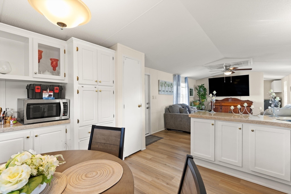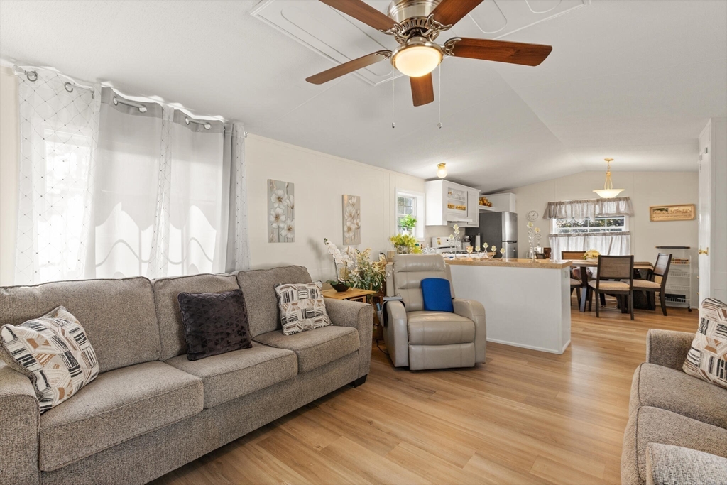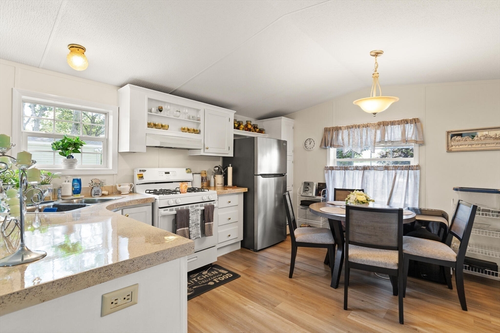 Beautiful!! Updated kitchen & bath, walk into the open and inviting kitchen/living room with newer luxury vinyl flooring. Primary bedroom is in the back of the home with room for a king sized bed and great closet space. 2nd bedroom for guests or an office. There is a 12 x 7 deck already for you to relax on and a storage shed for any extra's. Oak Hill is not an age restricted park ~ great option for first time buyers.