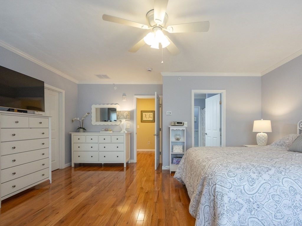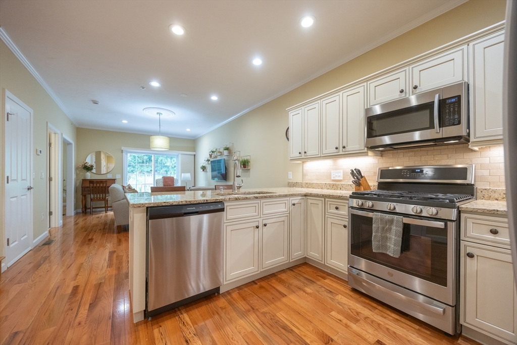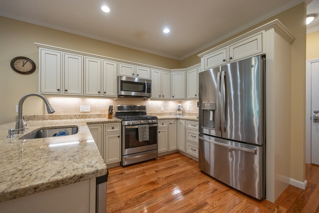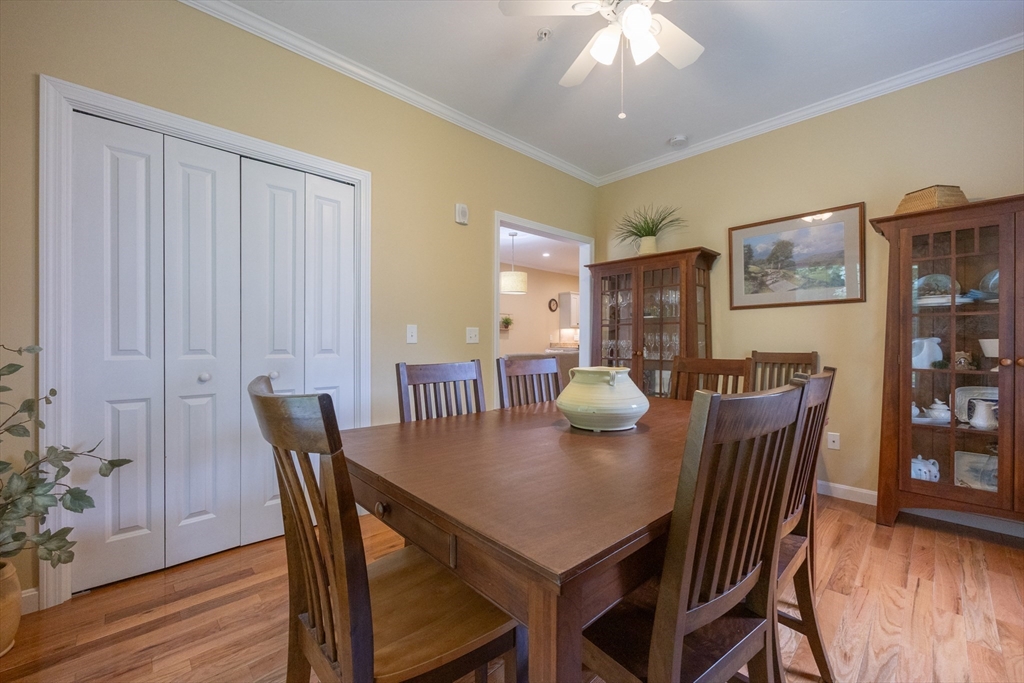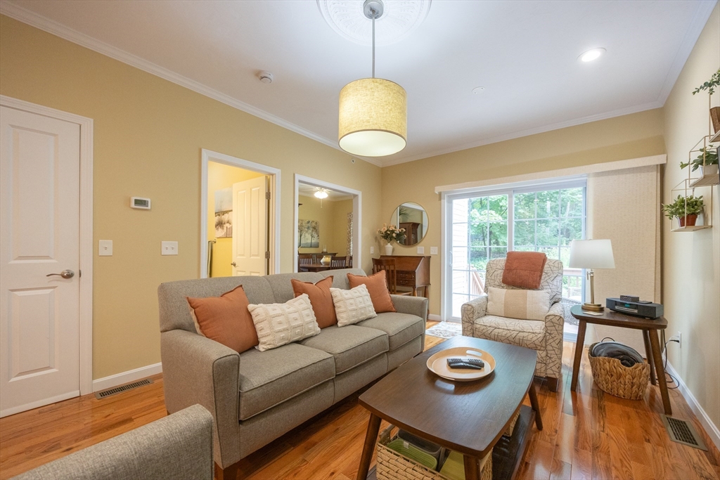 Welcome home to 58 Reed Street, where you'll find exactly what you've been looking for in a 55+ community. This sun-filled home offers 2 bdrms w/ the potential for a 3rd bdrm on the 1st floor, offering flexible living options to suit your needs. The open floor plan is ideal for entertaining. Custom upgrades throughout-hardwood and tile flooring, crown molding & custom closets. The spacious primary suite is a true retreat, boasting bathroom complete with a relaxing Jacuzzi tub and a tiled shower. The 2nd bedroom is generously sized, perfect for an additional office/guest bdrm. You'll find ample space in the basement for future expansion or all your storage needs. Plus, an attached one-car garage w/extra storage. Step outside to your private deck, where surrounding trees and flowers create a peaceful, private yard. Enjoy an ideal location with easy access to major routes, shopping, restaurants, and park. See Feature/Upgrade Doc for more information.