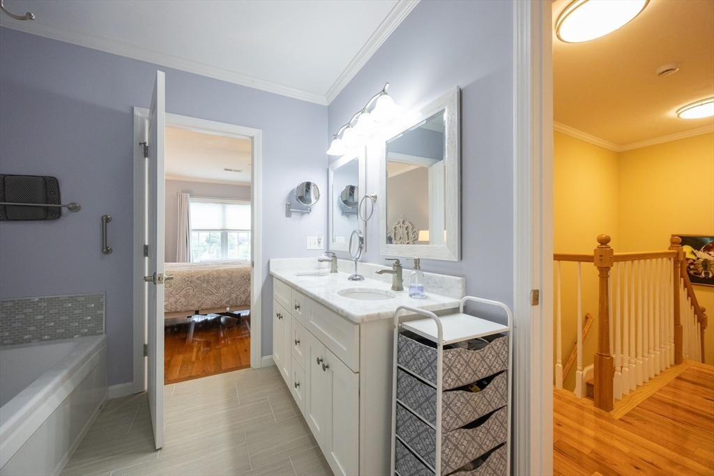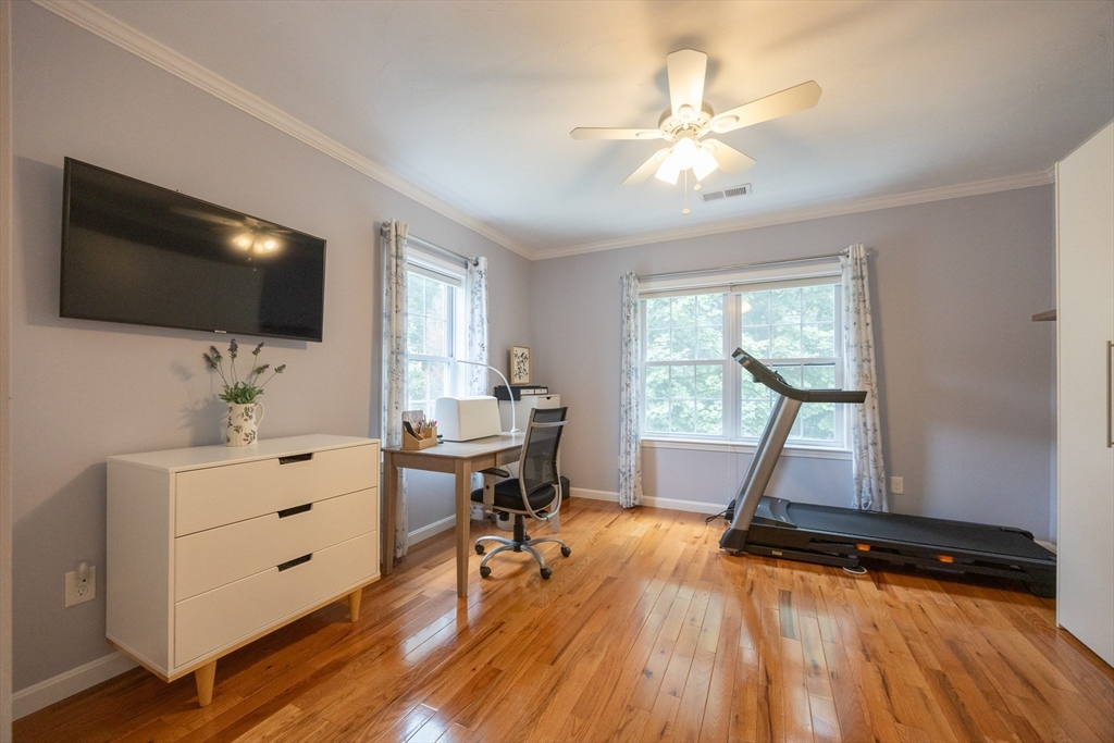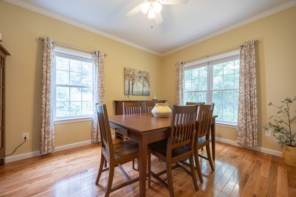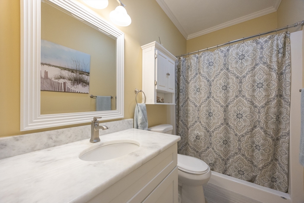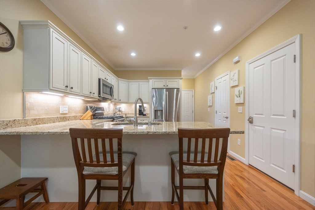 Welcome home to 58 Reed Street, where you'll find exactly what you've been looking for in a 55+ community. This sun-filled home offers 2 bdrms w/ the potential for a 3rd bdrm on the 1st floor, offering flexible living options to suit your needs. The open floor plan is ideal for entertaining. Custom upgrades throughout-hardwood and tile flooring, crown molding & custom closets. The spacious primary suite is a true retreat, boasting bathroom complete with a relaxing Jacuzzi tub and a tiled shower. The 2nd bedroom is generously sized, perfect for an additional office/guest bdrm. You'll find ample space in the basement for future expansion or all your storage needs. Plus, an attached one-car garage w/extra storage. Step outside to your private deck, where surrounding trees and flowers create a peaceful, private yard. Enjoy an ideal location with easy access to major routes, shopping, restaurants, and park. See Feature/Upgrade Doc for more information.