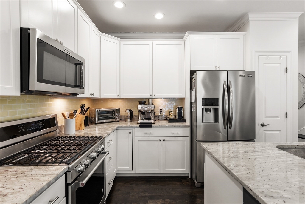 Open House Thursday 1130am - 1pm! Magnificent and young townhome boasting a prime location on the perimeter of the Baldwin Woods Community! When entering the residence you immediately notice the quality upgrades such as stained hardwood flooring, 9' ceilings, crown moldings, and an abundance of recessed lighting. The open concept floor plan is anchored by a center island kitchen with white shaker cabinetry, granite countertops, and modern Kitchen Aid appliances. If you like to host there is plenty of room to entertain in the combination living and dining area that steps out to a composite deck perfect for grilling and relaxing! The second floor features 3 bedrooms including an ensuite with a large full bathroom, tile shower, two upgraded vanities with Carrara marble, walk in closet with built in organizers, and more! This home has been lightly lived in by the current owners and feels brand new! Located just 1.5 miles from 95 and 2.5 miles from 93!