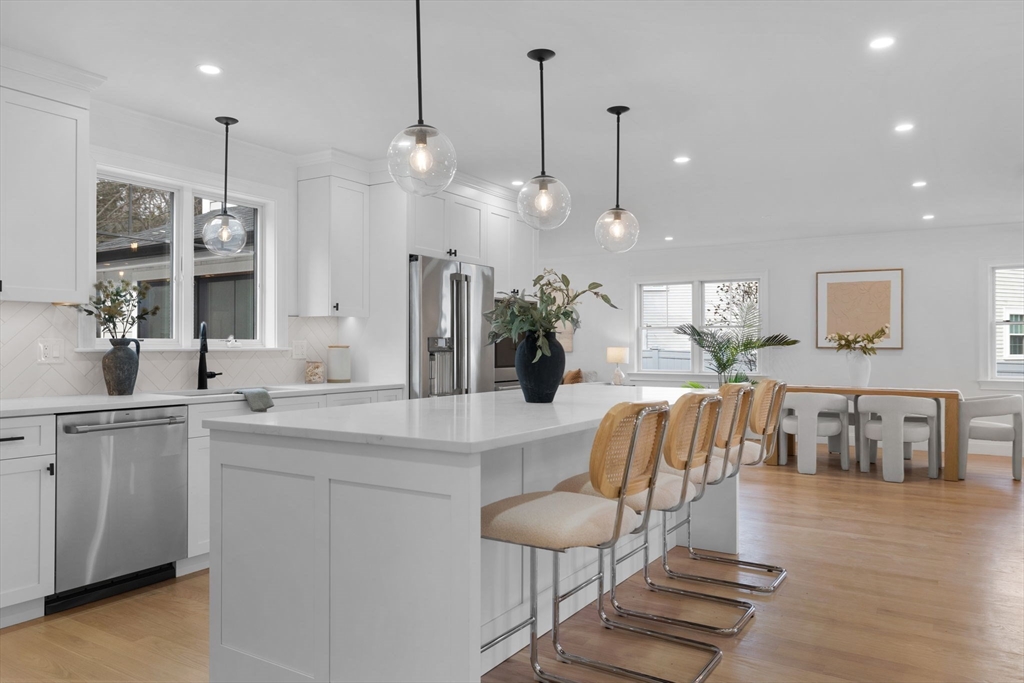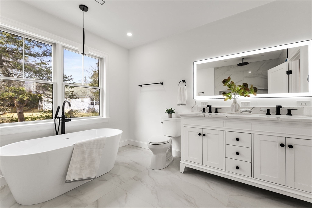 New construction! Energy star rated, high efficiency 5 bed 4.5 bath home perfectly situated in a prime East Side location! The first floor welcomes you w/ an open, airy layout, featuring a stylish mudroom, pantry, bath & home office. The gourmet, high-end kitchen flows seamlessly into the living room, complete w/ a cozy fireplace, open dining leads to sitting room & out to a deck & huge private patio and yard great for entertaining! The second floor boasts four spacious bedrooms & three full baths, including a lavish primary suite w/ a spa like bathroom. A well-appointed laundry room is also conveniently located on this floor. The third-floor suite is a true retreat, offering two versatile rooms ideal for extended family, office, or lounge, complete w/ a wet bar, an oversized bath & a 5th bedroom with abundant closet space. The lower level adds even more living space, featuring a large family room w/ full bath & full access door to yard. Easy access to Boston!