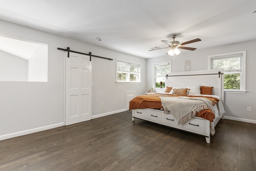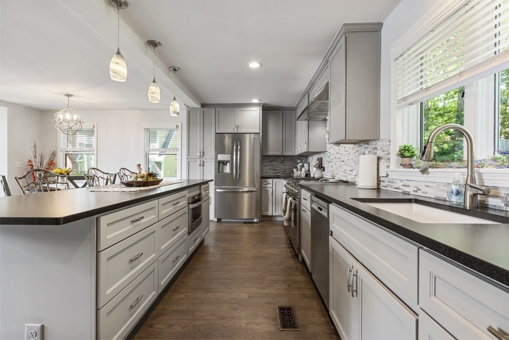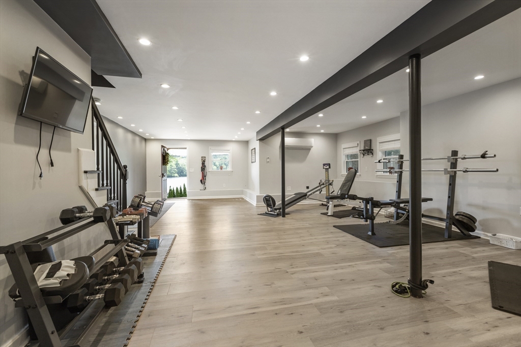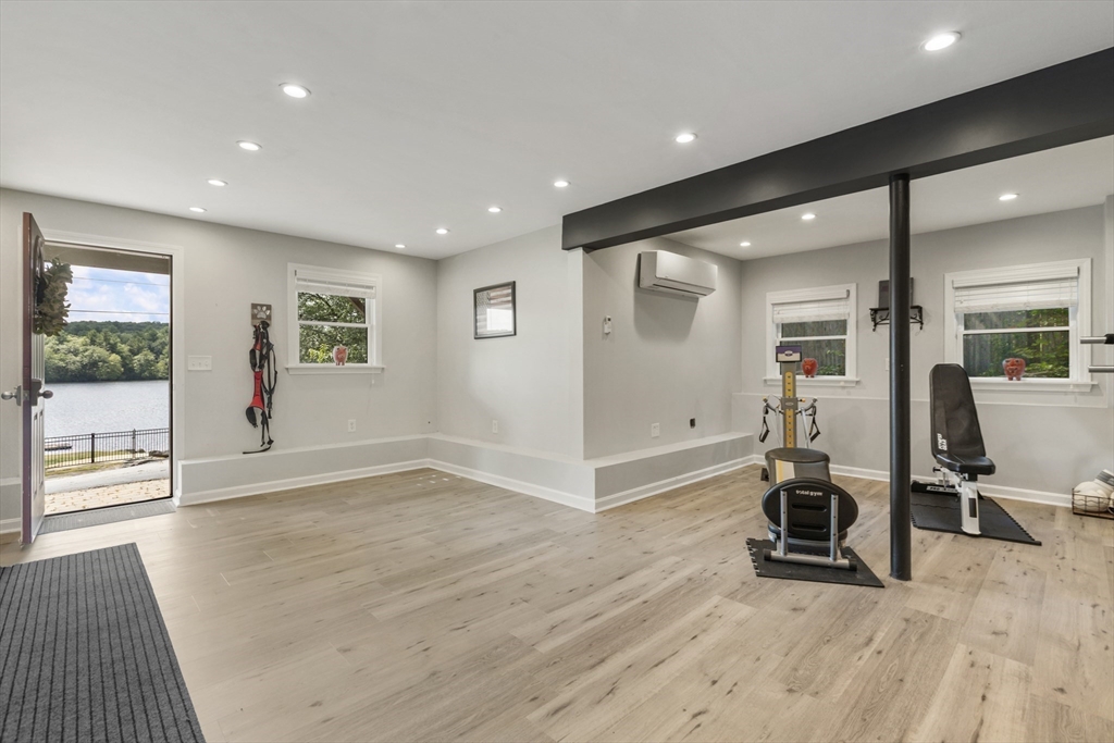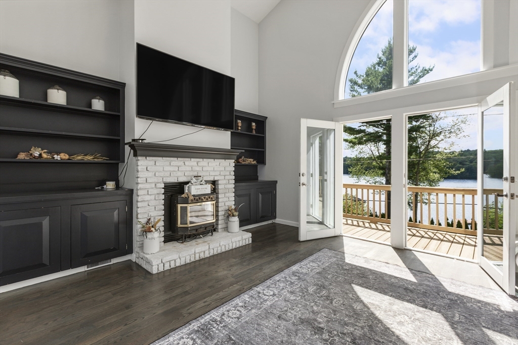 Waterfront home on the Whitins Reservoir where you can have it all; your own, private 75' of waterfront, fenced sandy beach & lawn including a dock for your boat/water toys & a wooded, well landscaped, fenced backyard for your pups. It's a rare find to have the wooded privacy surrounding a lake home. You'll want to spend all of your time outside, but this 2760 s.f., well updated home is to be enjoyed inside as well. The chef's kitchen boasts a Bertazzoni 6 burner, electric griddle, double oven stove & a huge center island to entertain your guests. Cabinet packed kitchen is open to dining rm & living rm so you may enjoy the lake views throughout. 1st floor bedroom & bath w/shower complete the main level. Walk out, light filled, lower level bonus rm has full sized windows. 2nd floor has primary suite with walk-in closet, 3rd bedroom & full bath with laundry set up. Hardwood floors on 1st & 2nd floor, AC throughout & lovely custom finishes. Truly heaven on earth! Welcome Home!
