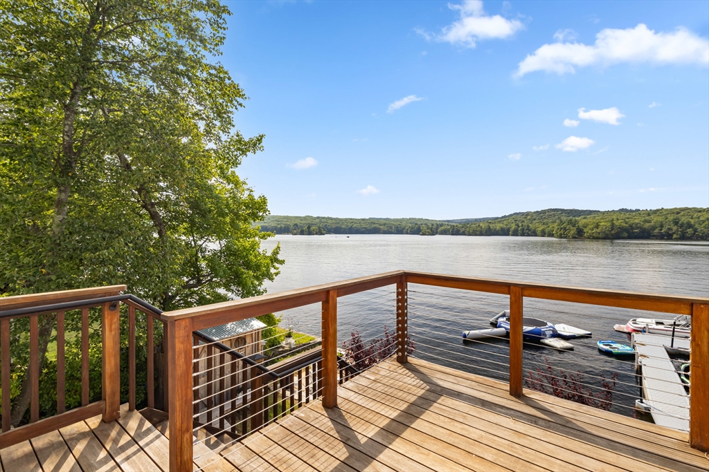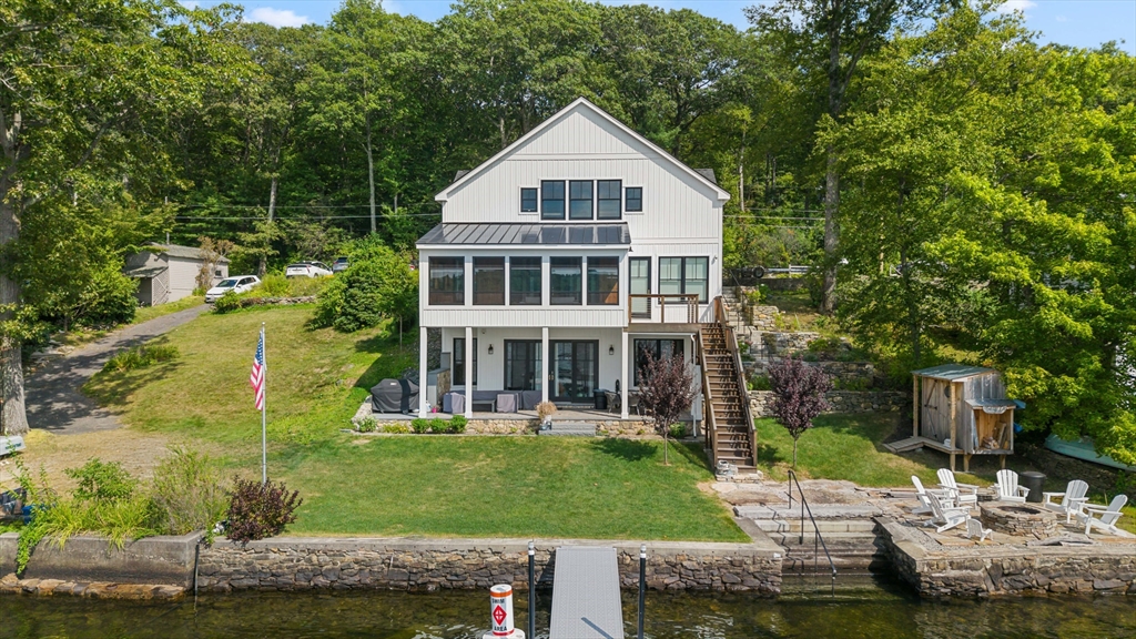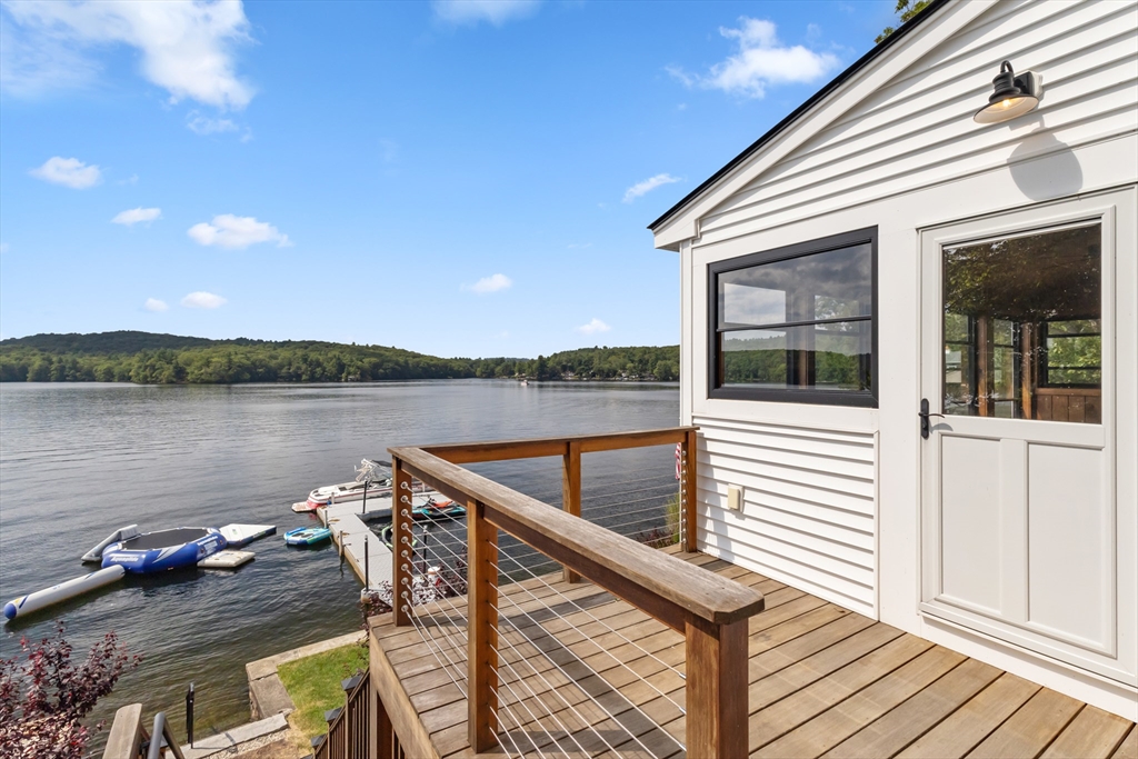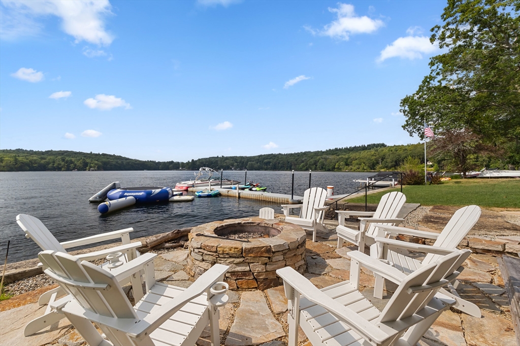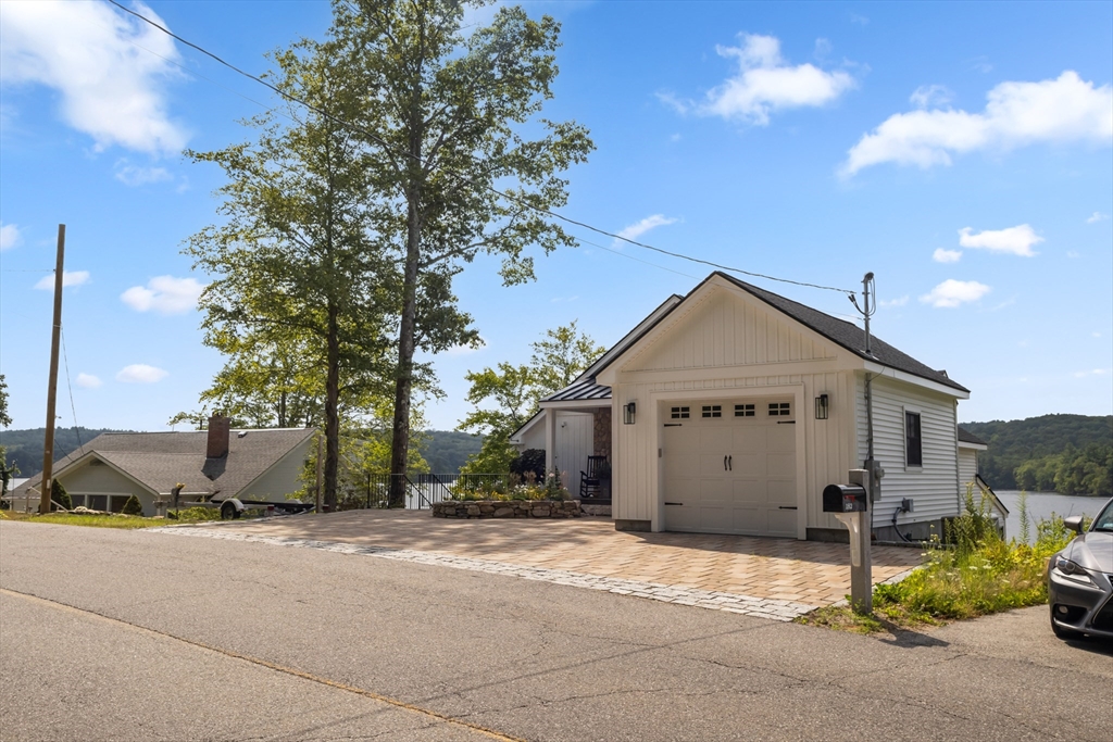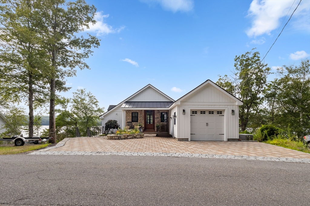 Welcome to 182 Manchaug Rd, a custom waterfront contemporary – Embrace lakefront living in this beautifully designed 2019 home on serene Manchaug Pond. Boasting 3,000 sq ft across 3 levels, this elegant residence offers 3 bedrooms, 3.5 baths & radiant in-floor heating throughout. Enjoy panoramic water views, a heated driveway for winter ease & TWO kitchens—including 1 on the lower level w/ breakfast bar—making entertaining effortless. Custom main floor kitchen to be installed including newThermador appliances, gorgeous cabinets & large center island.Unwind in the sun drenched sunroom or step onto the covered deck overlooking the tranquil waters. The expansive top-floor primary suite includes a full bath & abundant closet space. Lower level walk-out opens to a level grassy yard, firepit, & private dock—perfect for summer fun or cozy winter evenings. With modern finishes, open-plan living & versatile living spaces, this home is turnkey perfection by the lake! New kitchen to be installed!