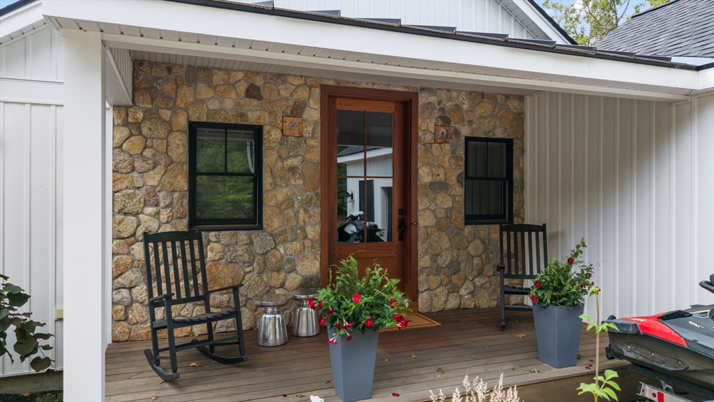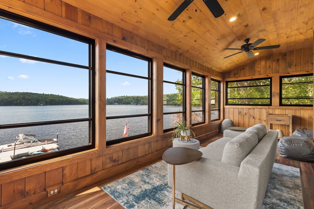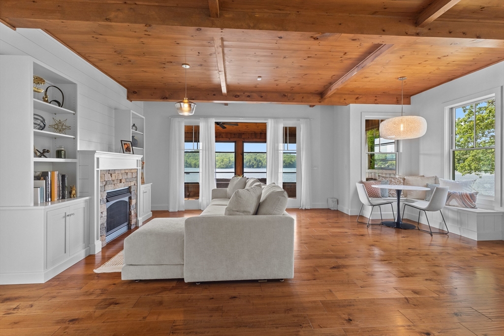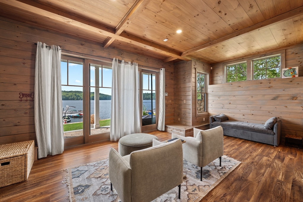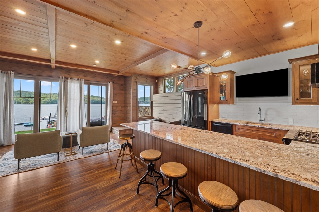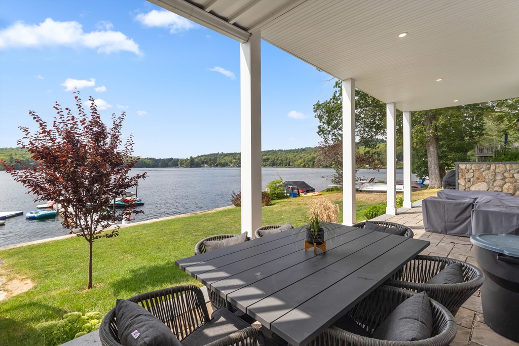 Welcome to 182 Manchaug Rd, a custom waterfront contemporary – Embrace lakefront living in this beautifully designed 2019 home on serene Manchaug Pond. Boasting 3,000 sq ft across 3 levels, this elegant residence offers 3 bedrooms, 3.5 baths & radiant in-floor heating throughout. Enjoy panoramic water views, a heated driveway for winter ease & TWO kitchens—including 1 on the lower level w/ breakfast bar—making entertaining effortless. Custom main floor kitchen to be installed including newThermador appliances, gorgeous cabinets & large center island.Unwind in the sun drenched sunroom or step onto the covered deck overlooking the tranquil waters. The expansive top-floor primary suite includes a full bath & abundant closet space. Lower level walk-out opens to a level grassy yard, firepit, & private dock—perfect for summer fun or cozy winter evenings. With modern finishes, open-plan living & versatile living spaces, this home is turnkey perfection by the lake! New kitchen to be installed!