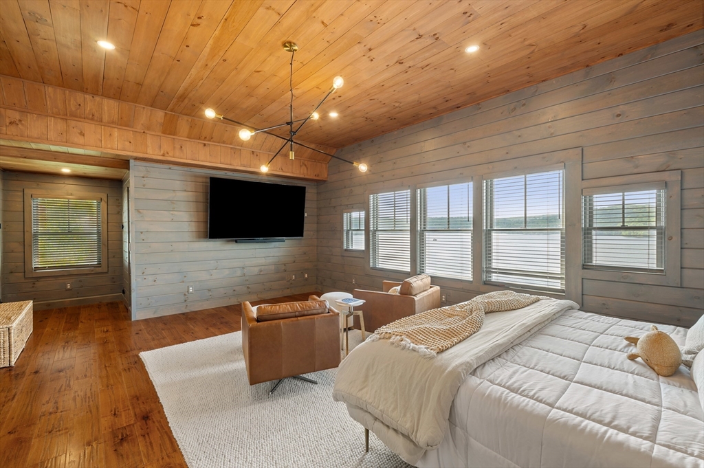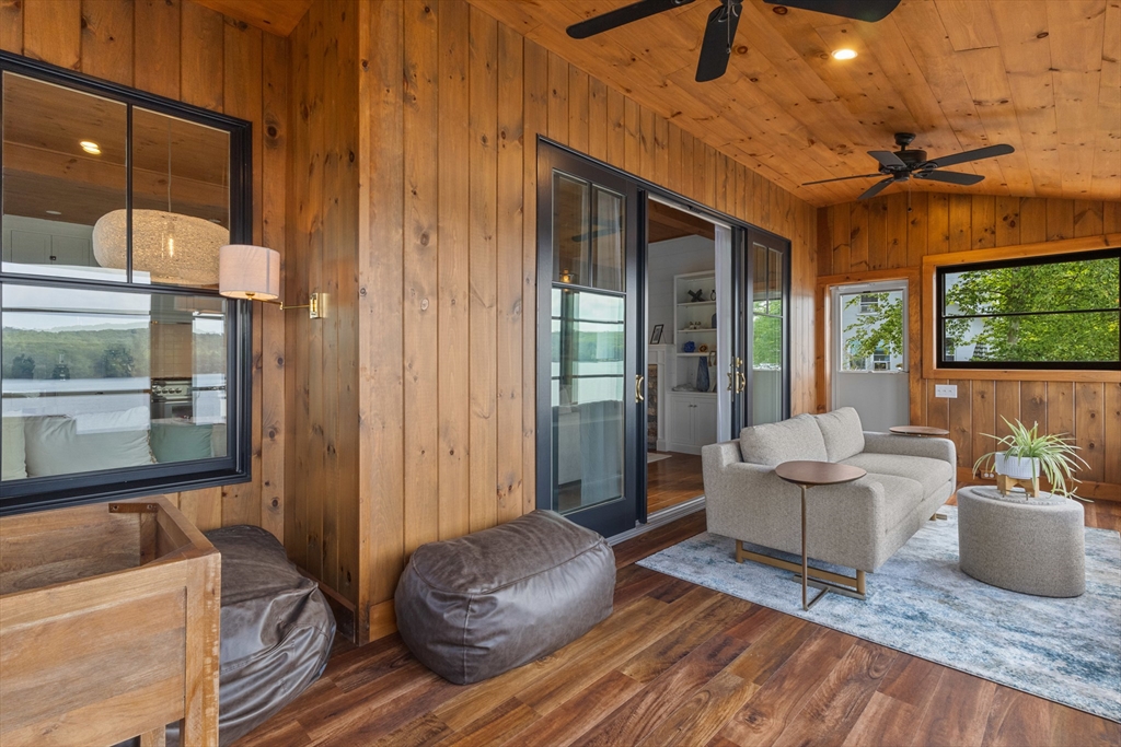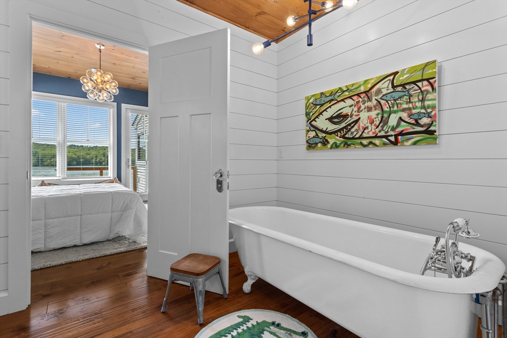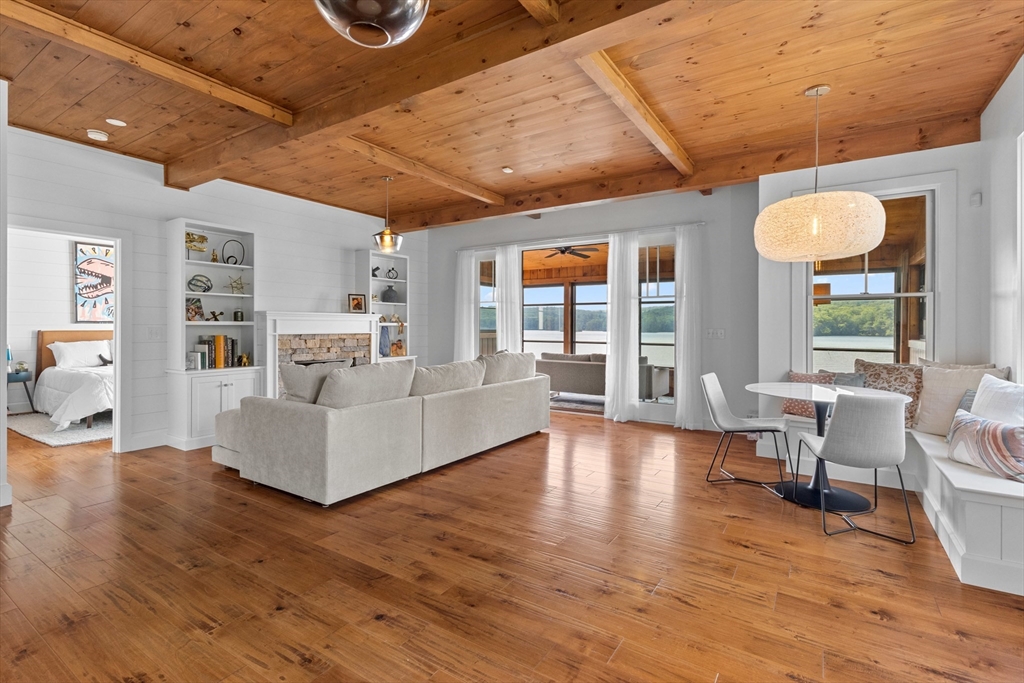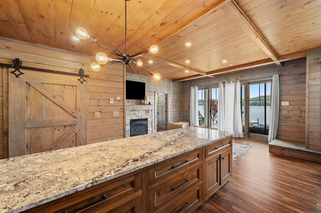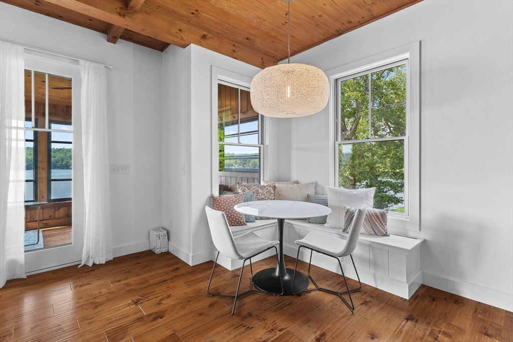 Welcome to 182 Manchaug Rd, a custom waterfront contemporary – Embrace lakefront living in this beautifully designed 2019 home on serene Manchaug Pond. Boasting 3,000 sq ft across 3 levels, this elegant residence offers 3 bedrooms, 3.5 baths & radiant in-floor heating throughout. Enjoy panoramic water views, a heated driveway for winter ease & TWO kitchens—including 1 on the lower level w/ breakfast bar—making entertaining effortless. Custom main floor kitchen to be installed including newThermador appliances, gorgeous cabinets & large center island.Unwind in the sun drenched sunroom or step onto the covered deck overlooking the tranquil waters. The expansive top-floor primary suite includes a full bath & abundant closet space. Lower level walk-out opens to a level grassy yard, firepit, & private dock—perfect for summer fun or cozy winter evenings. With modern finishes, open-plan living & versatile living spaces, this home is turnkey perfection by the lake! New kitchen to be installed!