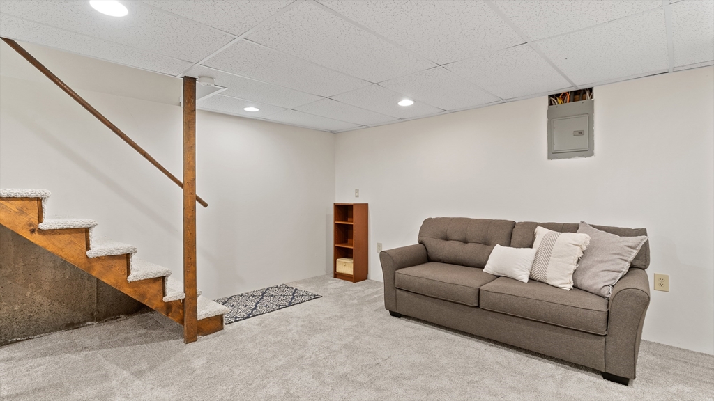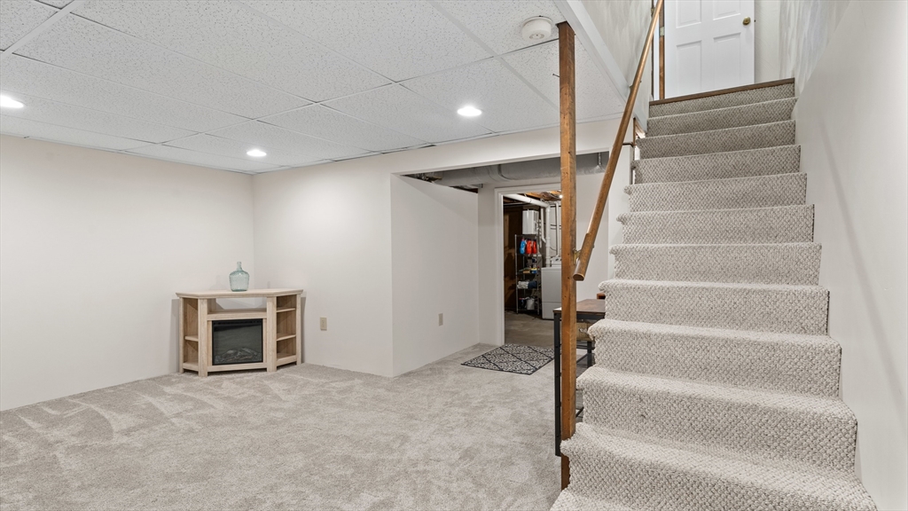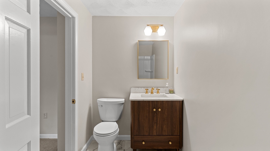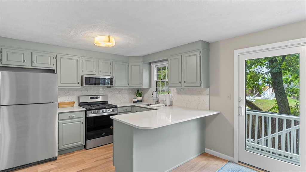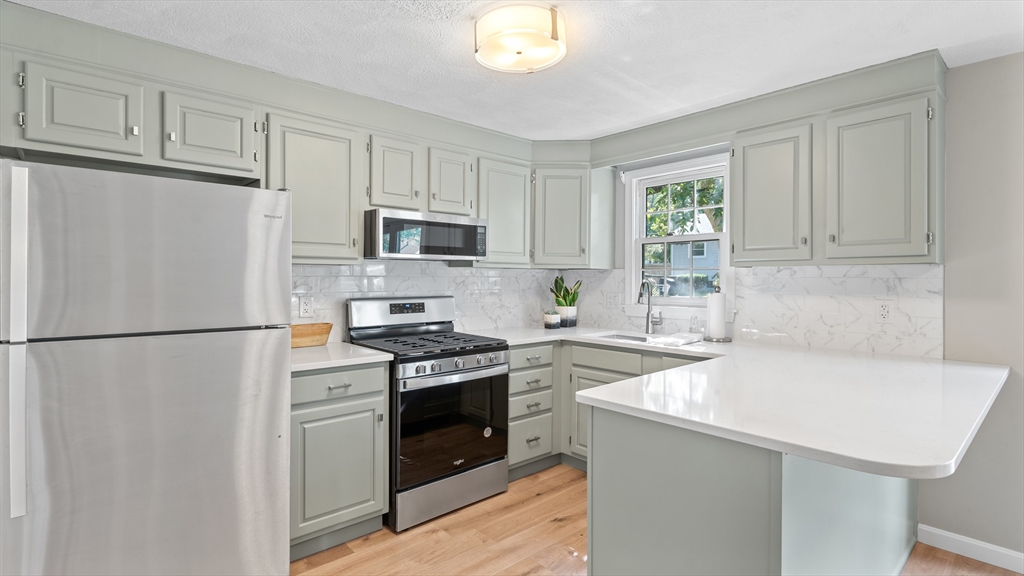 Beautifully updated townhouse in Lowell with 2 bedrooms, 1.5 baths, and over 1,400 sq. ft. of living space. Recent 2024–2025 upgrades include NuCore waterproof wide-plank flooring, fresh paint, quartz countertops, Whirlpool stainless appliances (gas range with air-fry, low-profile microwave, top-freezer fridge), ceramic tile backsplash, Moen pull-down faucet, and refreshed cabinetry with modern hardware. The renovated full bath features a walnut vanity with Carrara marble, Sterling tub/shower surround, brushed brass Kohler fixtures, new flooring, and updated lighting. Additional highlights include a finished lower level, new Google Nest thermostat, brand-new hot water heater, Kohler toilets, and a private tree-shaded Trex deck. Two assigned parking spaces right outside your door plus guest parking nearby. Move right in and enjoy modern style, convenience, and comfort in a prime location close to shops/dining, commuter routes & commuter rail stations (Lowell ~2mi; N. Billerica ~3mi)!