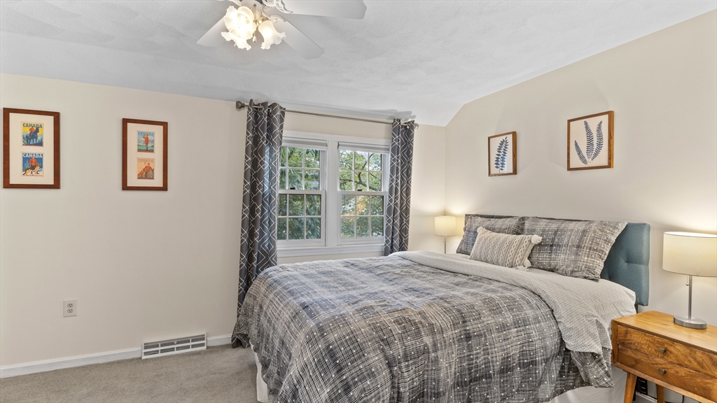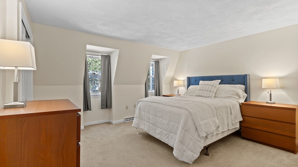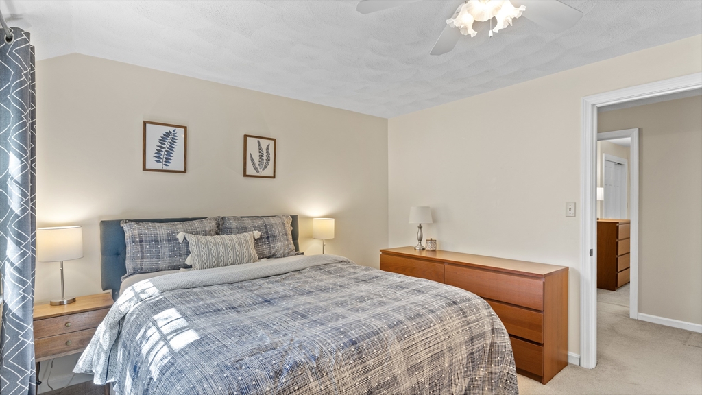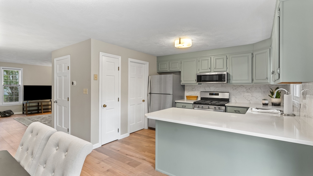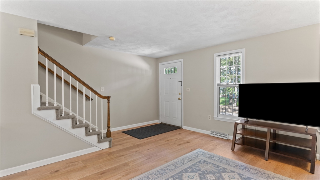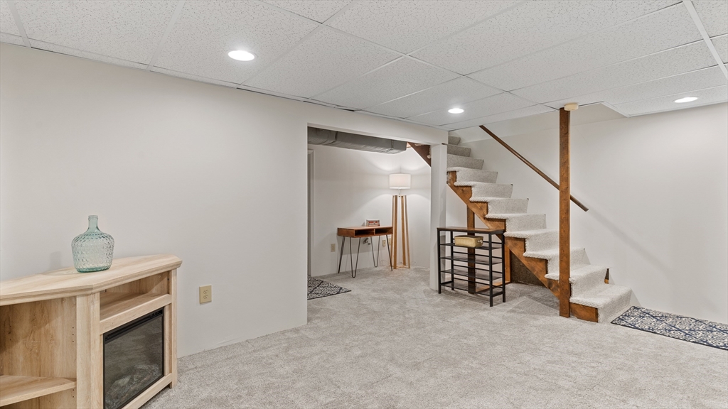 Beautifully updated townhouse in Lowell with 2 bedrooms, 1.5 baths, and over 1,400 sq. ft. of living space. Recent 2024–2025 upgrades include NuCore waterproof wide-plank flooring, fresh paint, quartz countertops, Whirlpool stainless appliances (gas range with air-fry, low-profile microwave, top-freezer fridge), ceramic tile backsplash, Moen pull-down faucet, and refreshed cabinetry with modern hardware. The renovated full bath features a walnut vanity with Carrara marble, Sterling tub/shower surround, brushed brass Kohler fixtures, new flooring, and updated lighting. Additional highlights include a finished lower level, new Google Nest thermostat, brand-new hot water heater, Kohler toilets, and a private tree-shaded Trex deck. Two assigned parking spaces right outside your door plus guest parking nearby. Move right in and enjoy modern style, convenience, and comfort in a prime location close to shops/dining, commuter routes & commuter rail stations (Lowell ~2mi; N. Billerica ~3mi)!