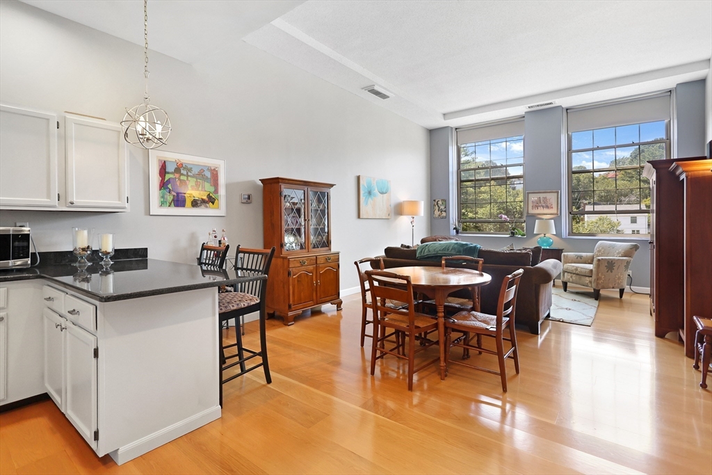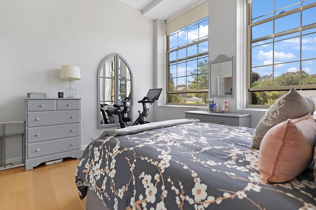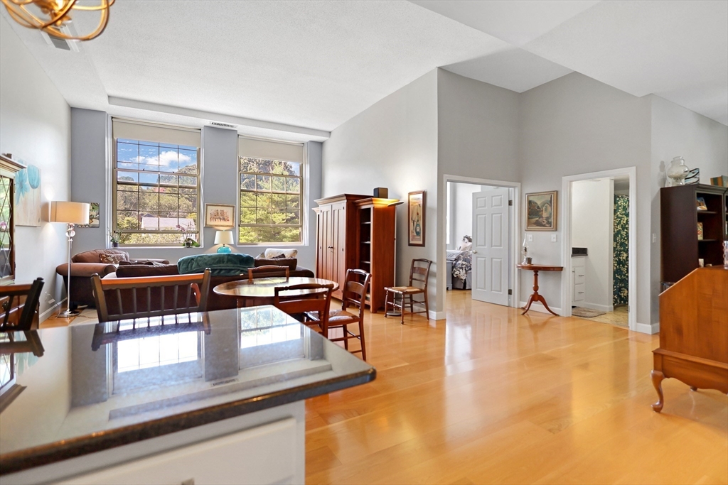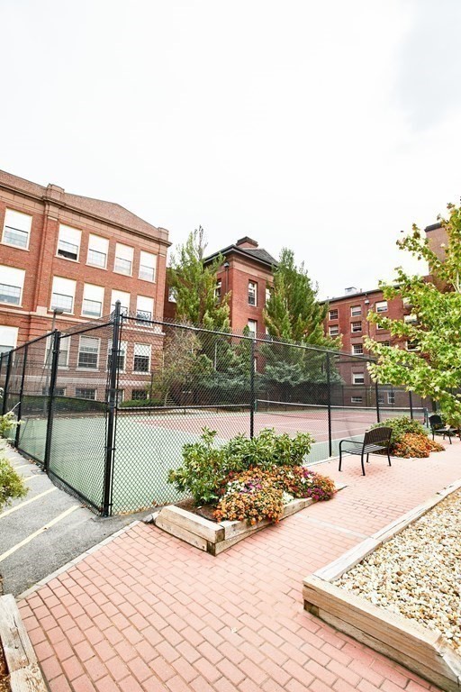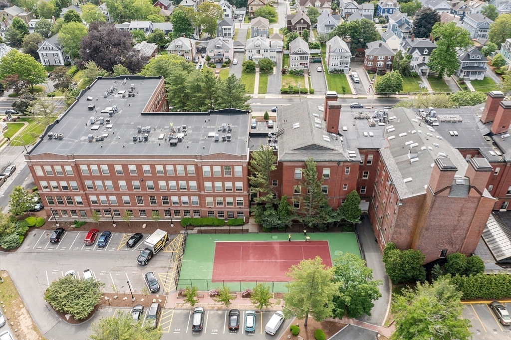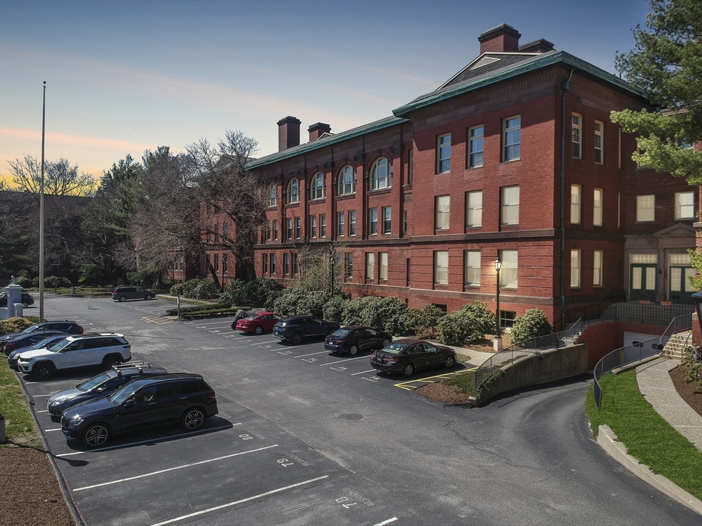 Welcome to this stunning condo located in the historic Medford Schoolhouse. This bright and spacious 4RM 1BR unit offers an open layout with soaring ceilings and a flexible extra nook—perfect for a home office or cozy sitting room. This open floor plan is ideal for entertaining or relaxing in style. Granite kitchen with the the elegance of white oak hardwood floors throughout. Closet space maximized with Closets by Design. Updated bath, Heating system replaced 2016. All glass and shashes have been replaced in the large Schoolhouse windows. Extra storage located in garage area. Pkg spot #85 in front of bldg. Condo offers indoor pool & sauna; BBQ area & tennis court. Don’t miss the chance to own a distinctive space in one of Medford’s most sought-after buildings located in a beautiful neighborhood with easy access to dining, transit, major routes of trans & Fells Res.