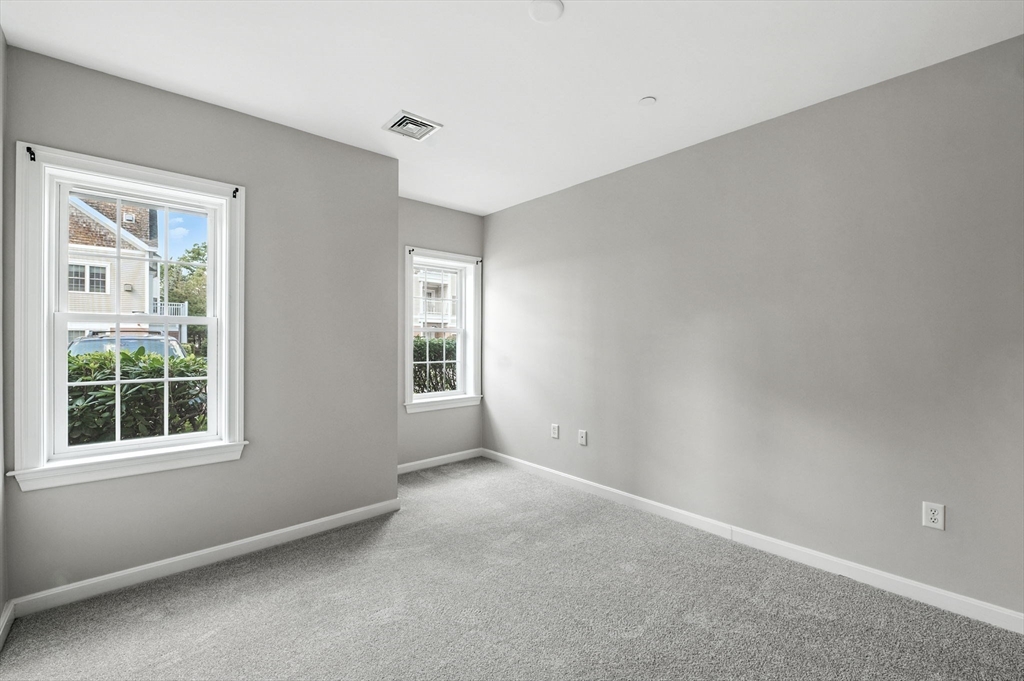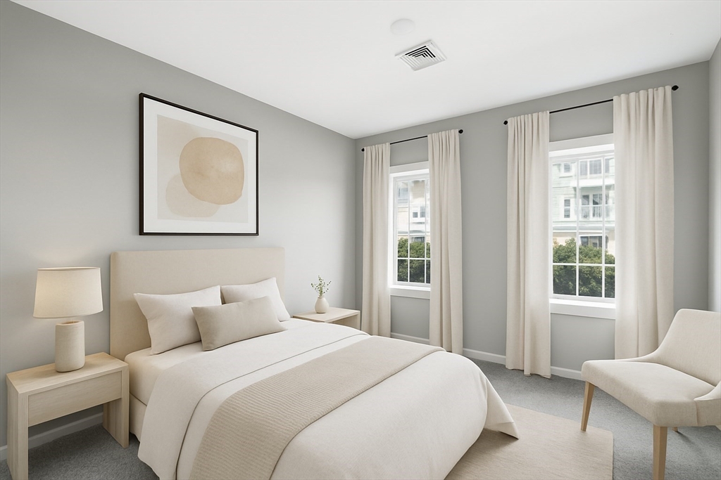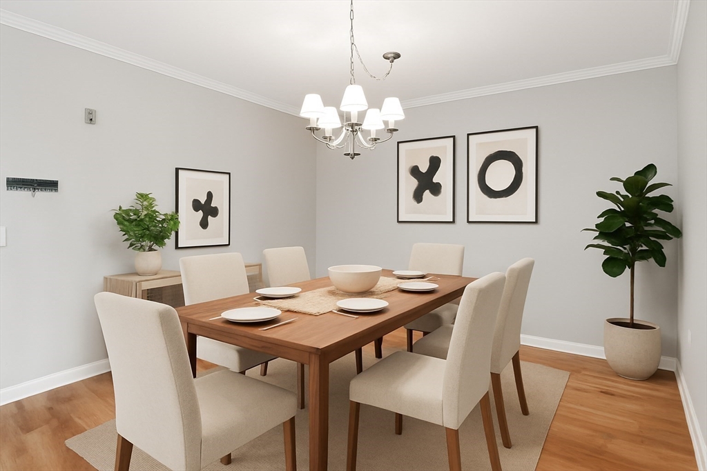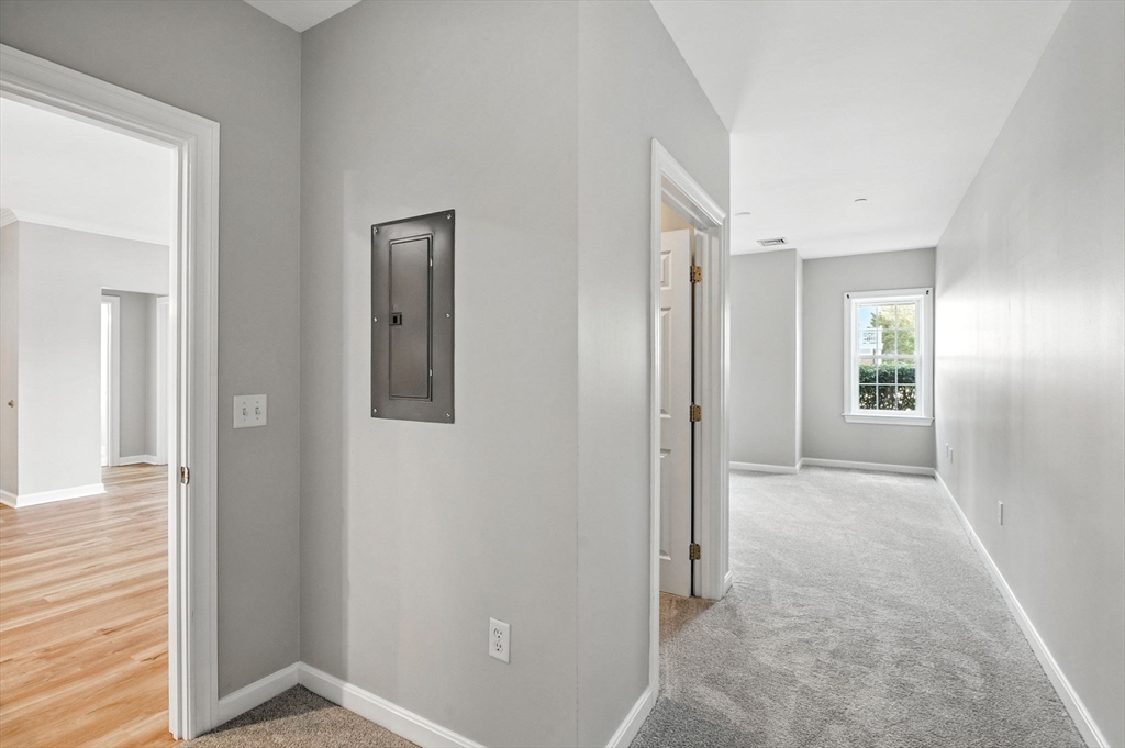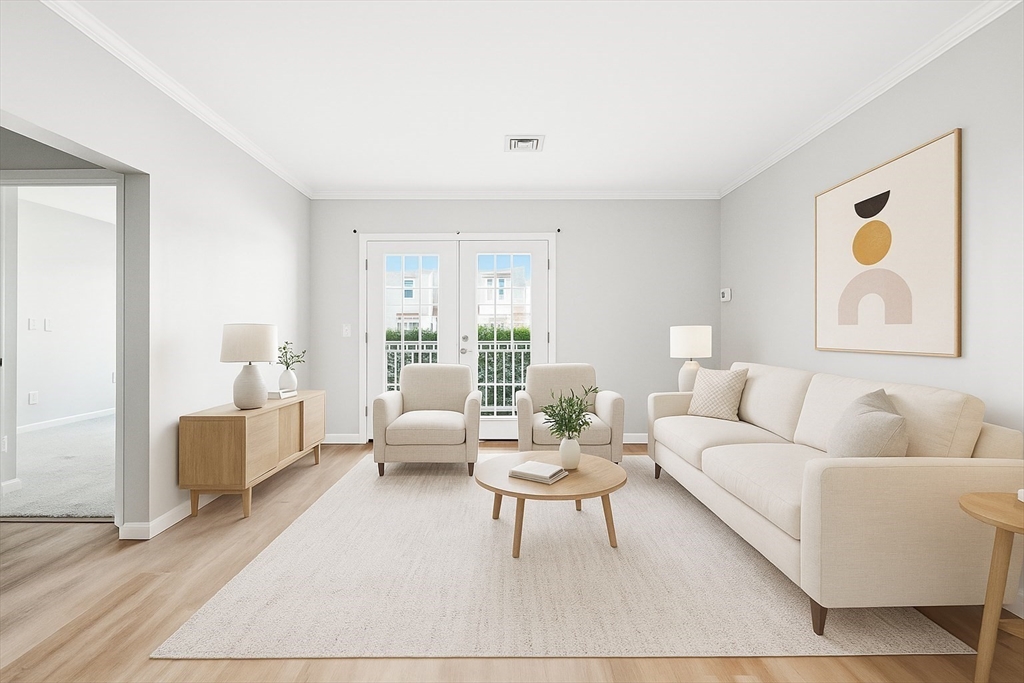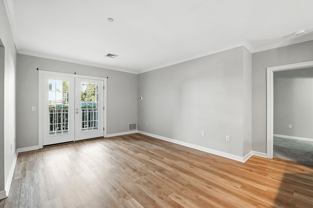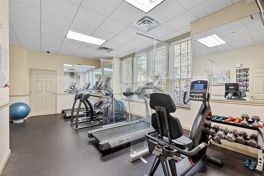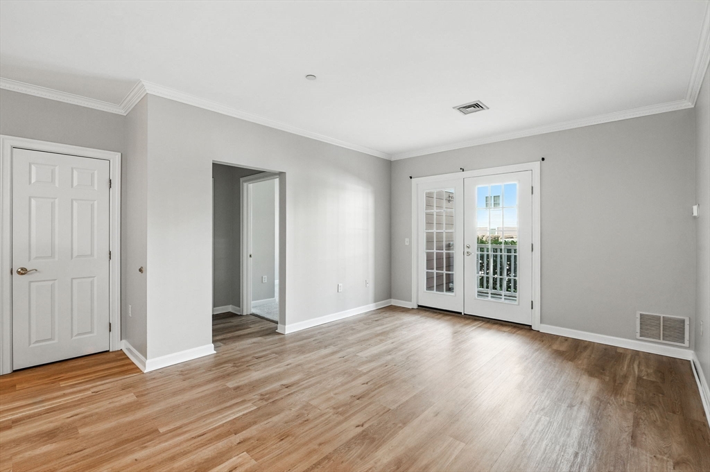 This ground-floor 2-bedroom, 2-bath condo offers single-level living with modern updates and unbeatable amenities. The home features an open-concept layout designed for today’s lifestyle. The kitchen boasts stainless steel appliances breakfast bar, recessed lighting, and crown molding, flowing seamlessly into the dining and living rooms. Elegant French oak luxury vinyl flooring and decorative trim add a polished touch. Step out from the living room to your private covered deck—perfect for morning coffee or evening relaxation. The primary suite includes a walk-in closet and full en-suite bath, while the second bedroom is ideal for guests, a home office, or fitness space. Added conveniences include in-unit laundry and a large private storage room (9’5” x 31’) in the lower level. Enjoy resort-style living at Kittredge Crossing with a clubhouse, fitness center, pool, and deeded parking. Located near shopping, dining, and top schools—with brand new carpeting and freshly painted walls!