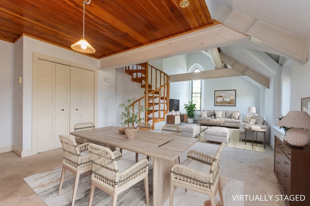 Welcome to Church Place in Winchester. This light-filled one-bedroom condo offers a unique two-level layout with beautiful windows that frame picturesque views of the town. The main level features an airy, open-concept living and dining area, highlighted by a cathedral ceiling in the living room making it perfect for entertaining or enjoying a quiet evening at home. Upstairs, you’ll find a cozy retreat with the bedroom and bath, creating a sense of privacy and comfort. Additional features include in-unit laundry and a designated parking space for everyday ease. Step outside and experience the vibrant lifestyle Winchester has to offer, just moments from the town center with its inviting shops and restaurants, the weekly farmers market, library, town common, and more! Commuters will appreciate the close proximity to the commuter rail, offering quick access to Boston and beyond. This condo blends character, light, and location, making it a perfect place to call home!